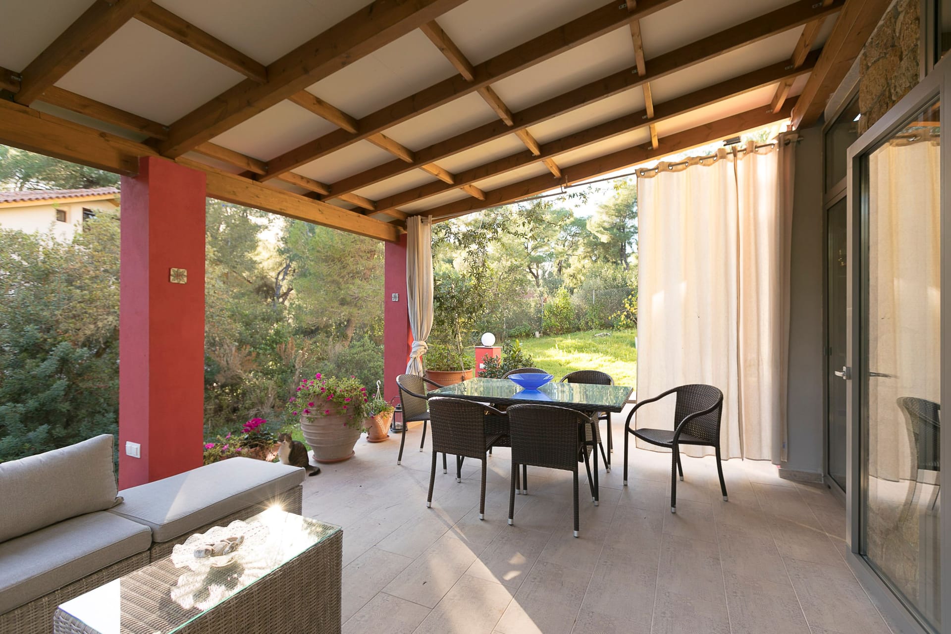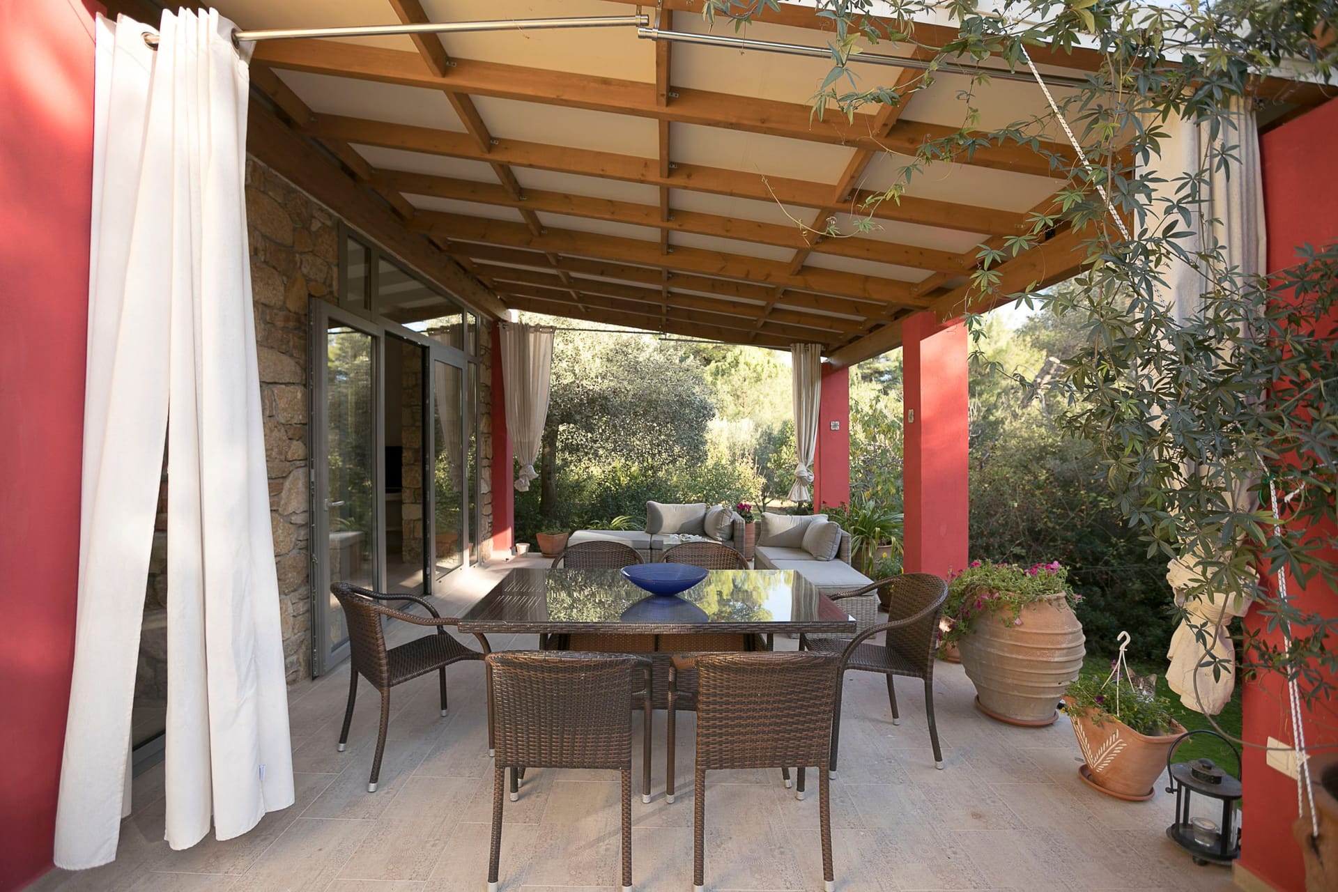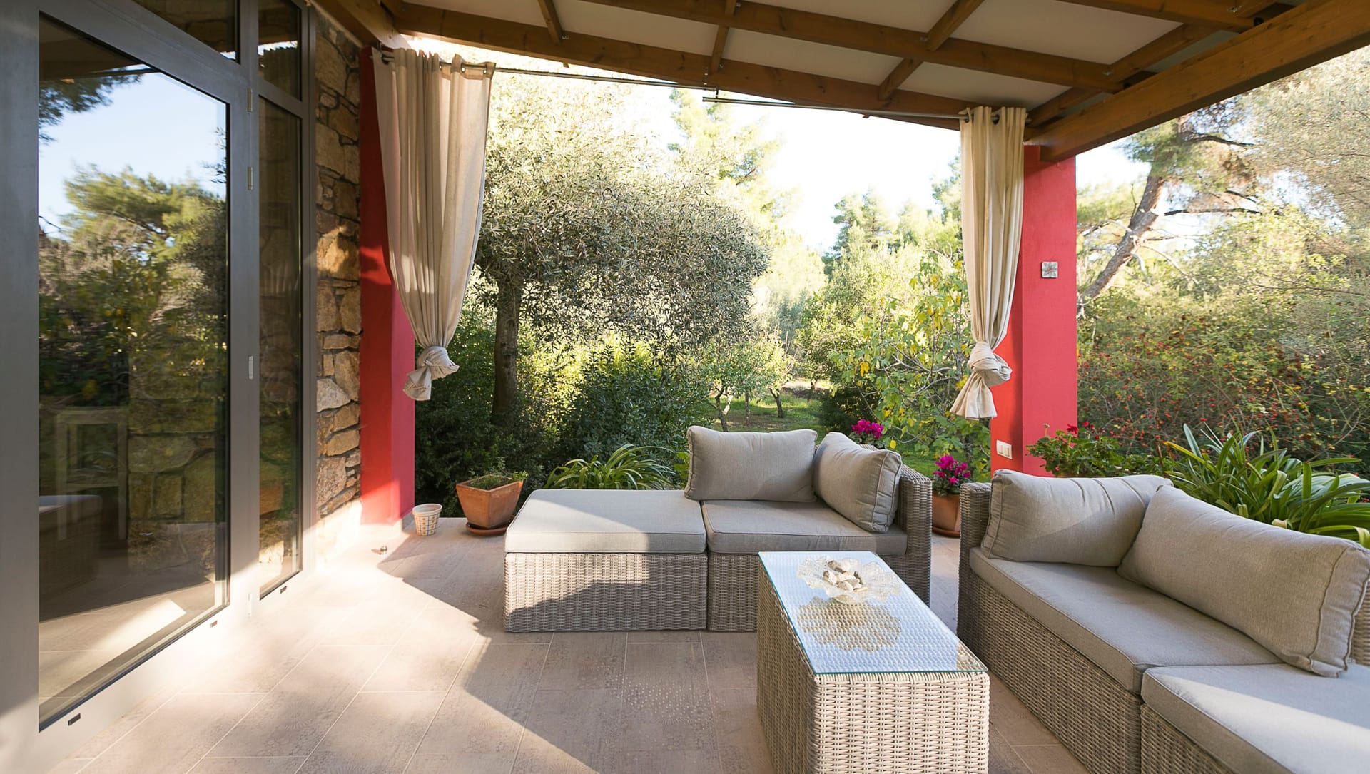 The shaded patio is the best aspect of the apartment! You will definitely enjoy sitting outside, and spending your evenings here with your family. There are large rattan sofas, and an extra dining table.