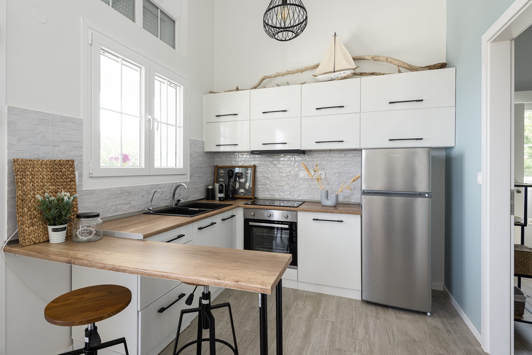 The kitchen is the heart of the home, equipped with modern appliances(oven,fridge,kettle,espresso machine) and plenty of space for cooking. Guests can easily prepare meals, whether it’s a quick breakfast or a relaxed dinner, because of its stylish and efficient design, complete with plenty of storage space.