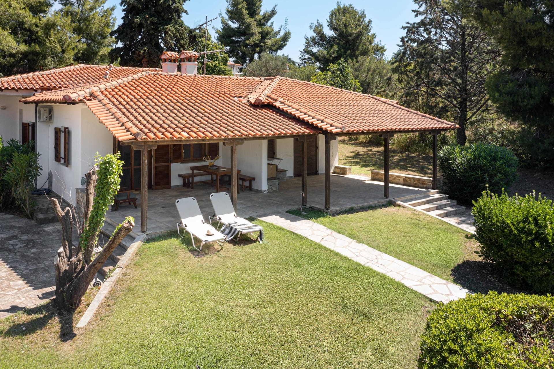 This spacious 2-bedroom house can accommodate up to 5 guests and it is located near Nikiti, one of the most beautiful and cosmopolitan places of Halkidiki’s second peninsula, Sithonia. Α beautiful unorganised beach is right in front of the house’s yard.