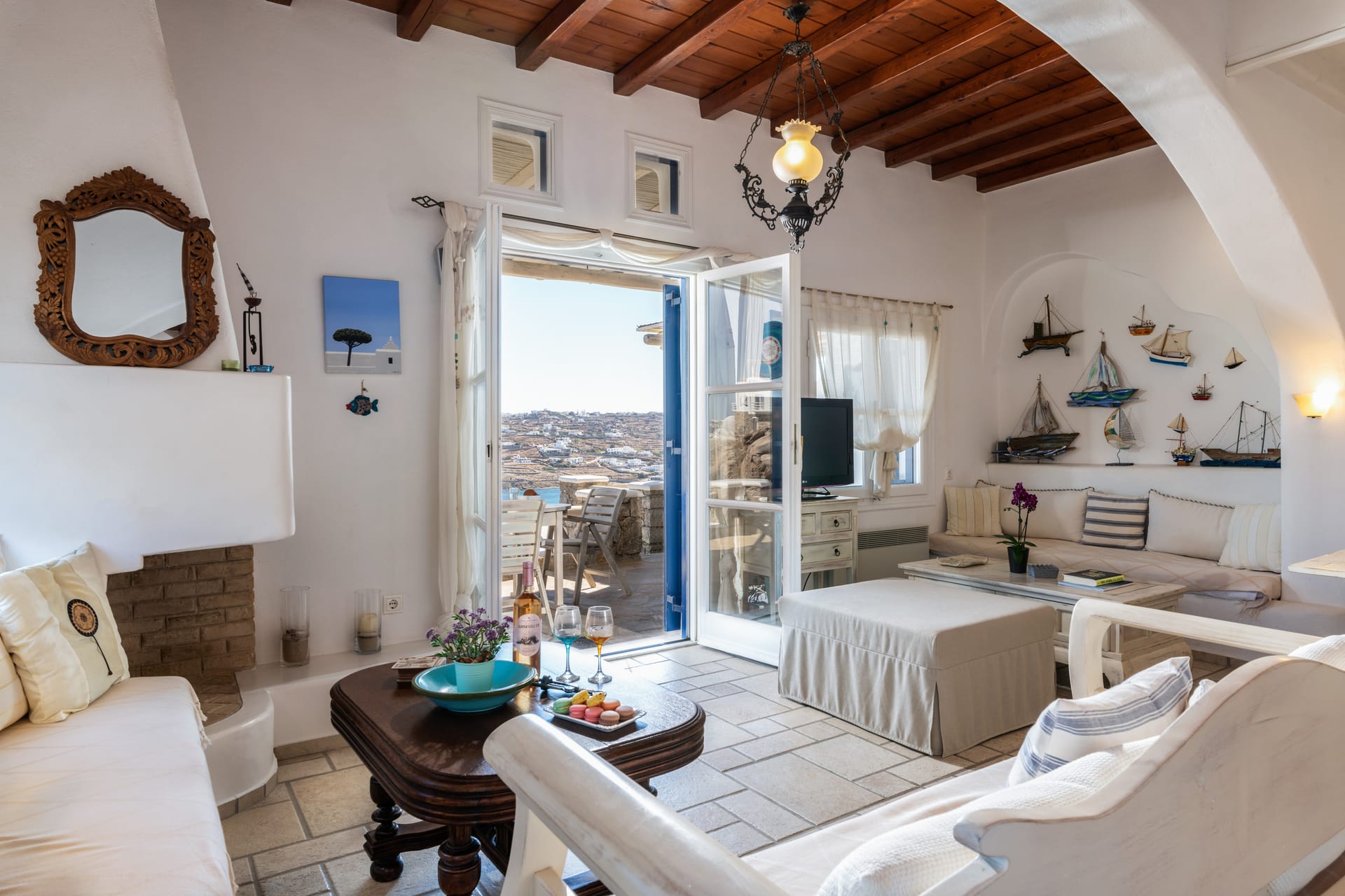 The living room features a flat-screen smart TV, A/C unit and the kitchen is fully equipped, with nespresso machine, keeping always in mind families travelling with children.
