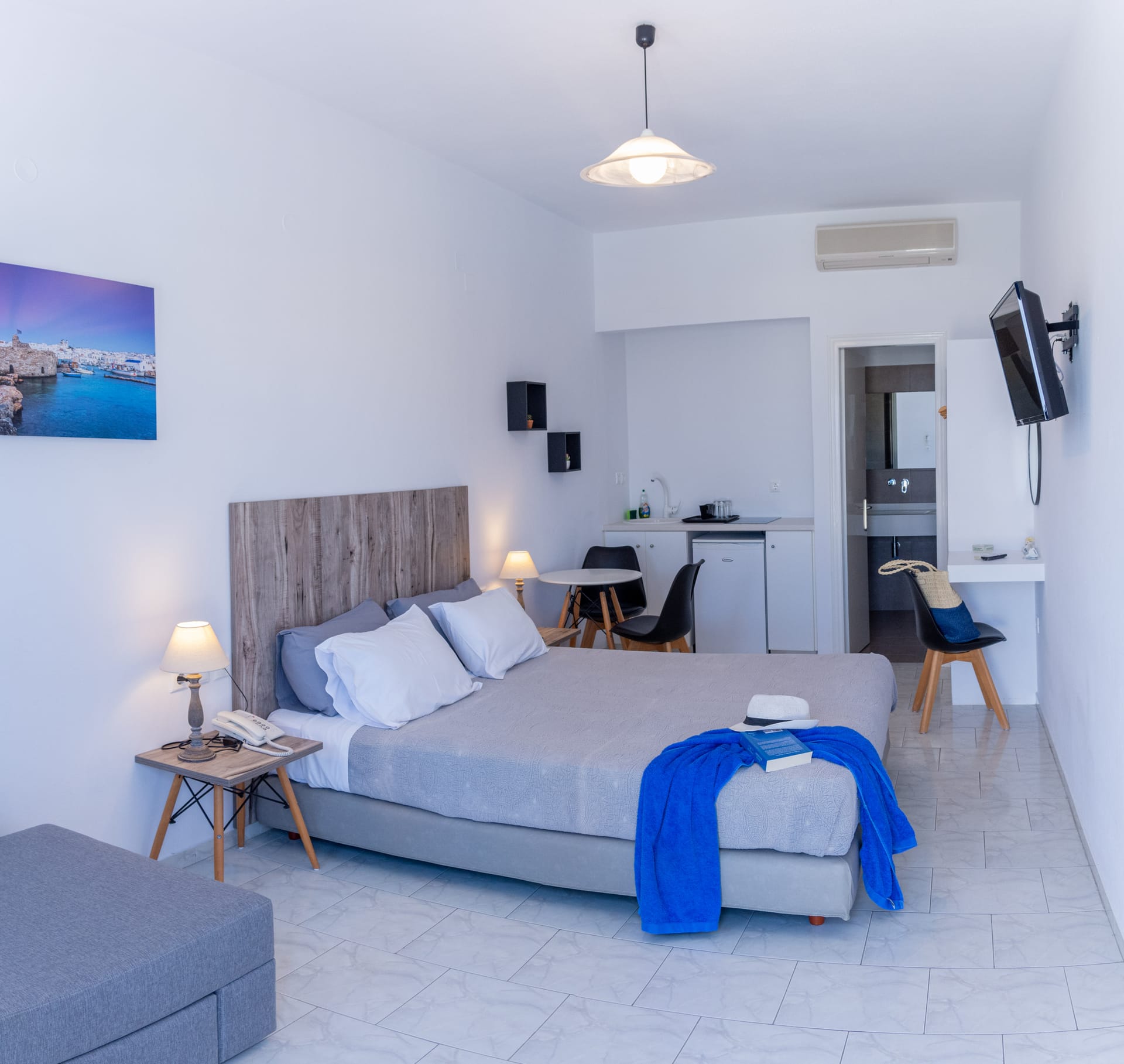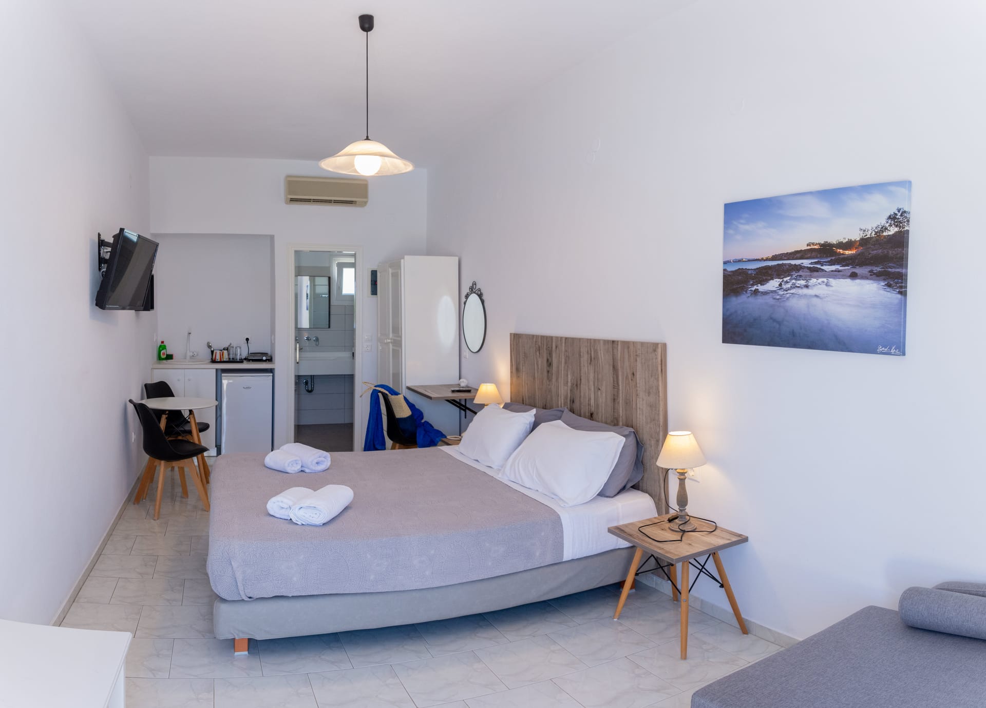 Features: 27 sq.m. | 1 double bed | 1 bathroom with shower | shared balcony with sea and sunset views | max 2 guests