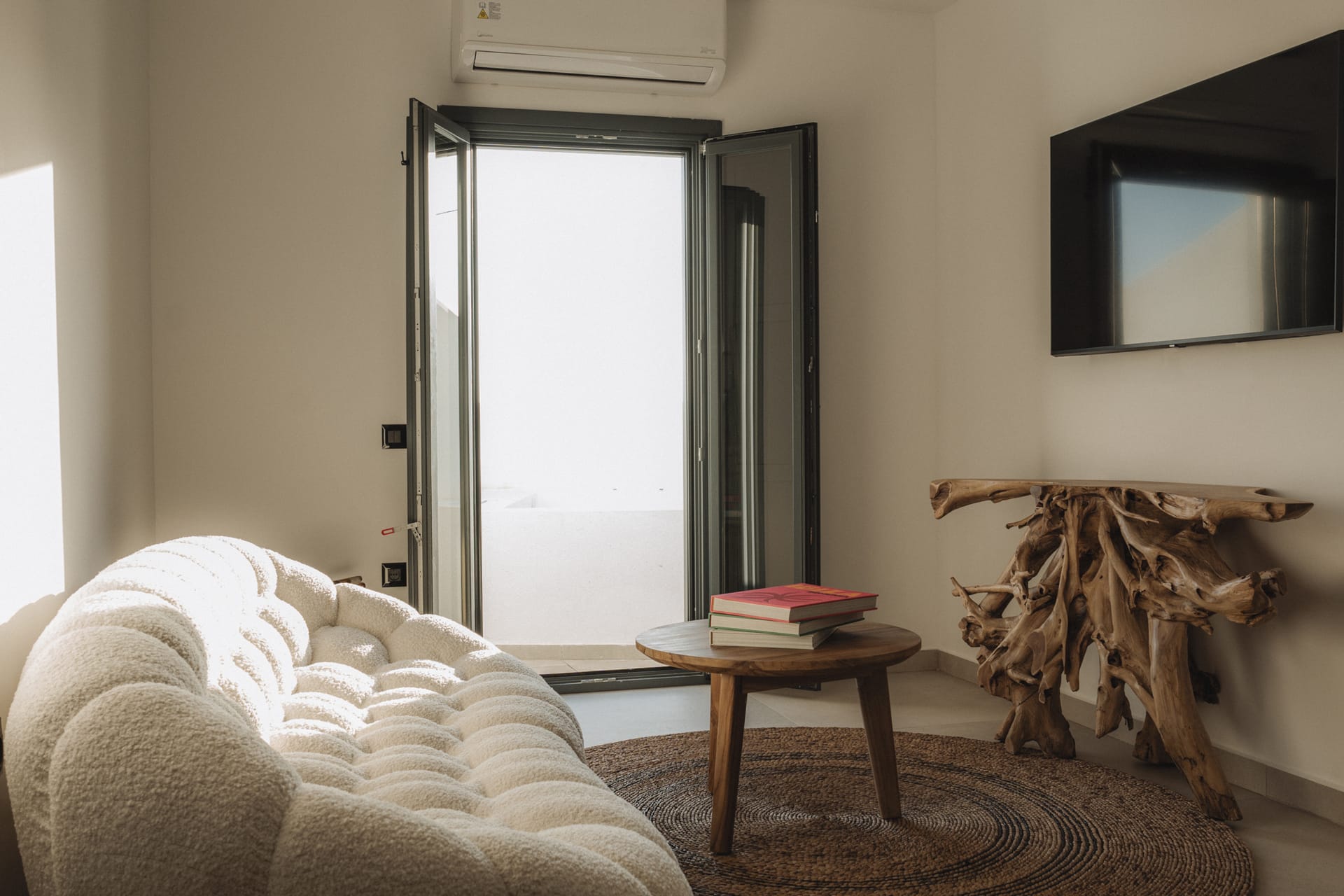Scenic Views: Located on the first level of our hotel, the suite offers stunning views of the Aegean sea and its breathtaking deep blue color, providing a breathtaking backdrop for your stay.