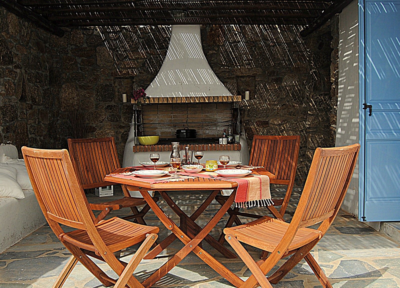 Villa Nefeli enjoys a privileged position with extensive views over the Aegean Sea and the Northern coast of the island which unveils the true beauty of Mykonos original landscapes. The outdoor area consists of a private pool, BBQ, wooden pergola, stone built pool bar, pool shower and sunbeds.