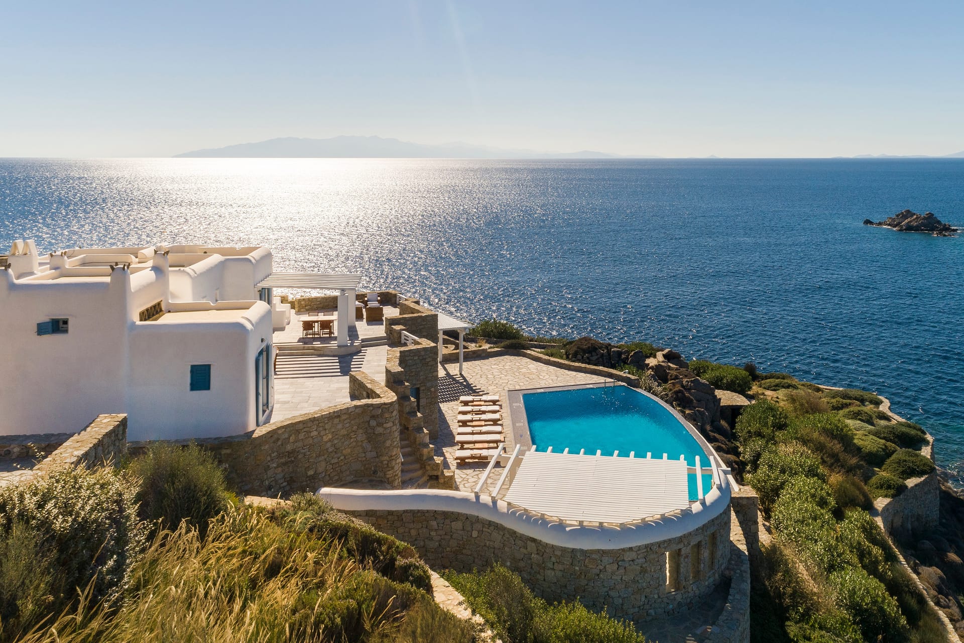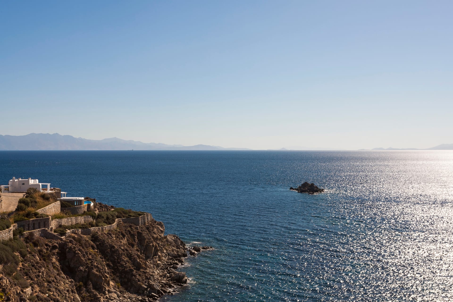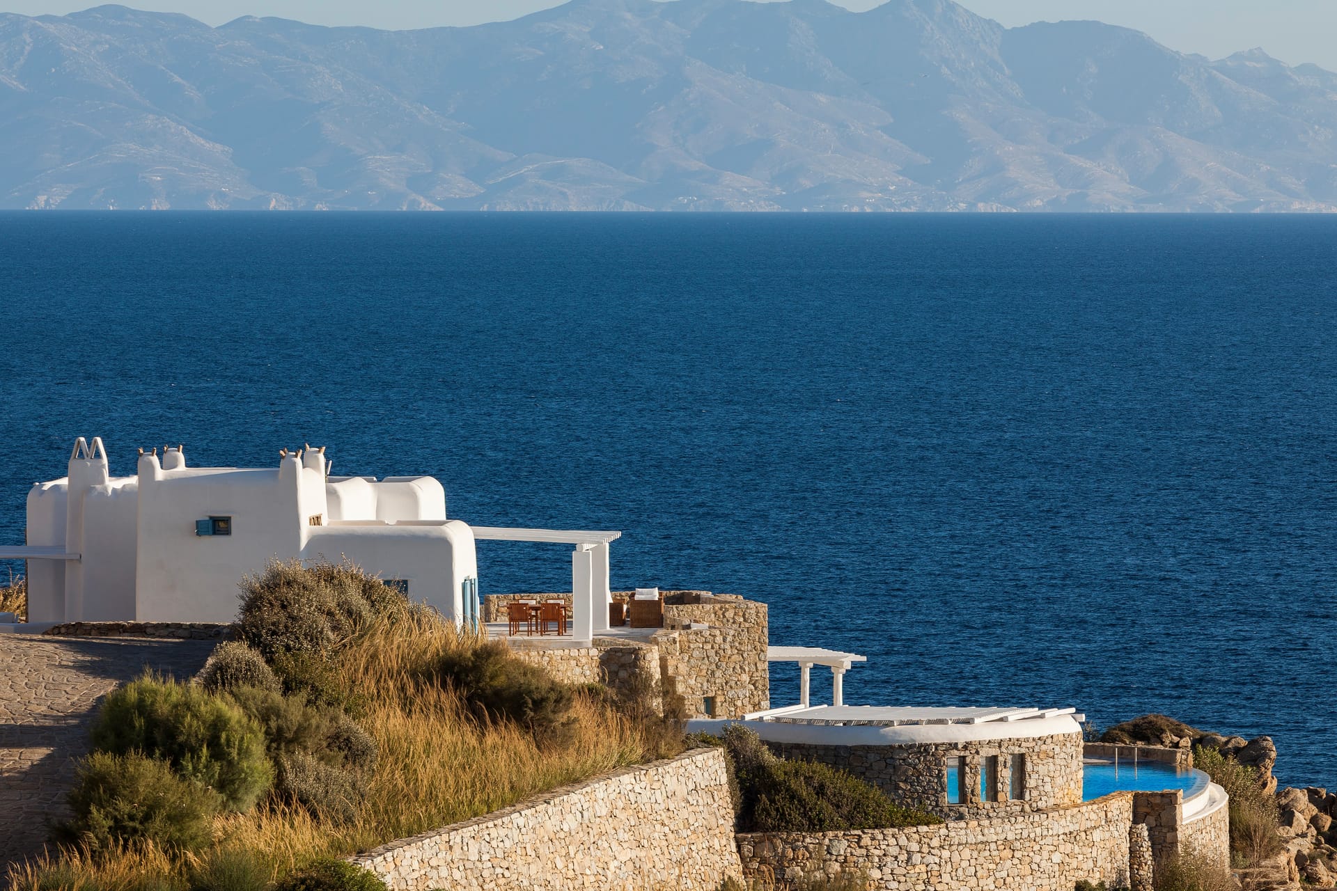 Choulakia Bay, with uniquely shaped pebbles of natural interest is very close (300m), as well as Mykonos Town (5 km) and Saint Stefanos Beach (2km).