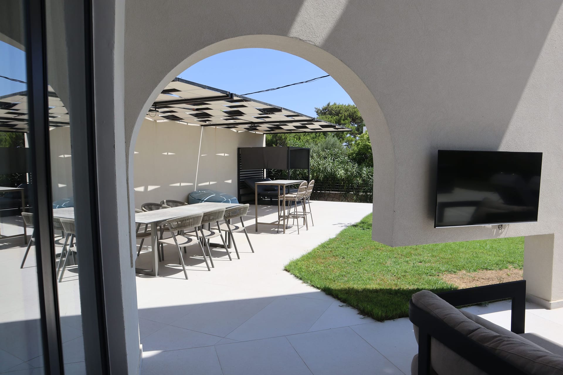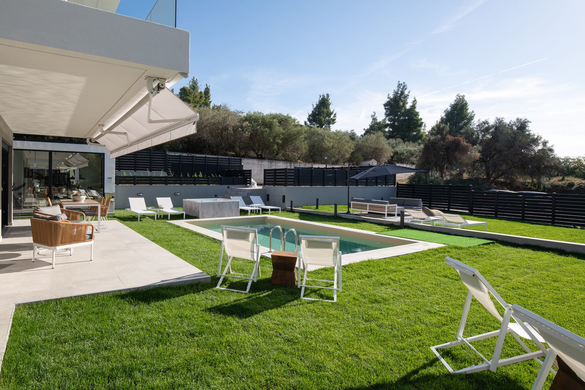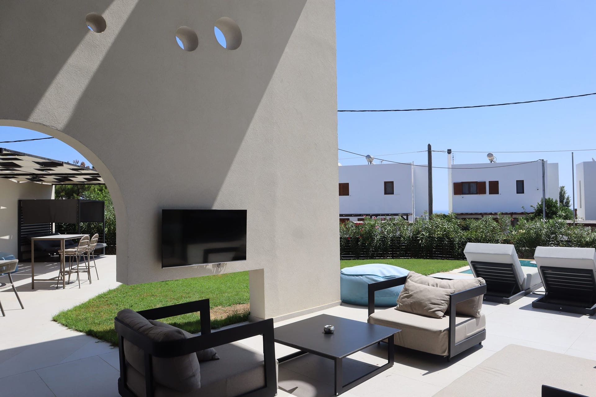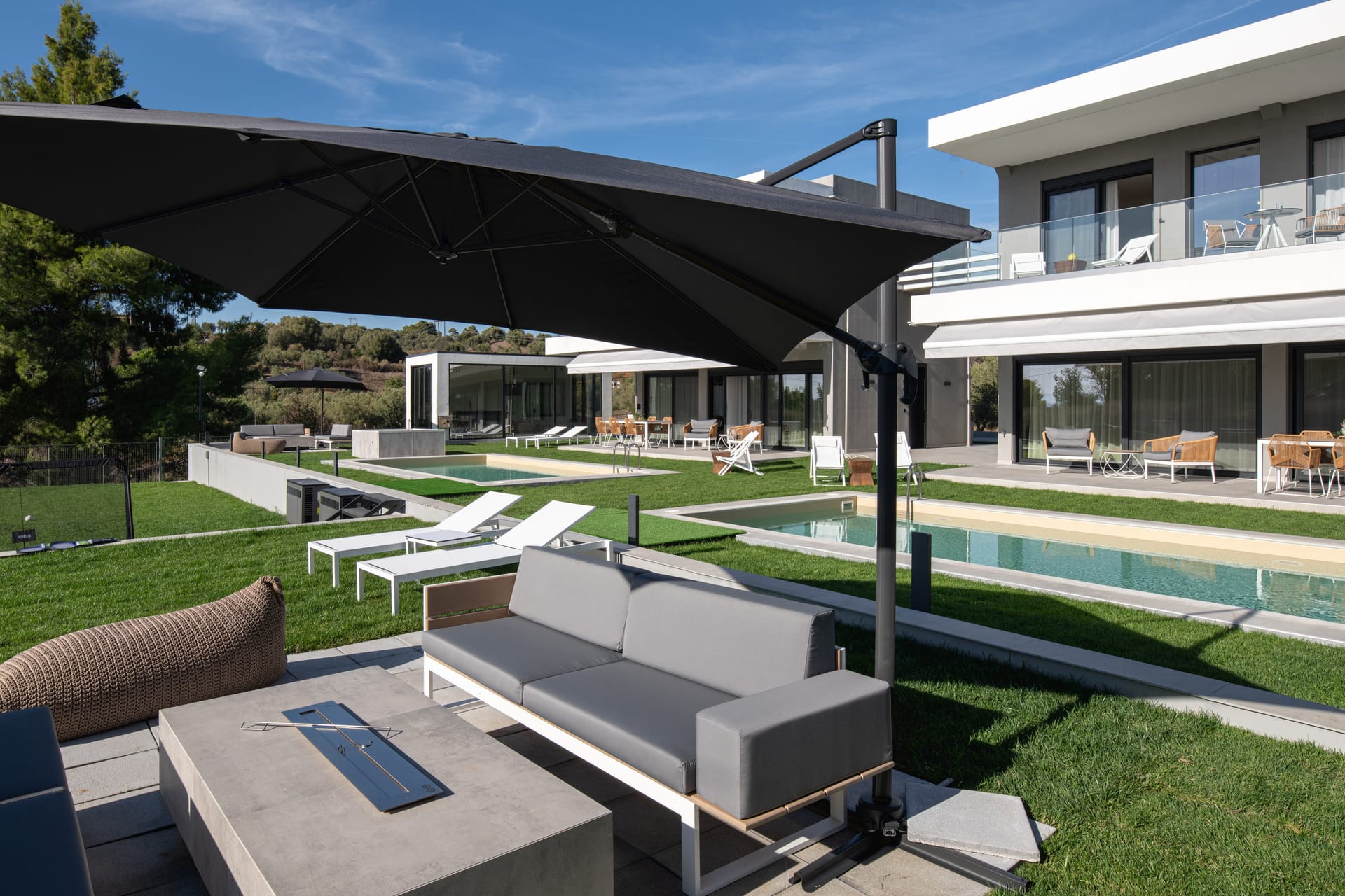 - Outdoor living and dining areas.