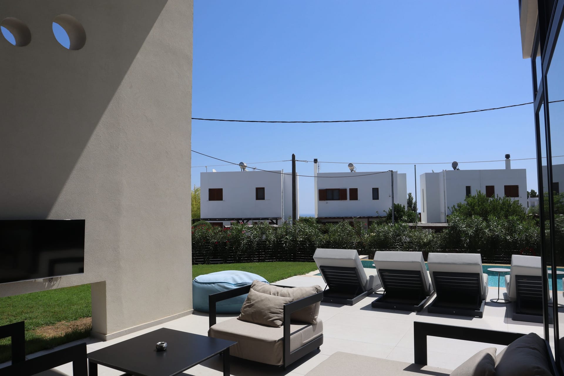 The independent guest houses are located below the pool level.