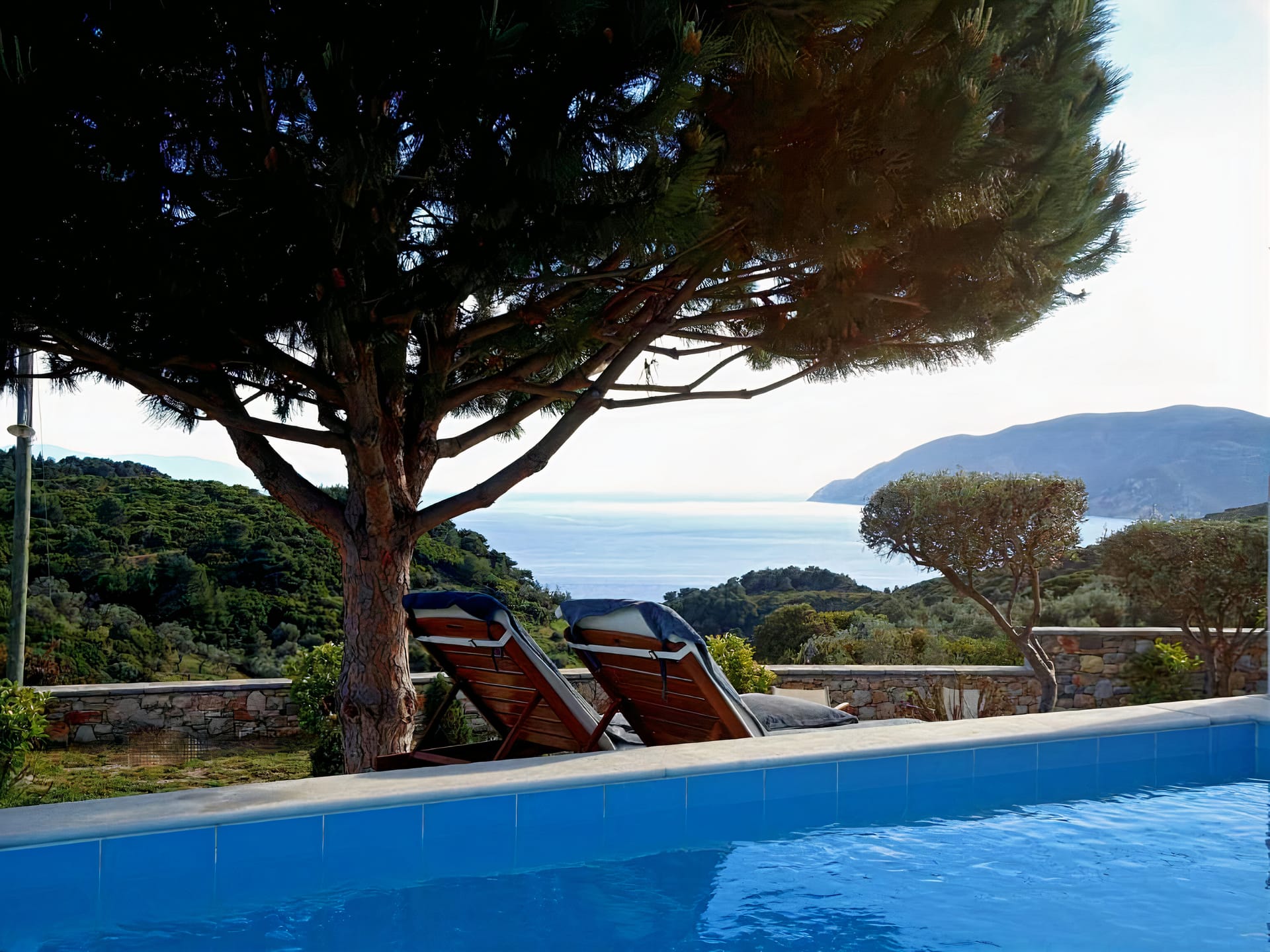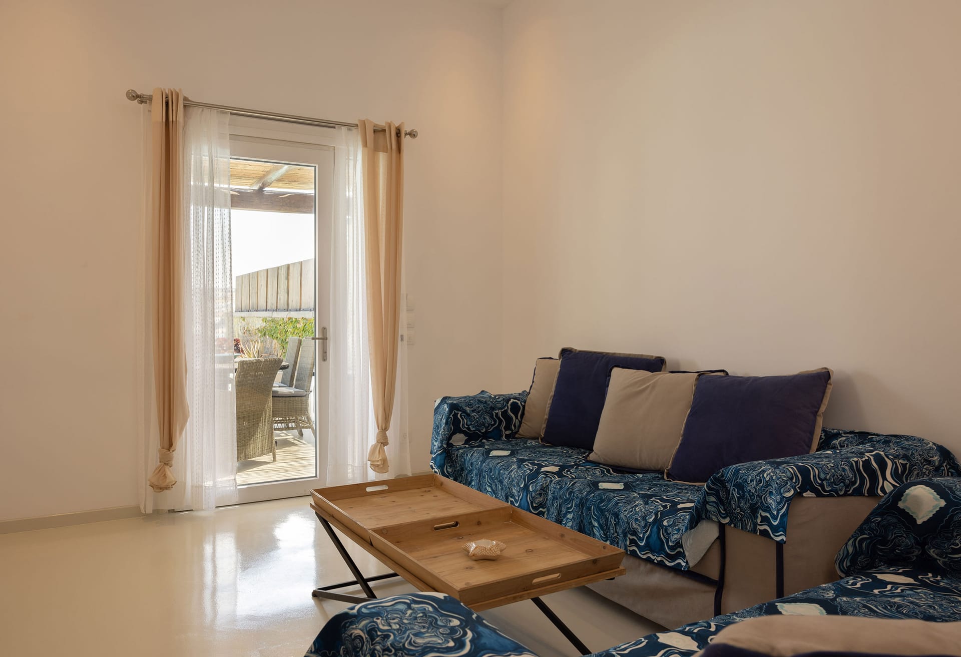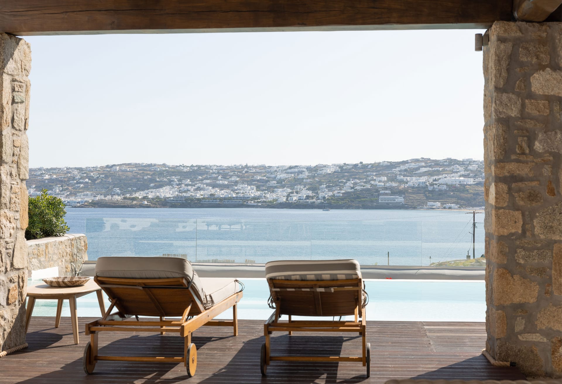 Indoors, guests enjoy spacious living areas, a fully equipped kitchen, and elegant bedrooms that blend Cycladic architecture with modern comforts. Outdoors, the private swimming pool, sun loungers, and shaded veranda provide the ideal setting for relaxing moments under the warm Aegean sun.