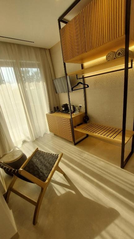 Grand Blue Beach Residences not only have access to a beach, there is literally one at the bottom of the garden!!! You simply walk out of the door of your suite, walk along the beautiful wooden decking pathway to the end of the garden and 20 seconds or so later you will walk straight onto your very own secluded sandy cove. These suites are as close to the sea as you can possibly get without actually living on a yacht!