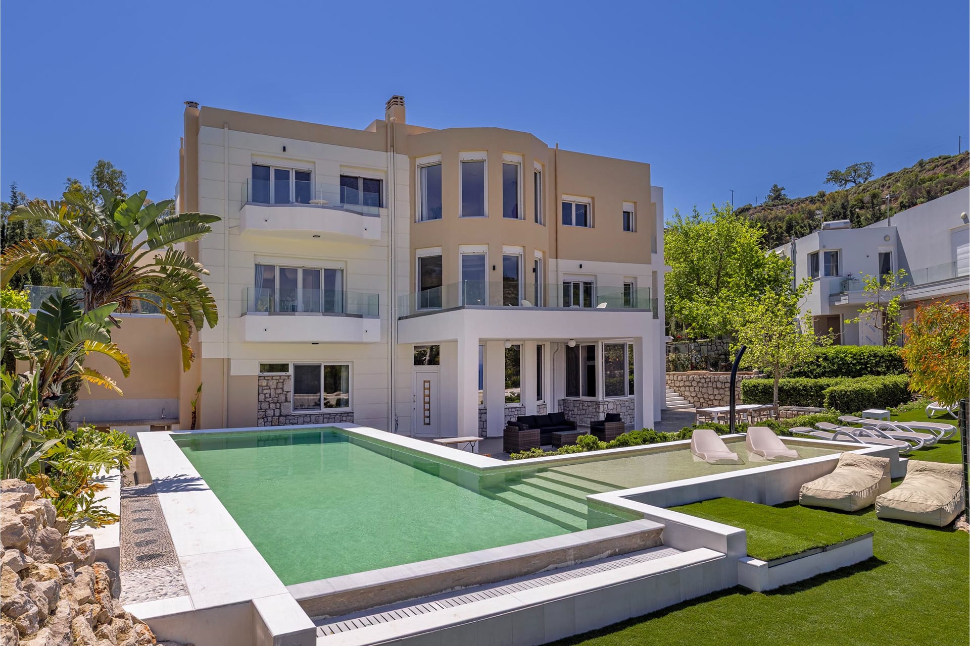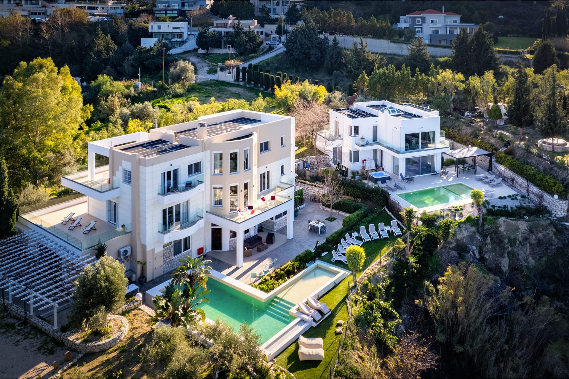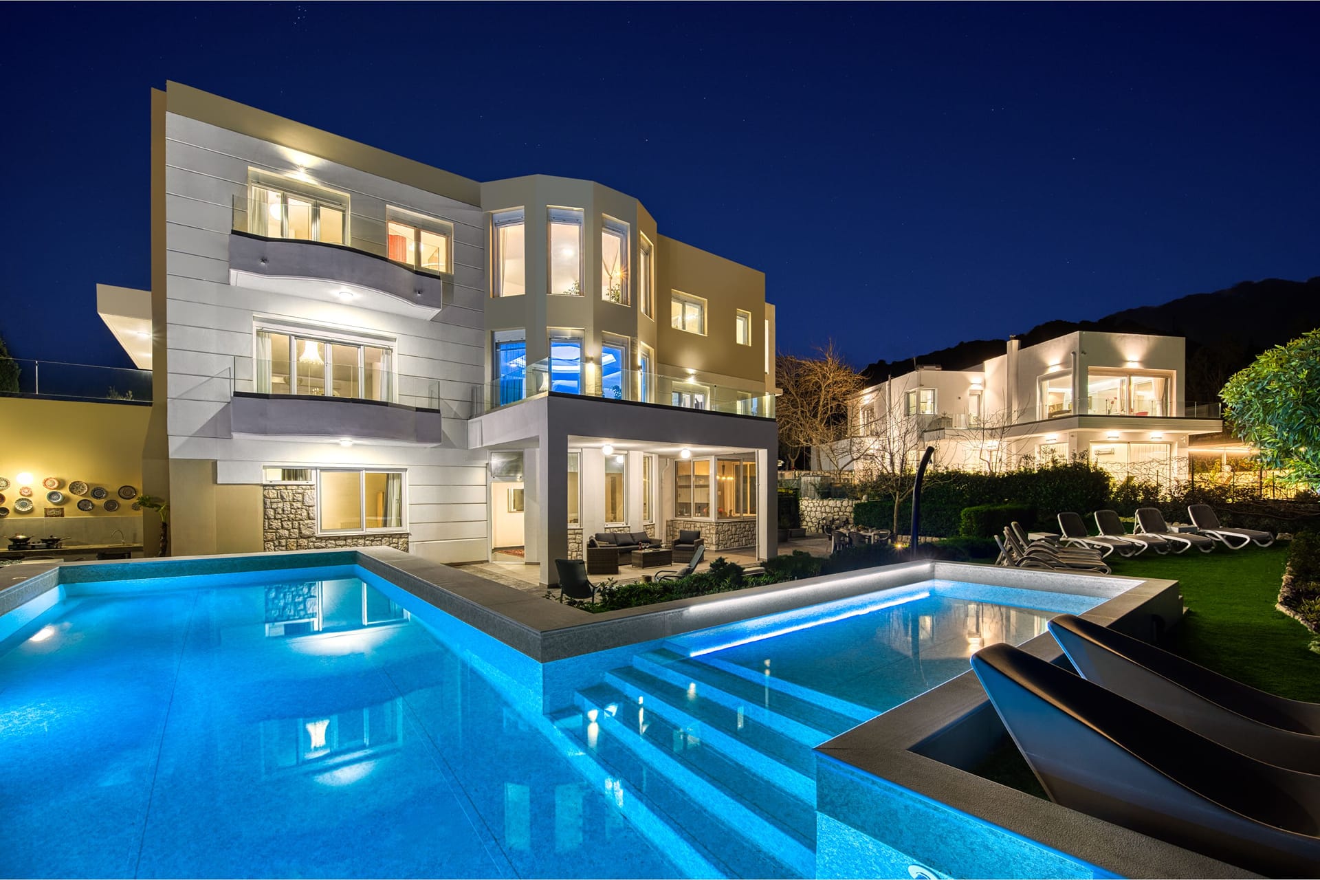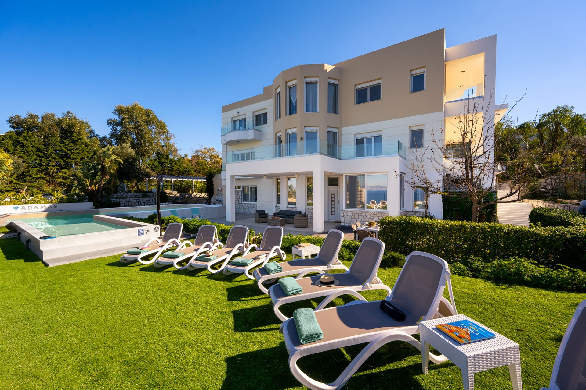 Adamas Villa in Rhodes is a luxurious retreat located in the prestigious and scenic Monte Smith area, perched on a clifftop with breathtaking panoramic sea views. This elegantly designed villa spans three levels—ground floor and two upper floors—combining style, comfort, and functionality for an unforgettable stay.