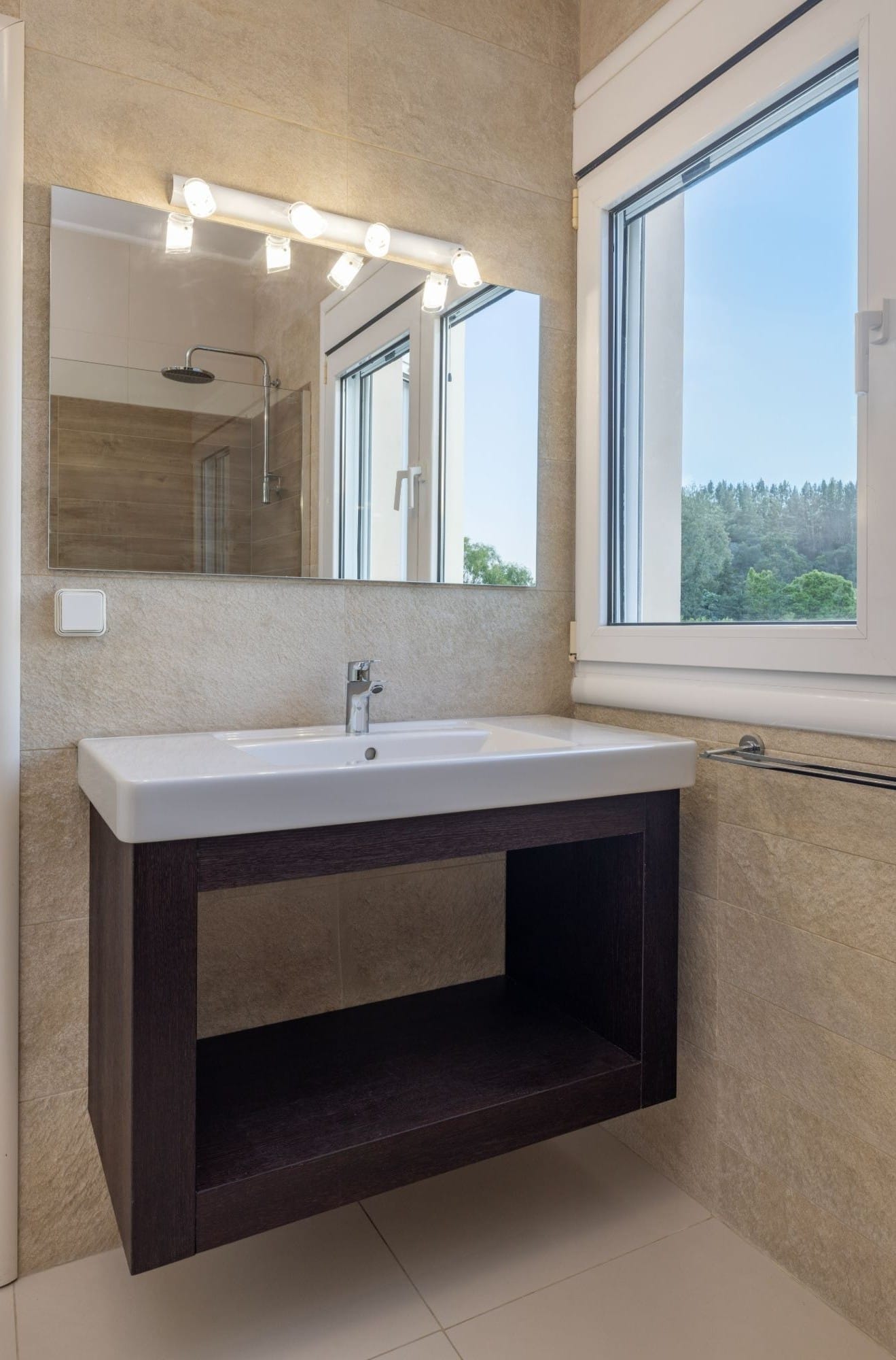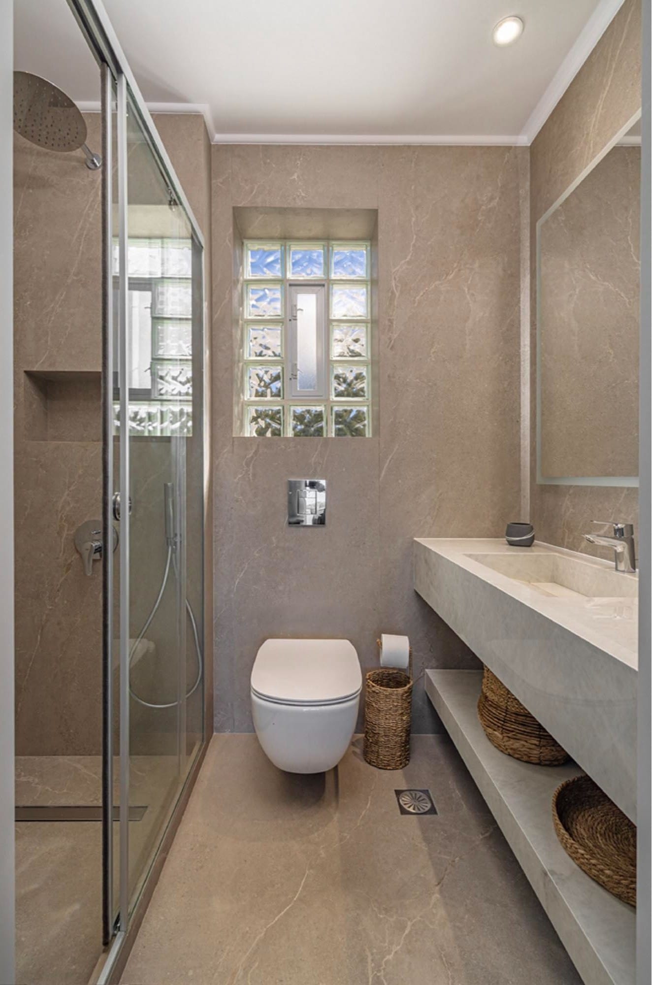 The second floor hosts three beautifully decorated double bedrooms, a bright office area that opens to a private terrace, two bathrooms with showers, and one bathroom with a relaxing bathtub.