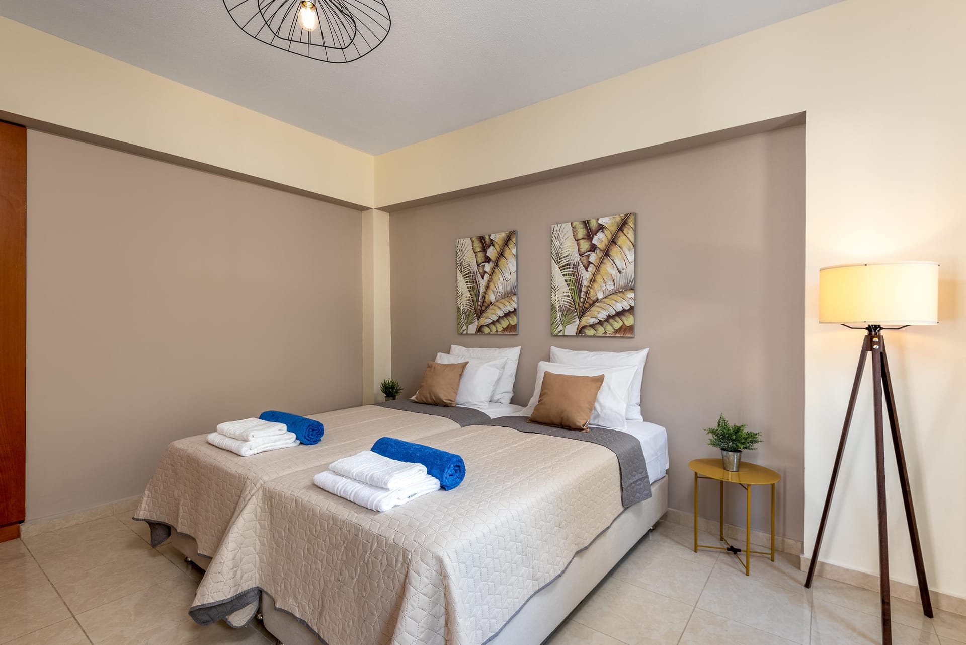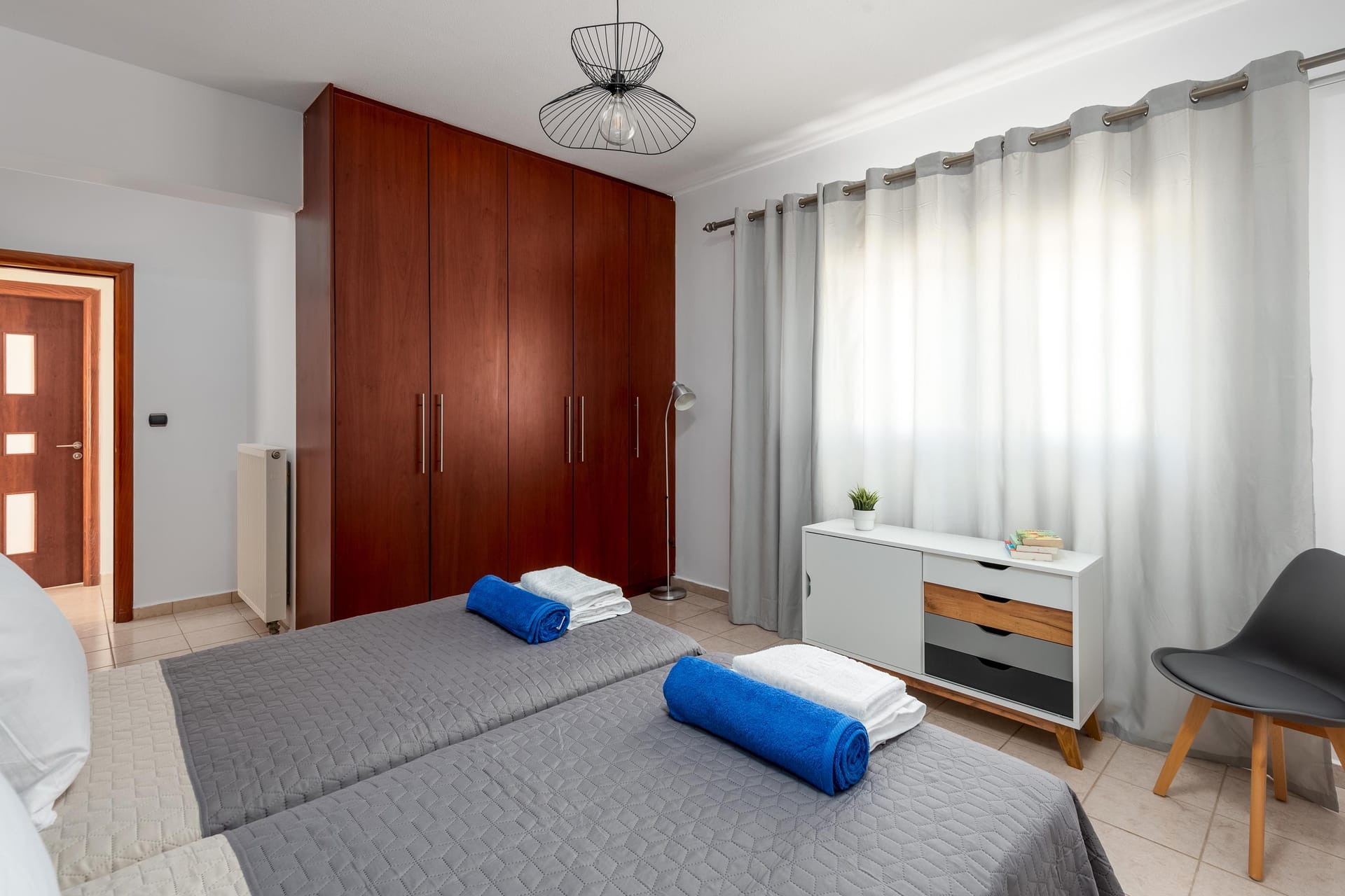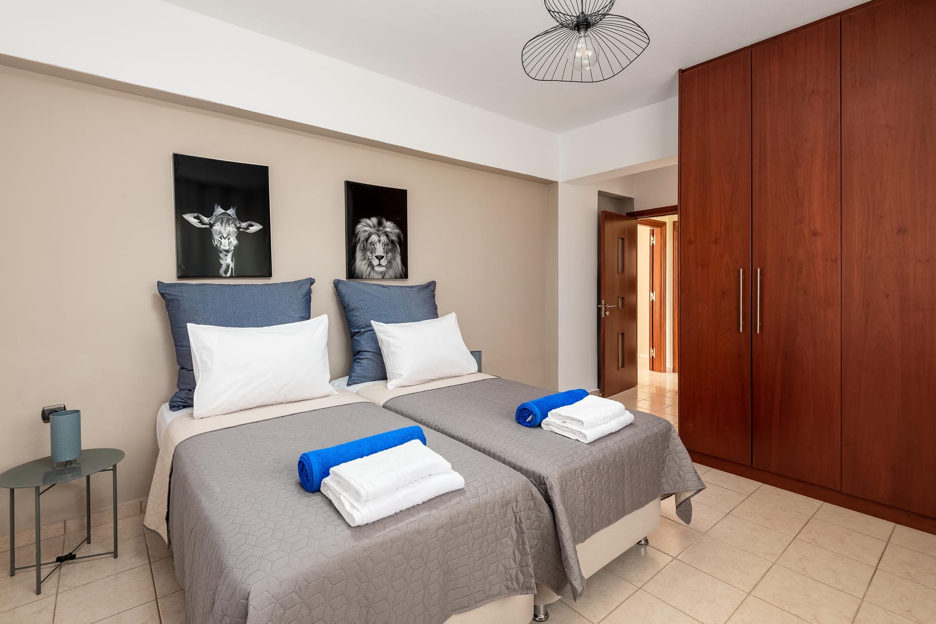 Aileen Villa, which translates to “torch of light,” offers an amazing decor and a wonderful private swimming pool. Located in Koskinou village, it hosts up to 10 guests. The villa features 5 bedrooms: on the ground floor, there are 2 bedrooms—one with a double bed and the other with twin beds—along with a bathroom that has a shower and a WC. On the first floor, there are 2 bedrooms with double beds and a bedroom with twin beds. One of the double-bedded rooms has an ensuite bathroom with a bathtub and shower for your ultimate comfort. All bedrooms are carefully decorated in a contemporary style with an artistic touch.