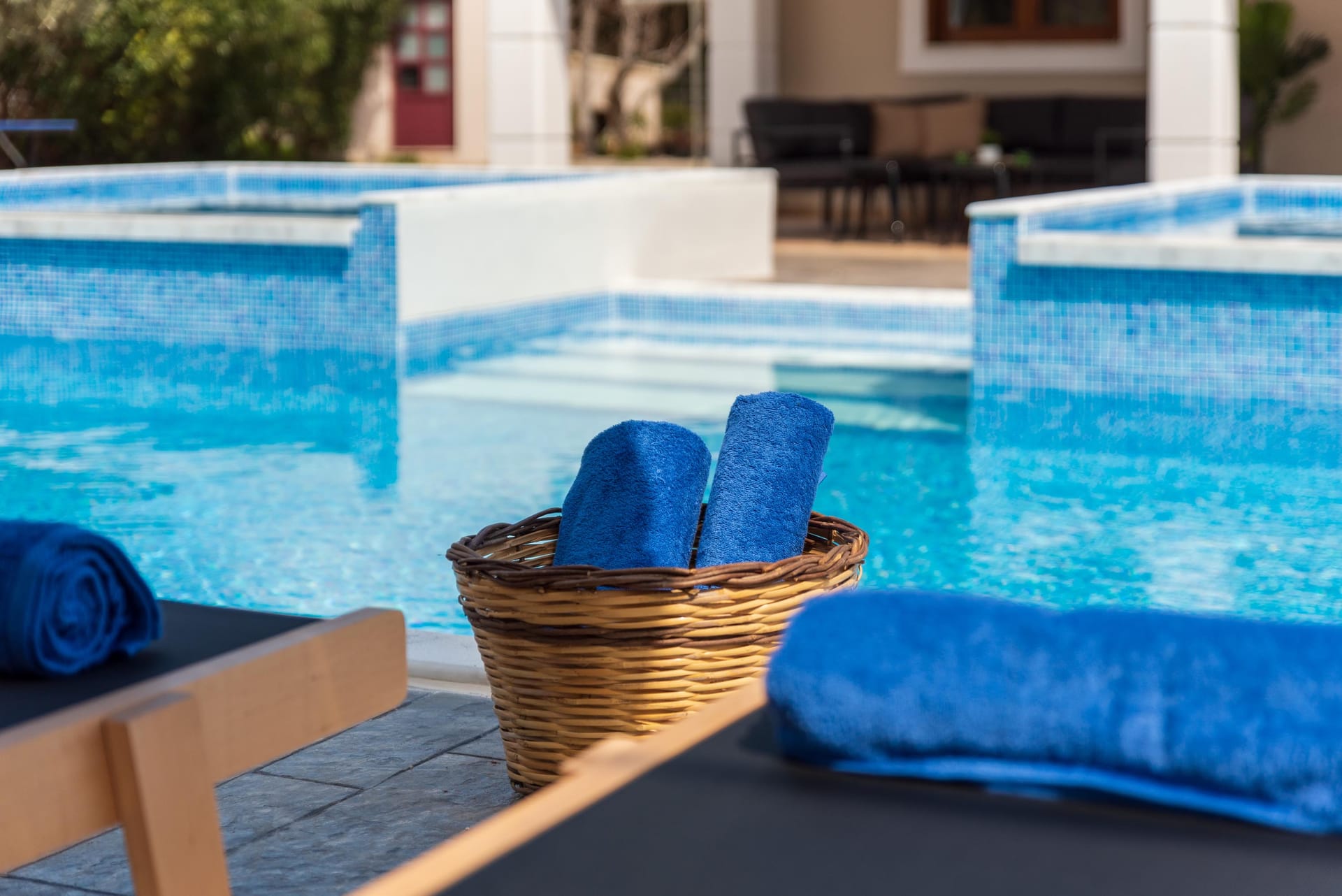 Guests will find a fully equipped kitchen, suitable for meal preparation, along with comfortable seating areas. The living area is uniquely designed in warm colors that evoke peace and tranquility. Free Wi-Fi is accessible throughout the property, and there’s a smart TV in the living room and two bedrooms. Outdoors, you will discover an enchanting private swimming pool with sunbeds, as well as 2 small pools for kids. The surroundings are peaceful, featuring incredible views of the sea and a beautiful garden. Guests can also enjoy a BBQ facility and a seating area with a pergola for family or friends gatherings.