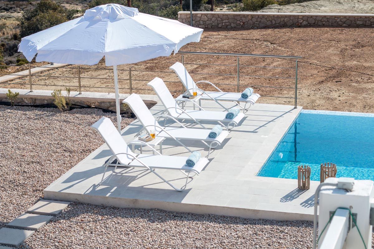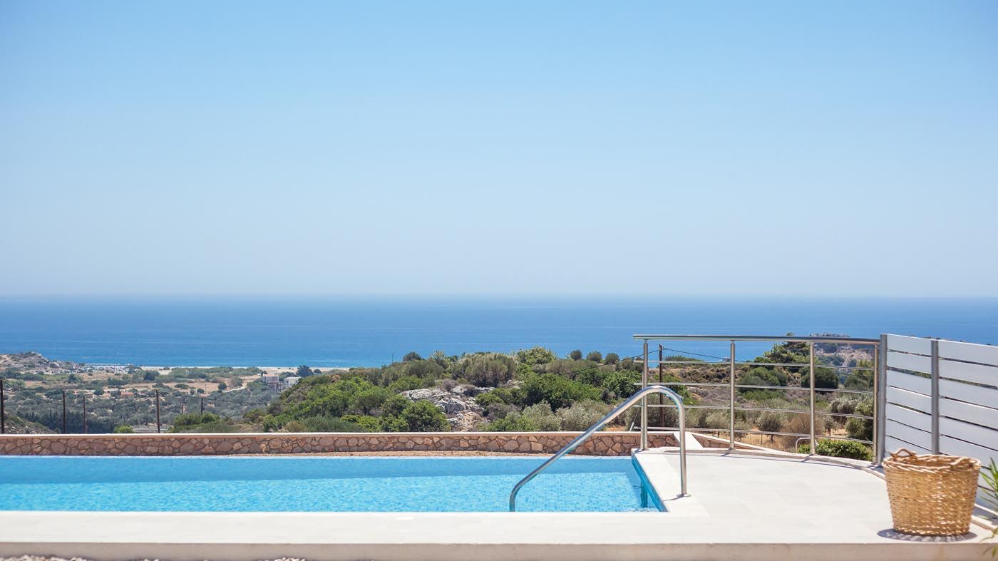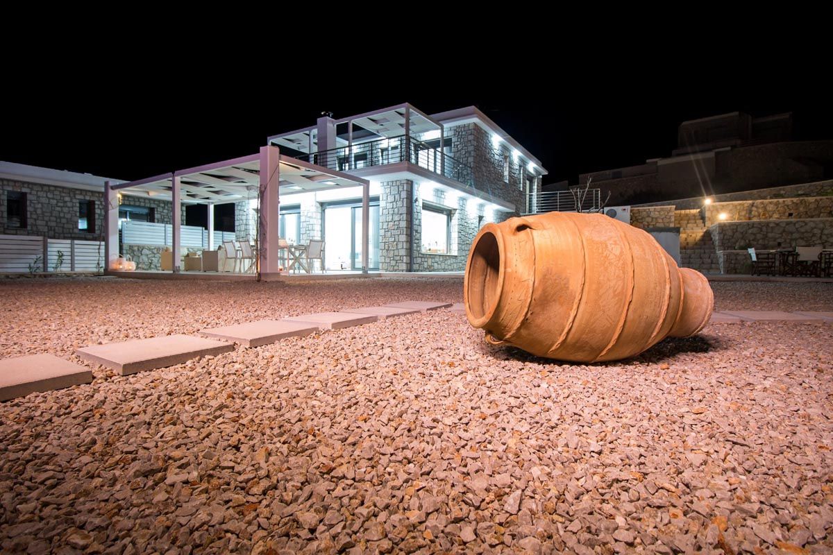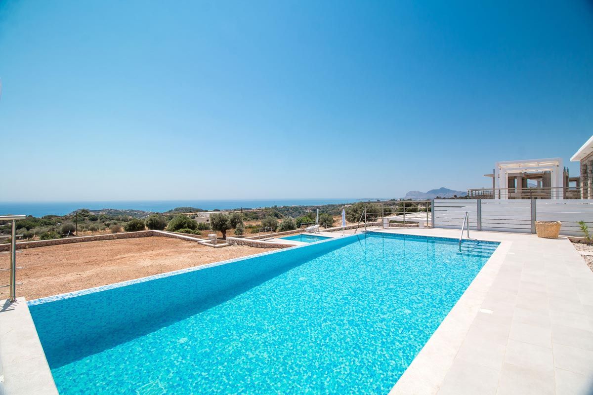 This contemporary villa is designed for comfort and luxury. It boasts a fully equipped kitchen, perfect for any meal preparation, and a spacious open-plan living room furnished with comfortable seating, a flat-screen TV, satellite channels, and a surround sound system for ultimate relaxation. Outside, guests can enjoy a private swimming pool surrounded by sunbeds with breathtaking sea views, and a seating area for gatherings, complete with BBQ facilities ideal for enjoying meals during the golden hours.