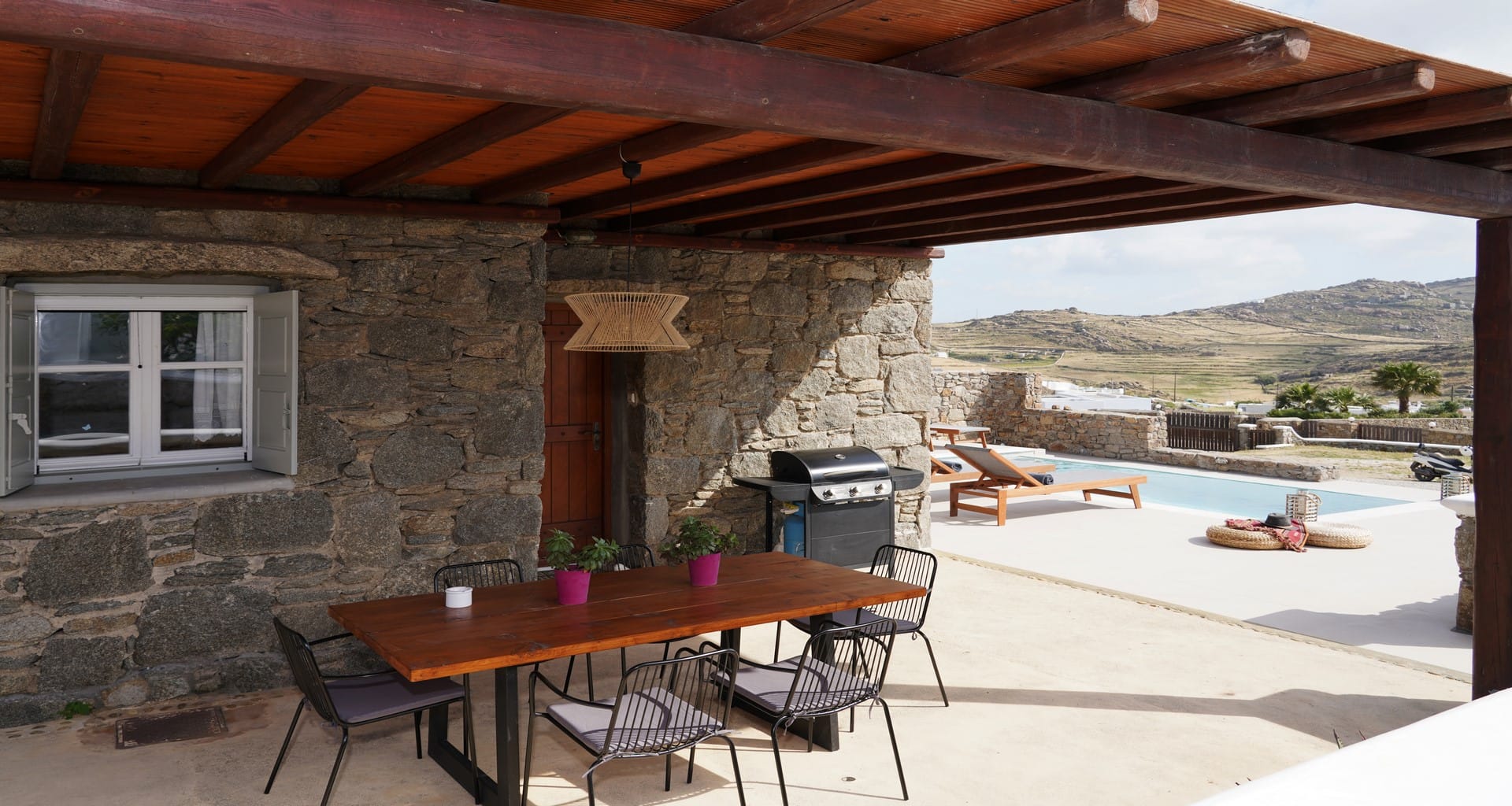 - Outdoor dining area and lounge furniture