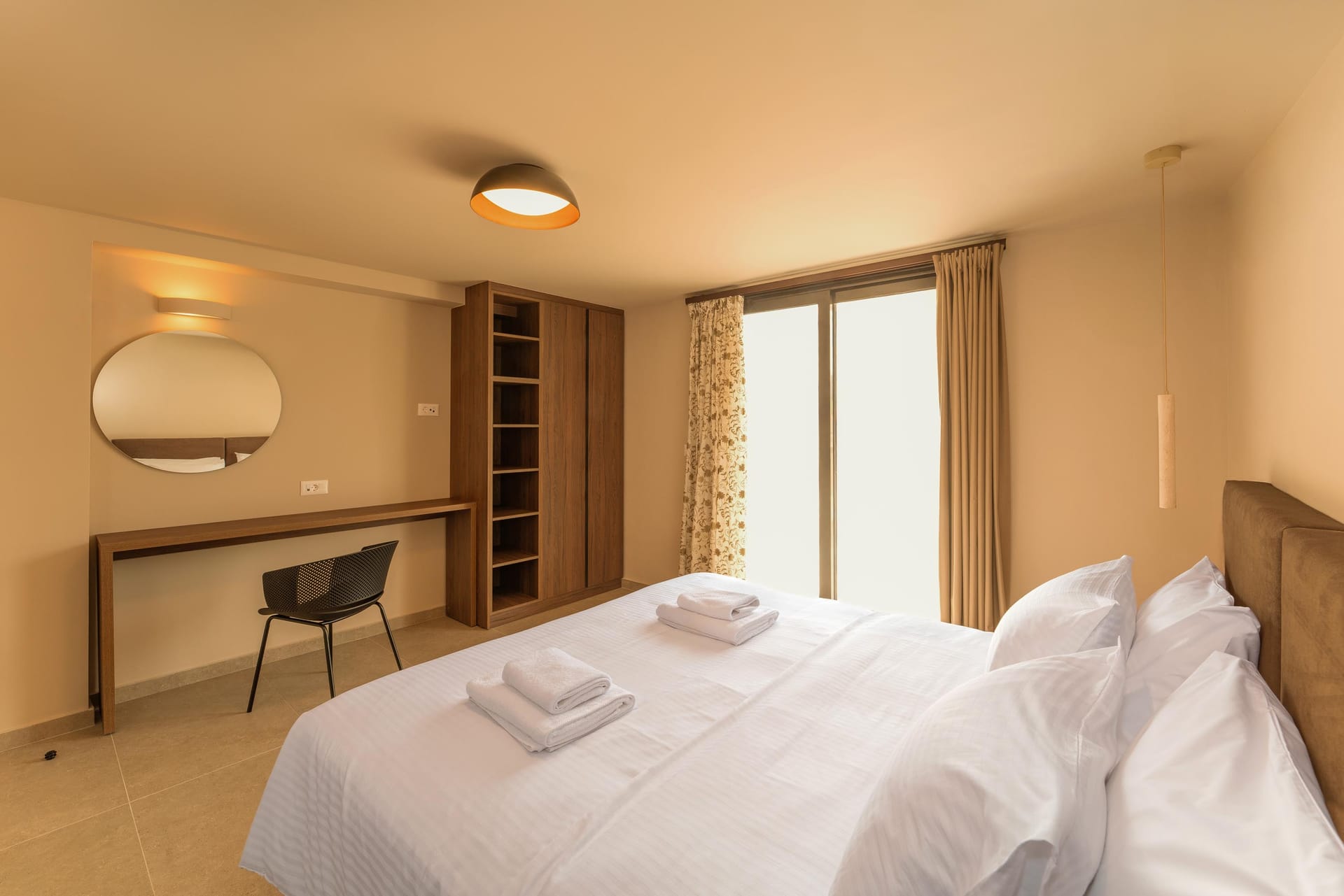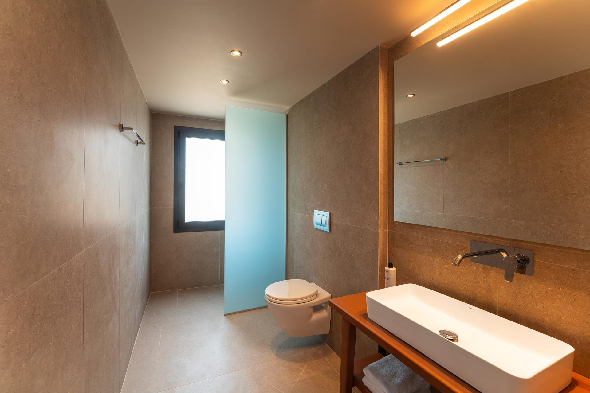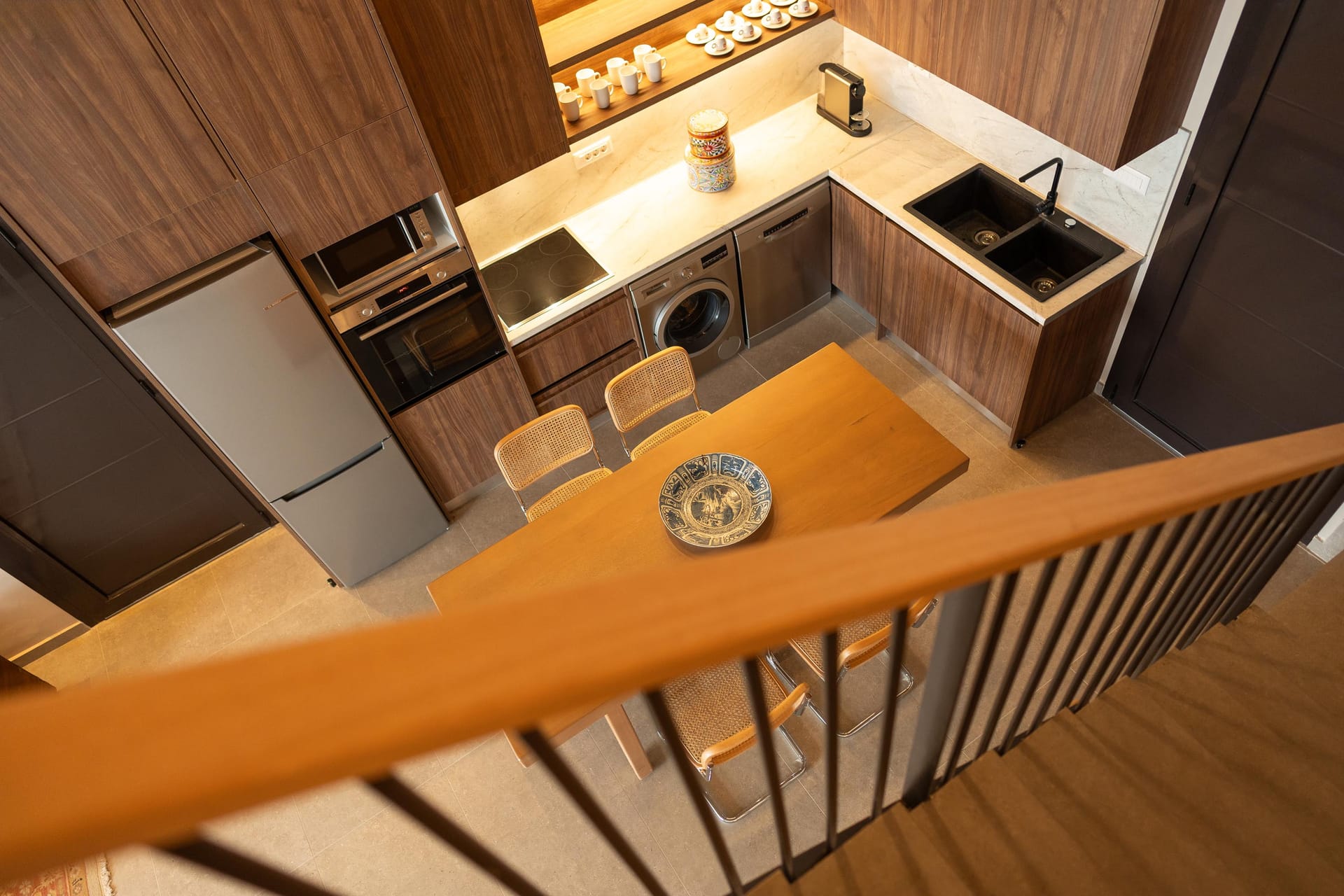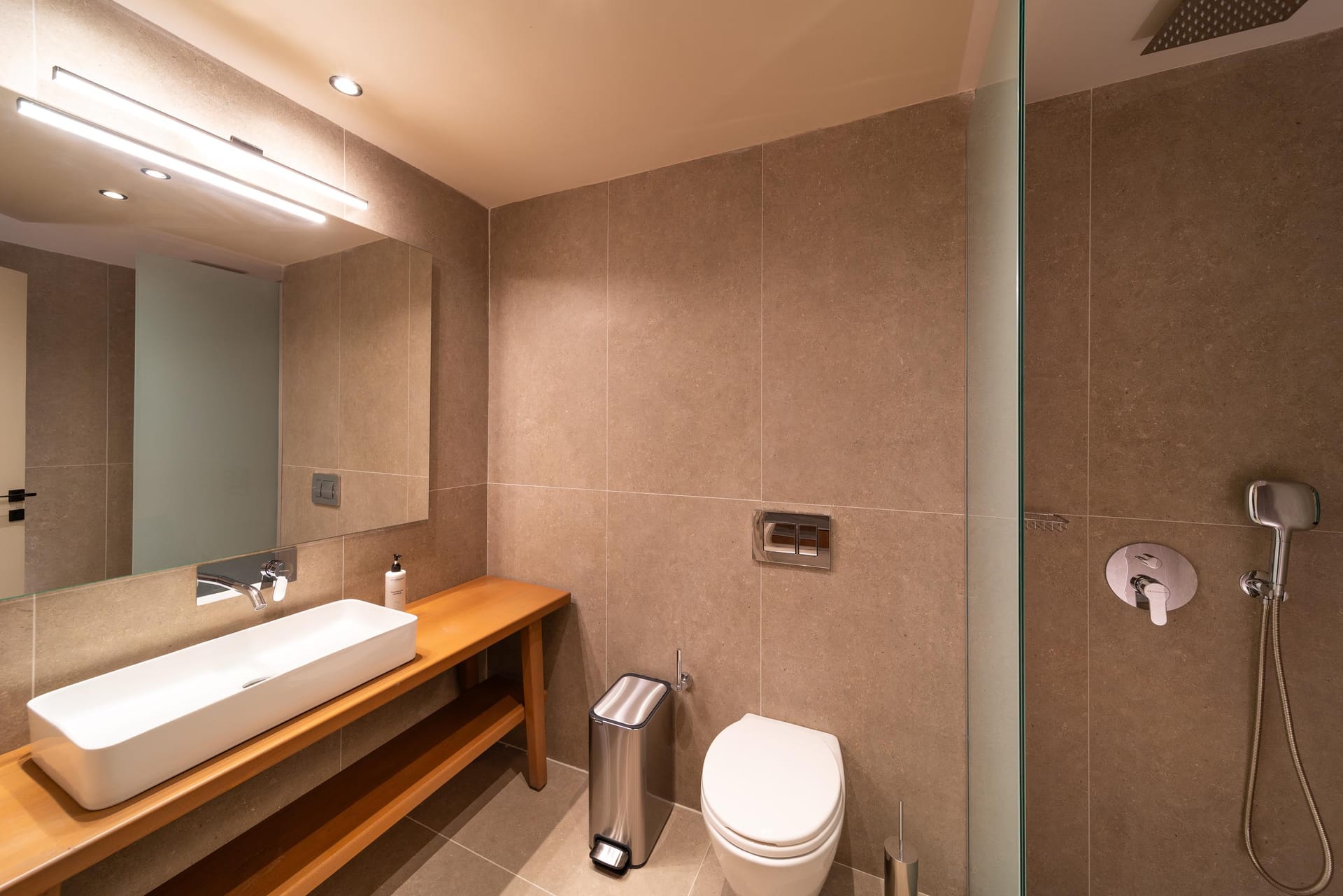 Luma Villas features four spacious bedrooms with double beds—one located in the basement, one on the first floor, and two on the second floor—ensuring privacy and relaxation. Guests will also find three bathrooms with showers, one on each floor, for added convenience.