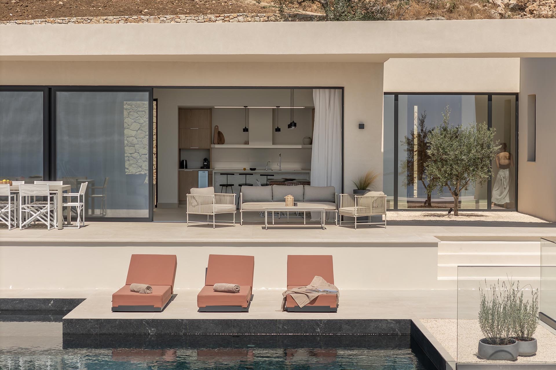 A villa bathed in light, overlooking the infinite Aegean and the island’s most iconic sunsets. Villa Aura embodies tranquility, sophistication, and the freedom of open horizons.