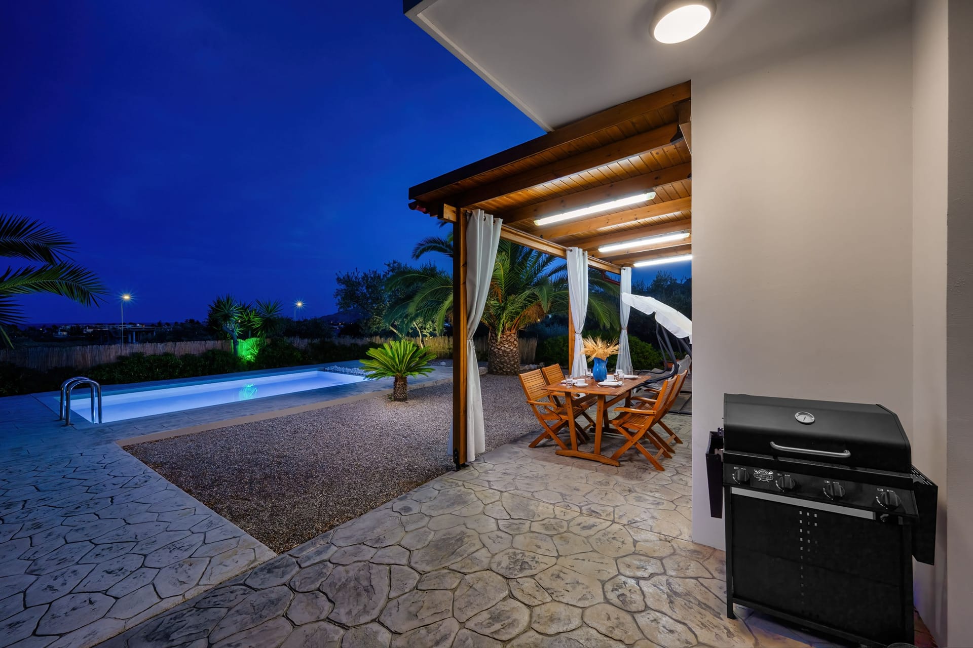 This single-storey house includes an open-plan kitchen fully equipped with all necessary appliances, an inviting living room with a fireplace, and a dining area. You can also enjoy the beautiful well-tended garden, elegant outdoor furniture, a wonderful private swimming pool, and a Jacuzzi to soak up the Mediterranean sun. Free Wi-Fi is accessible throughout the property.