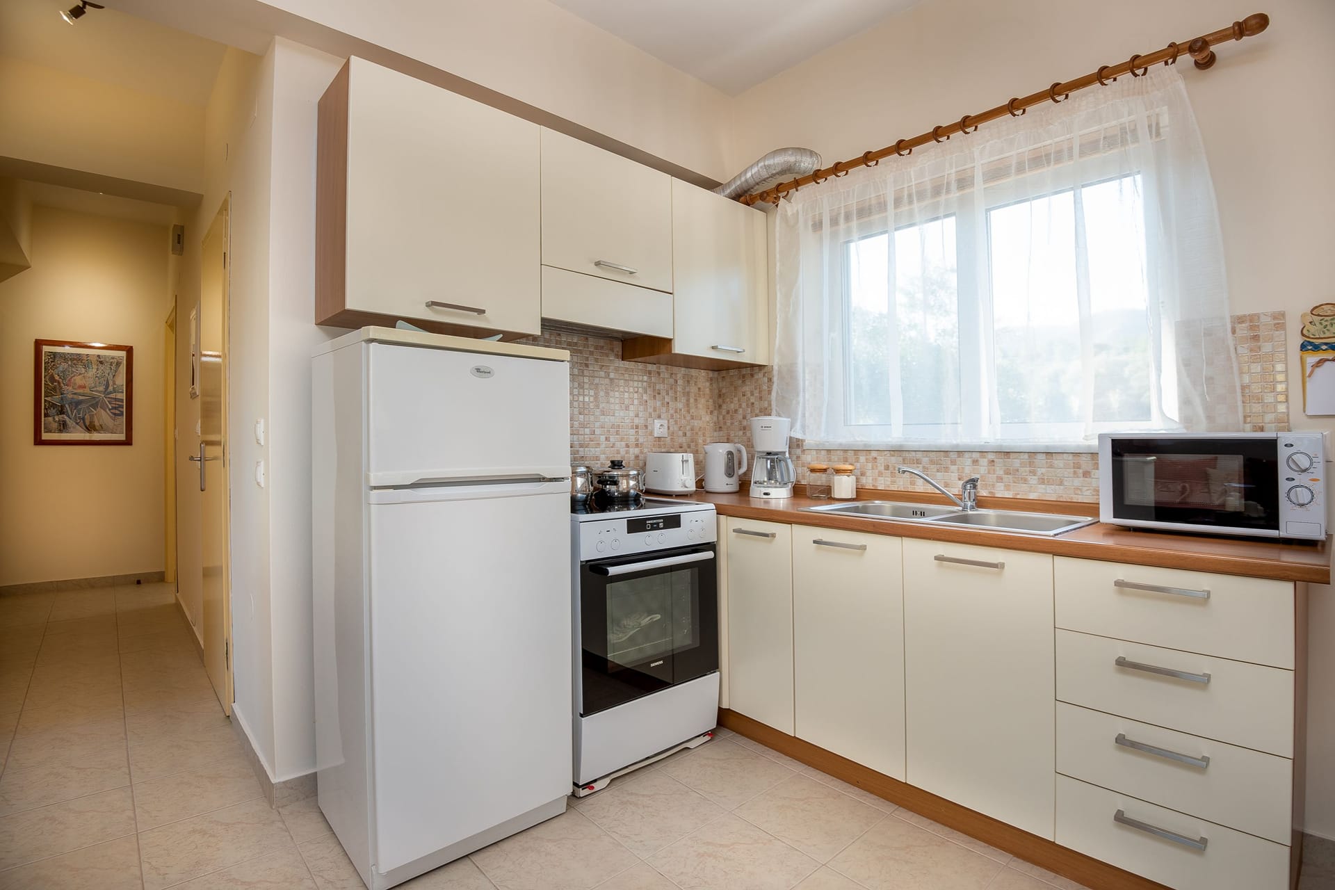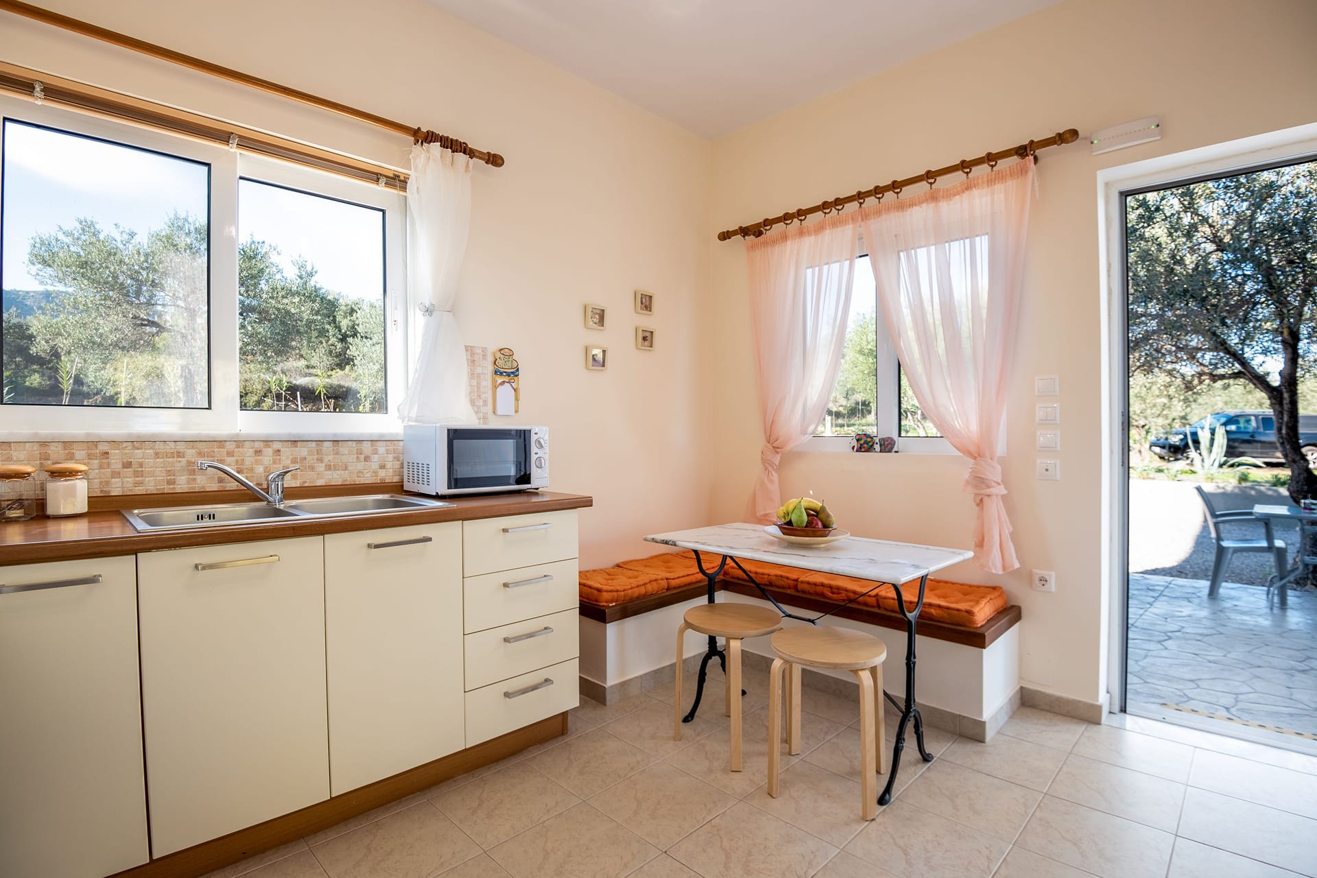 Eugenia’s Olive House hosts up to 5 guests, with one bedroom featuring a double bed, another with two single beds, and a third bedroom with one single bed. The layout is comfortable and truly homey, perfect for families or groups of friends.