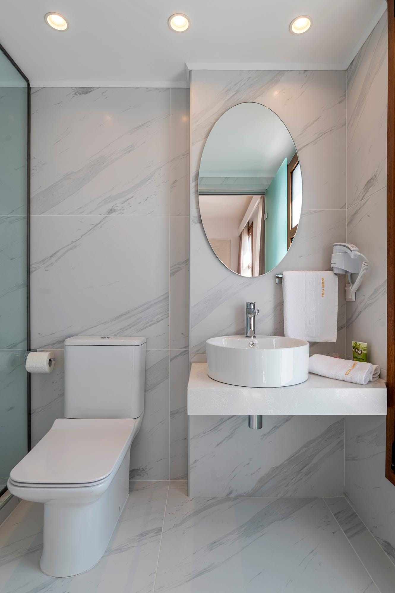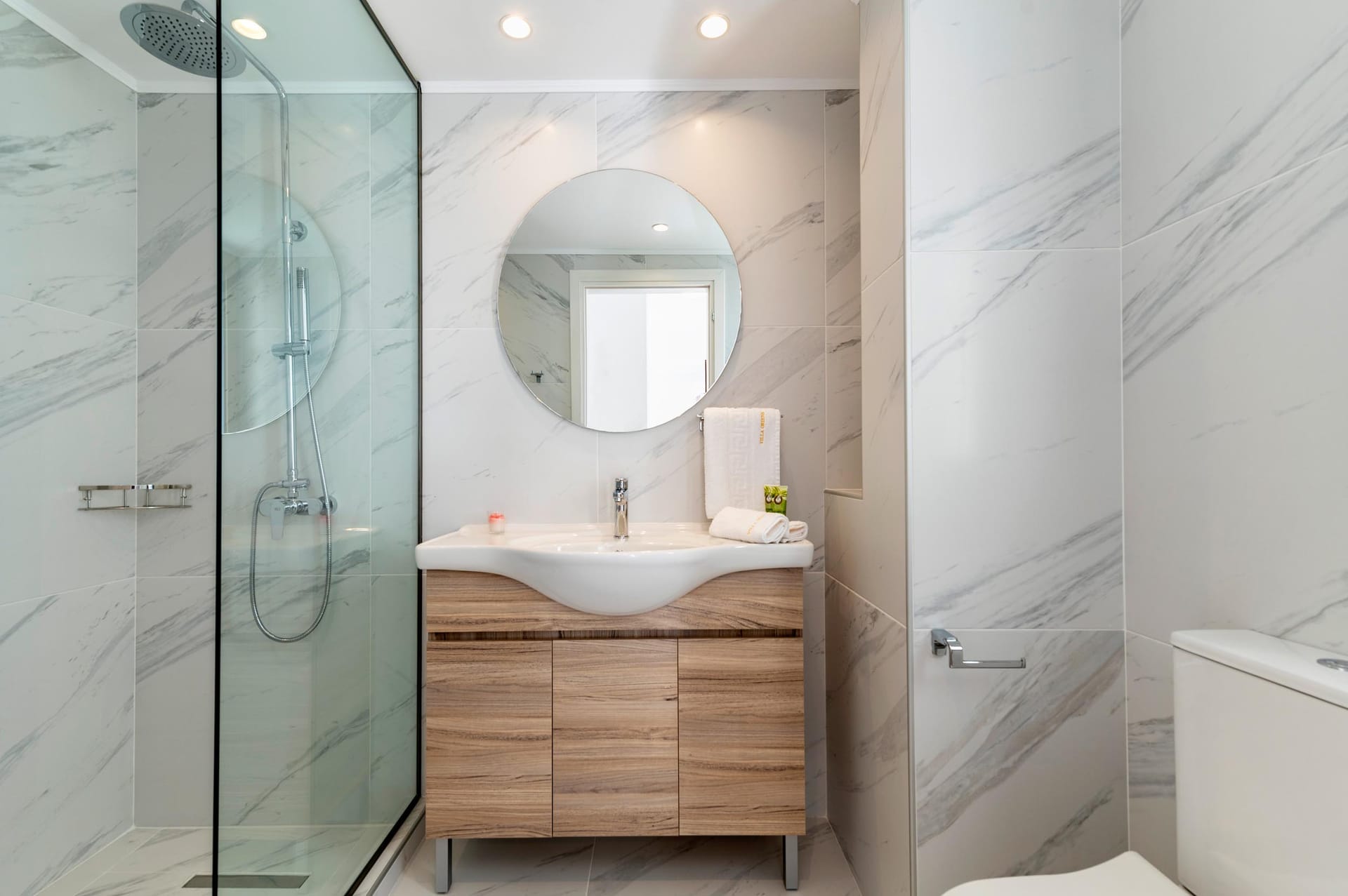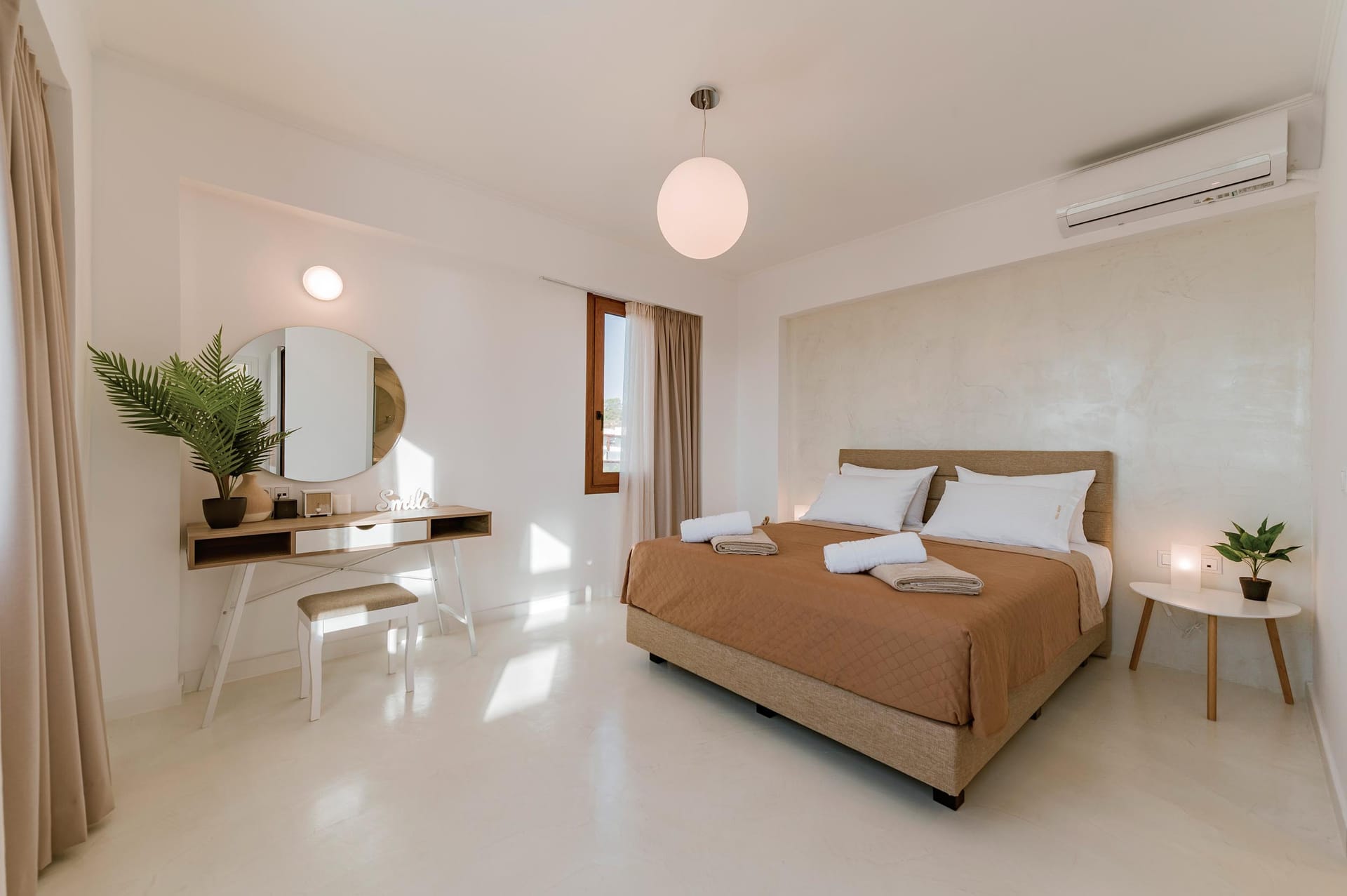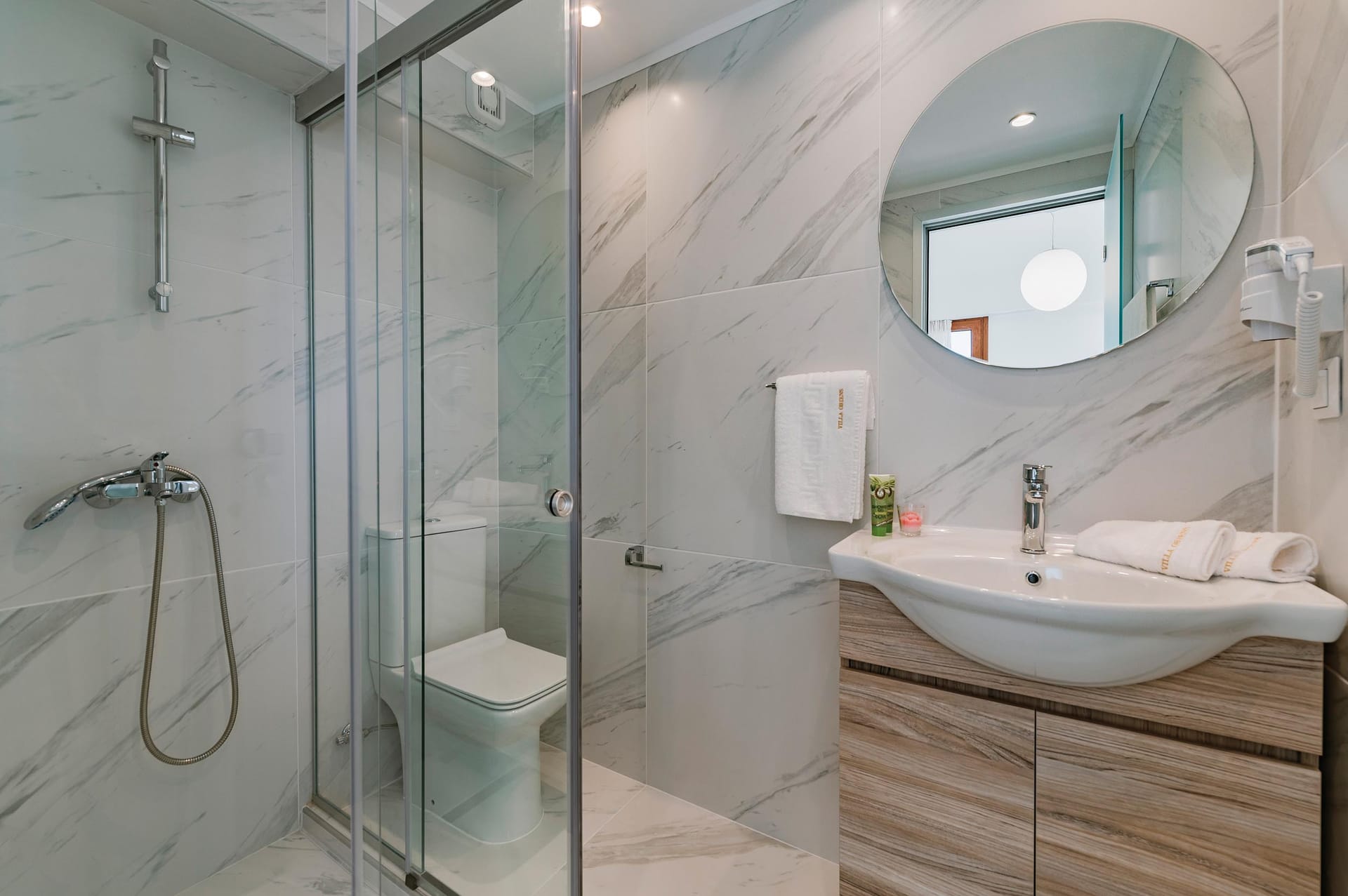 Oriens villa has 3 bedrooms, each with a double bed. There are two bathrooms with showers; one of them is included in a bedroom. There’s an open-plan kitchen, fully equipped with everything needed for meal preparation along with a sitting area. The living area is quite inviting with its warm colors and convenient furniture, along with its screen TV. Guests can enjoy free Wi-Fi access throughout the property.