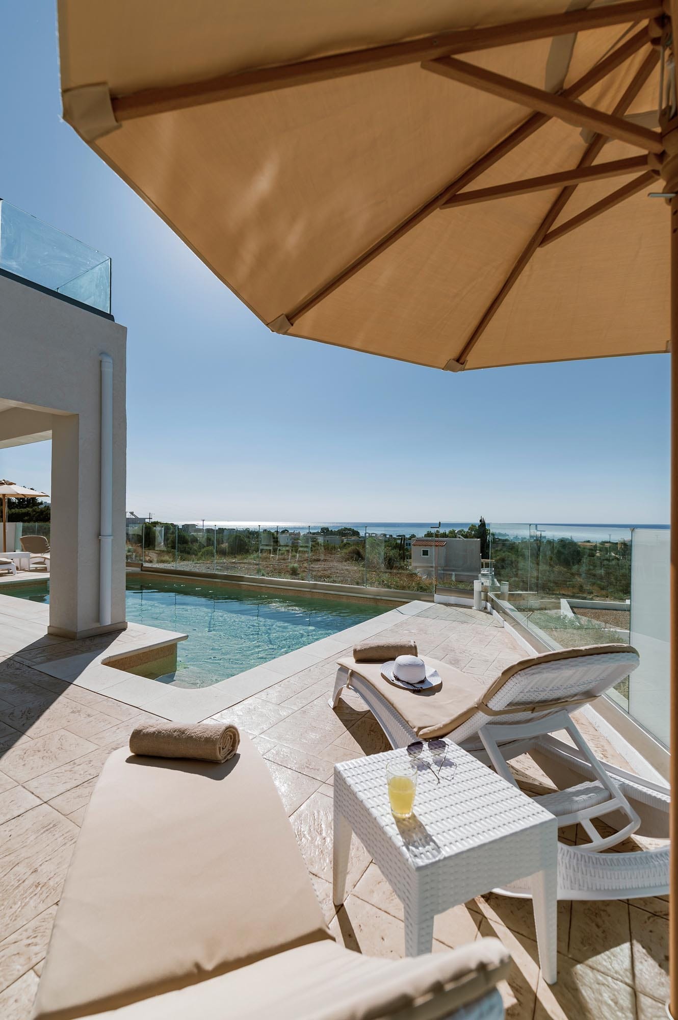 Oriens and Eventide villas are situated on the hillside of Gennadi, at a walking distance from the beach. Each modern villa has a private swimming pool and offers a panoramic view of the endless blue waters of the sea. Also, they’re brand new, tastefully decorated, and can accommodate up to 6 people.