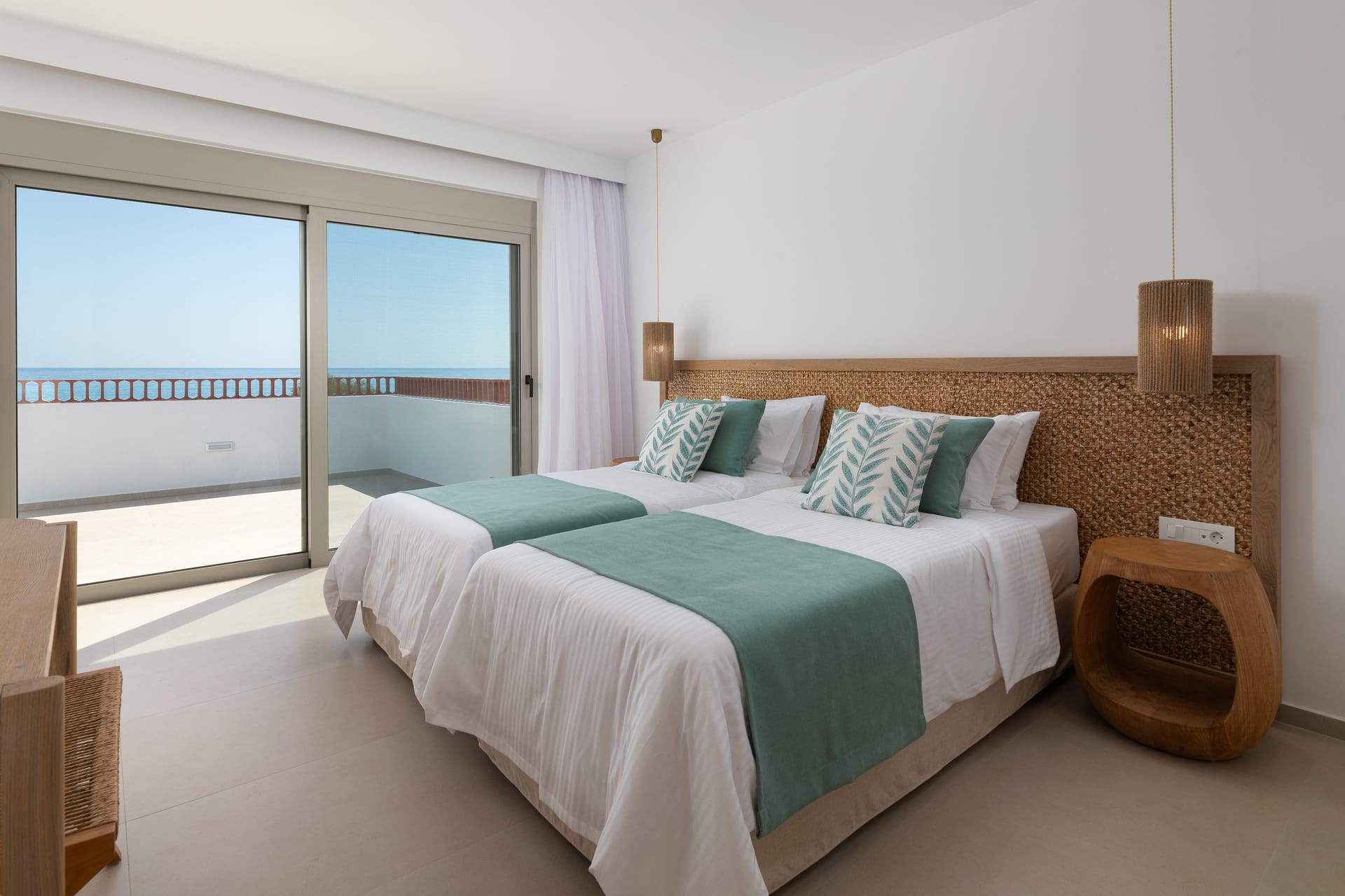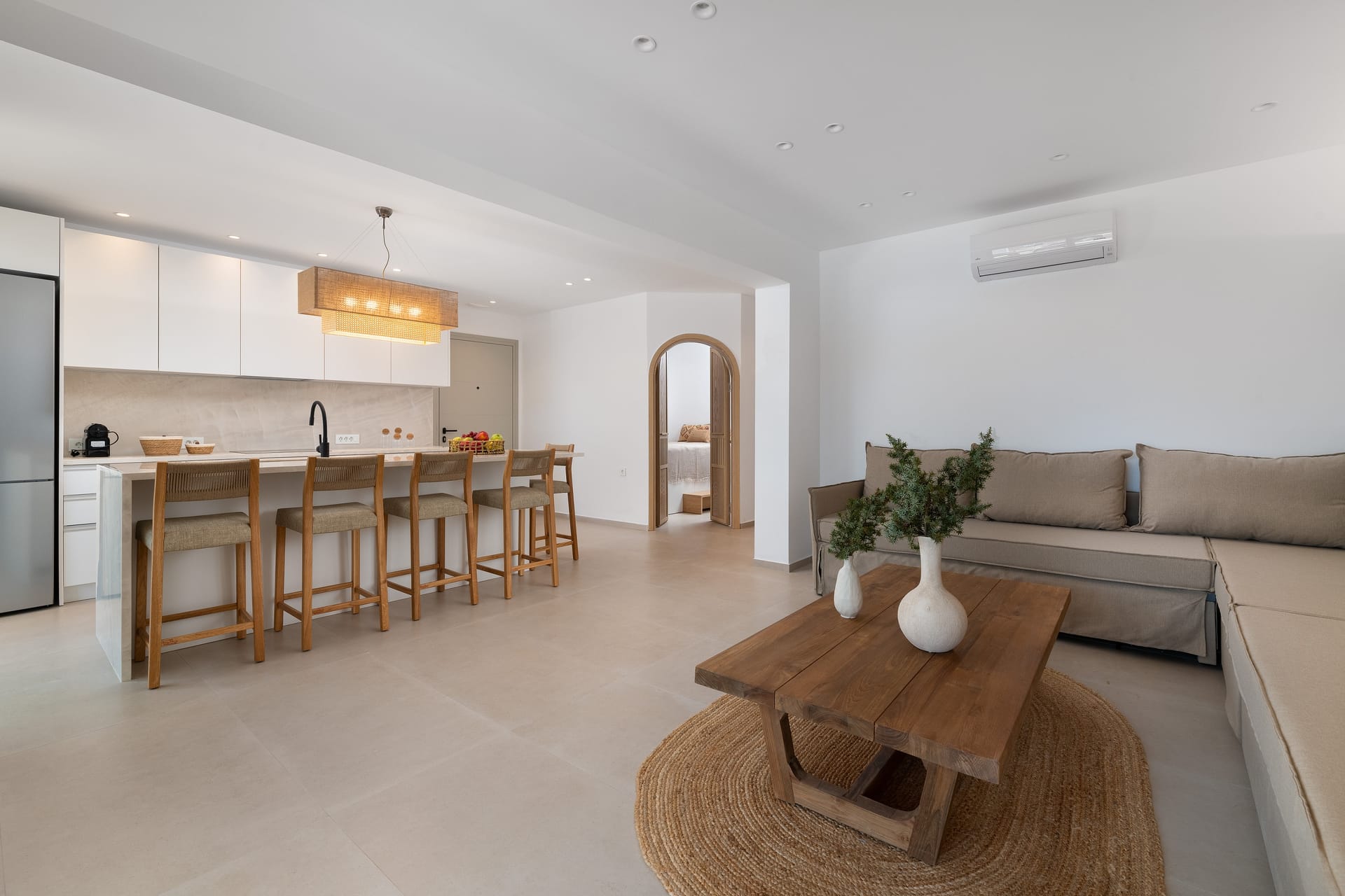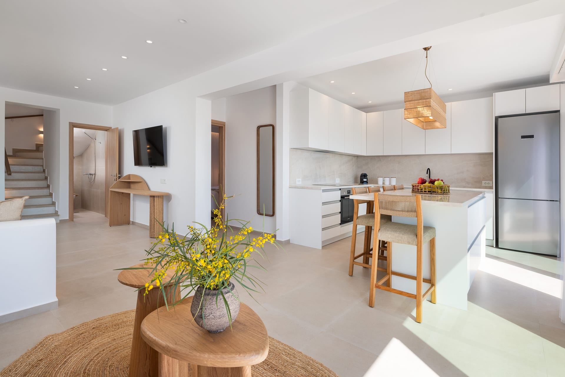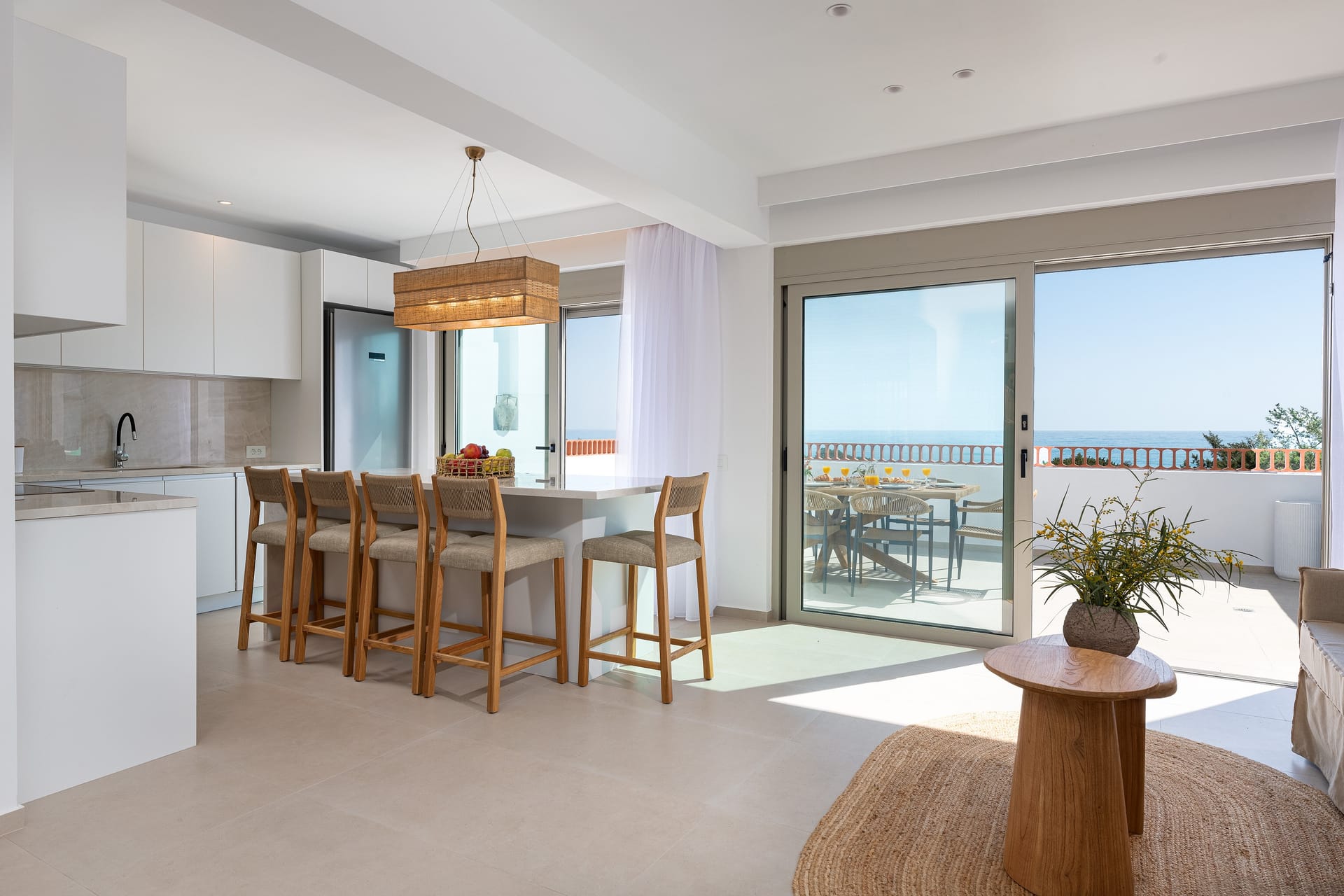 Villa Paradiso is a 5-bathroom villa located right on the beach in Lahania, Rhodes. It’s made up of two separate homes, each with its own entrance, making it perfect for families or groups who want both comfort and privacy. Inside, the villa features two fully equipped kitchens—each with high-end appliances and a marble island—ideal for group cooking or enjoying meals in separate spaces. The large open living area, stylish furniture, modern bathrooms, and cozy bedrooms—with most offering balconies and stunning sea views—ensure a luxurious stay for all guests.