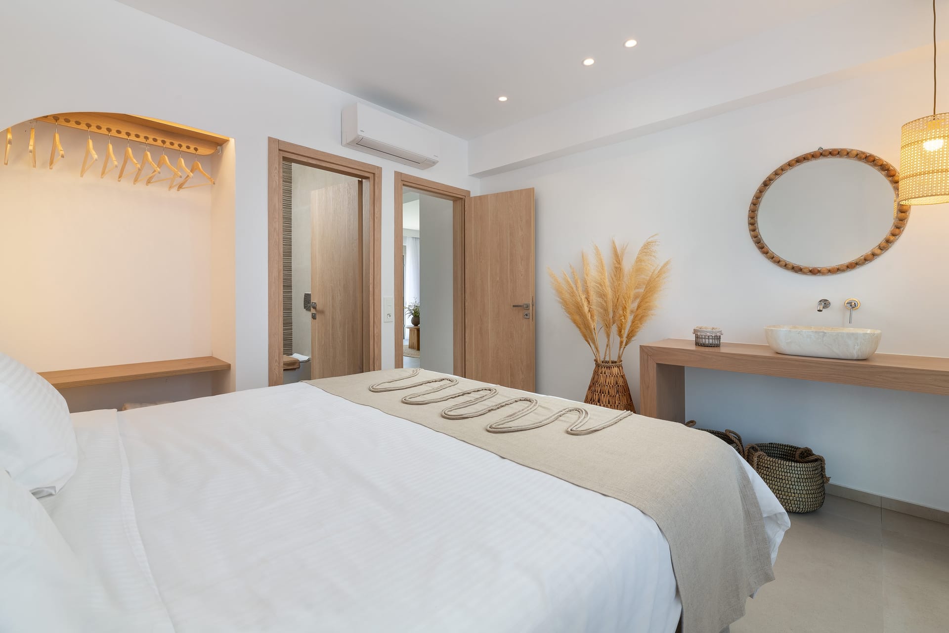 Guests can also enjoy nearby attractions such as Saint Paul’s Bay and Prasonisi, where the Aegean and Mediterranean seas meet in a stunning natural display. Traditional tavernas and supermarkets are easily accessible, offering an authentic taste of island life.