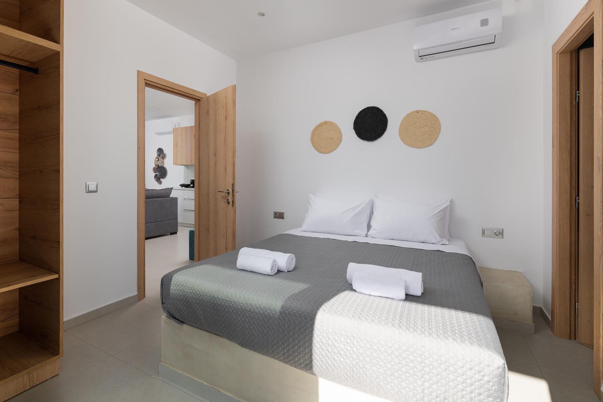 Salty Sun Luxury Villas offers 4 beautiful villas that can accommodate up to 5 guests. Each villa features two air-conditioned bedrooms, each with a comfortable double bed and an ensuite bathroom with a shower. Inside, you will find a fully equipped kitchen, perfect for preparing meals, and a cozy living room with a sofa bed and a smart TV for entertainment.