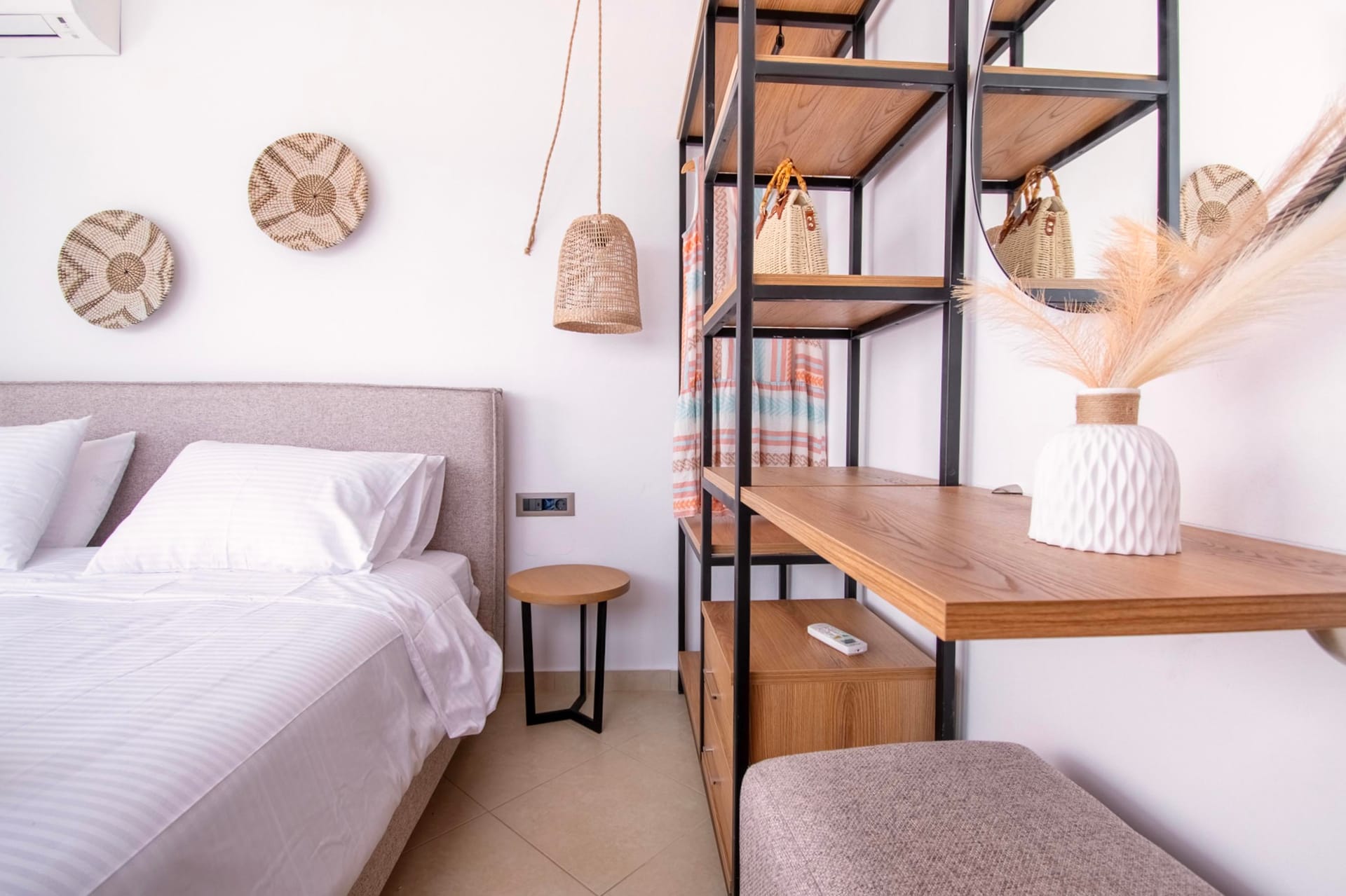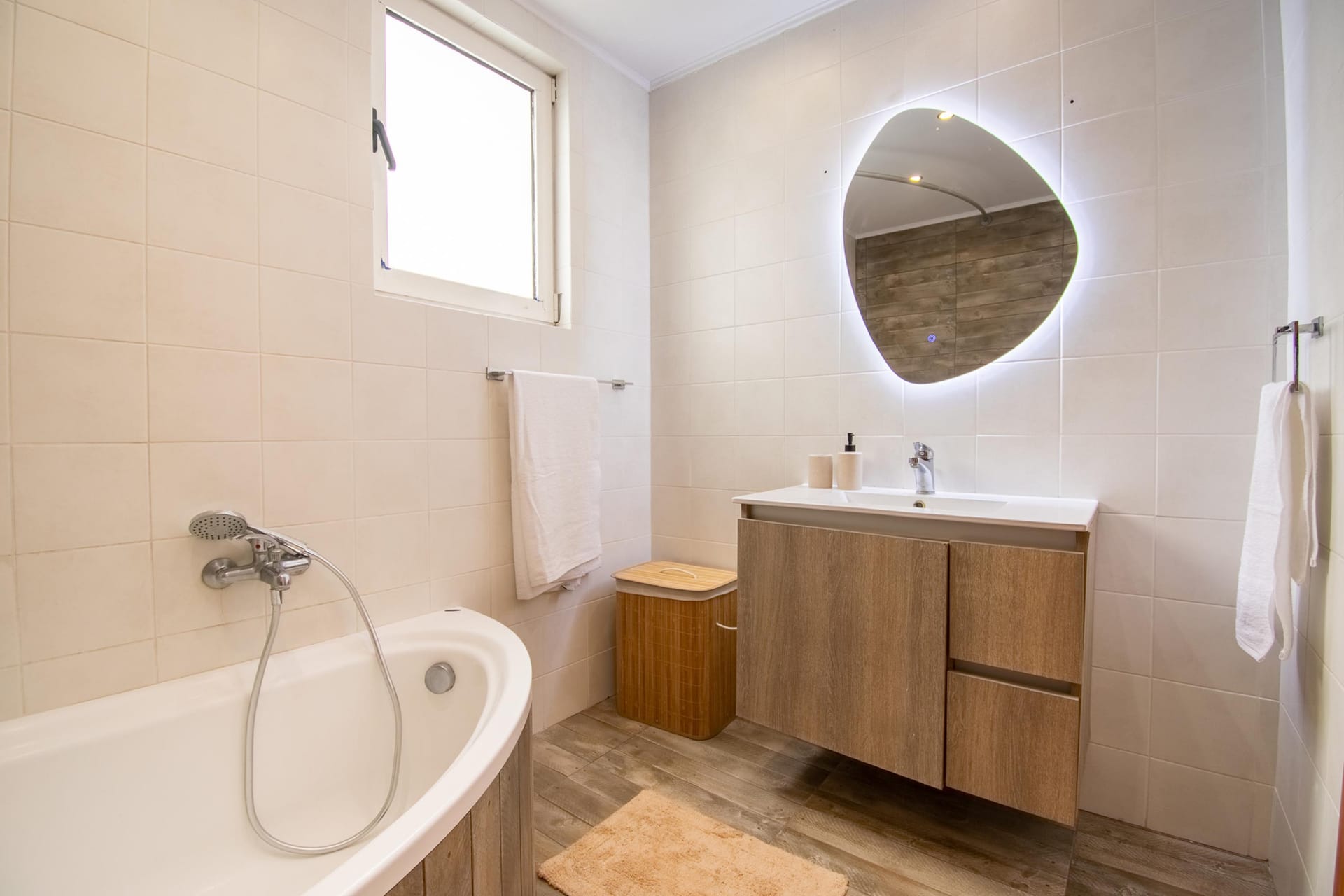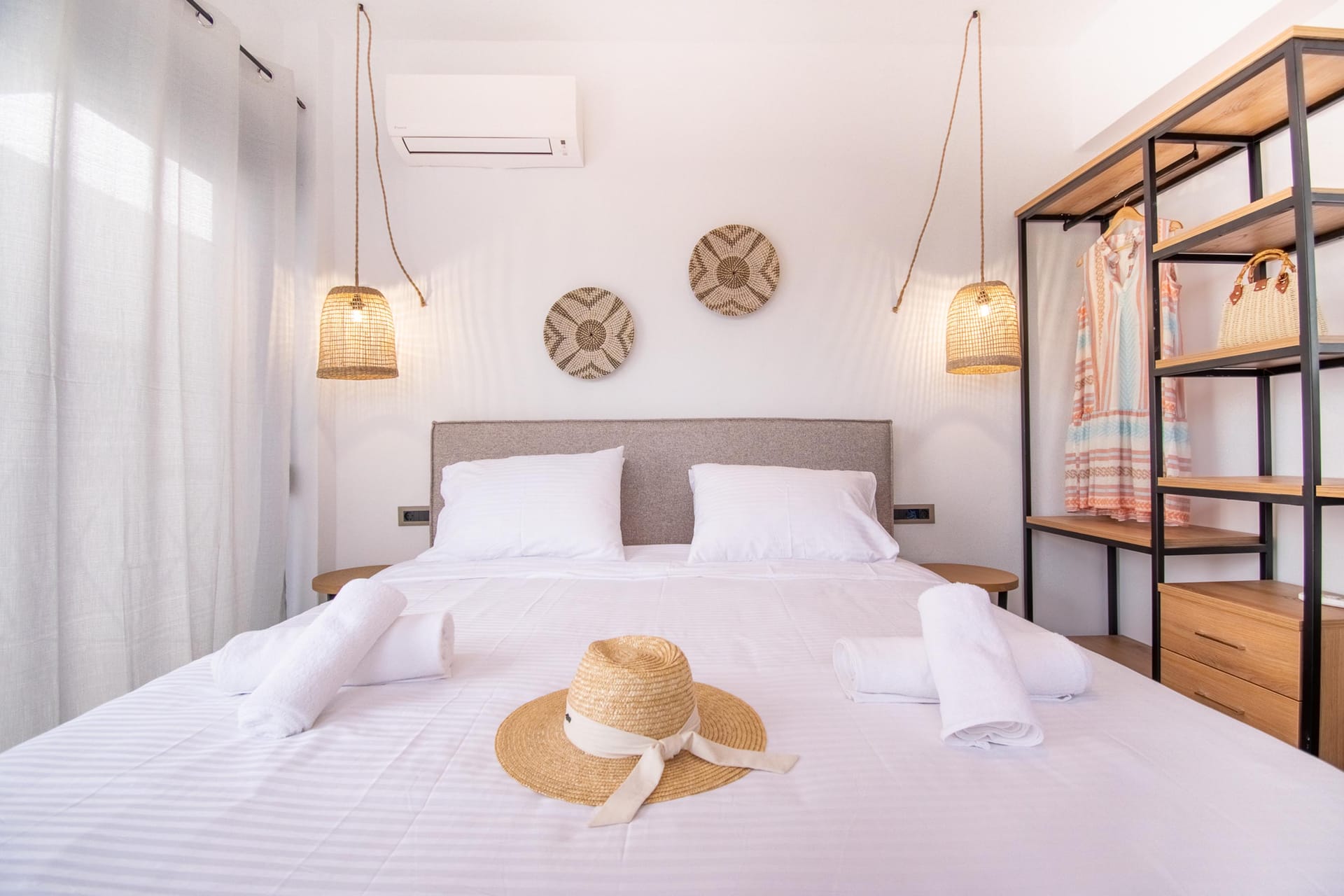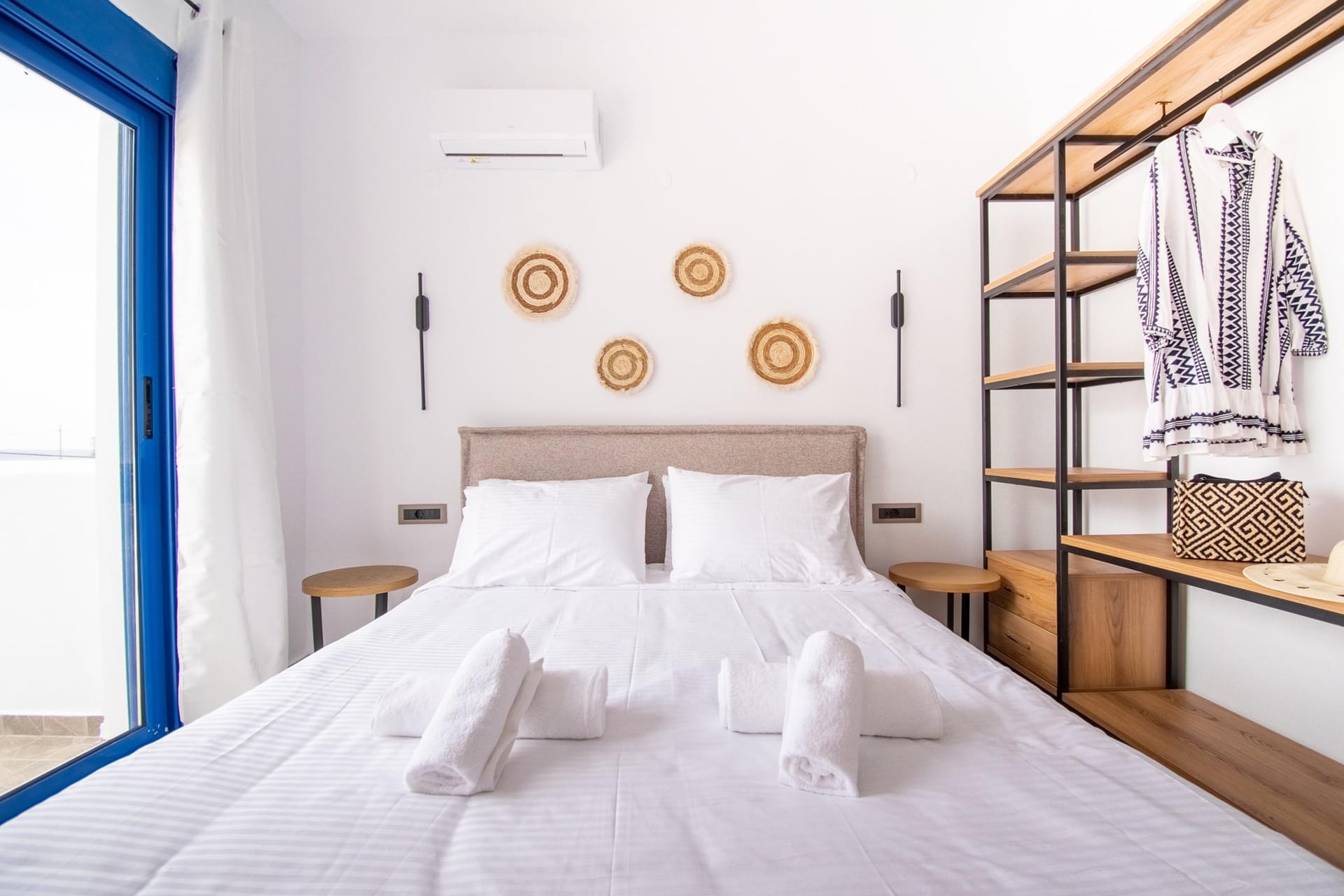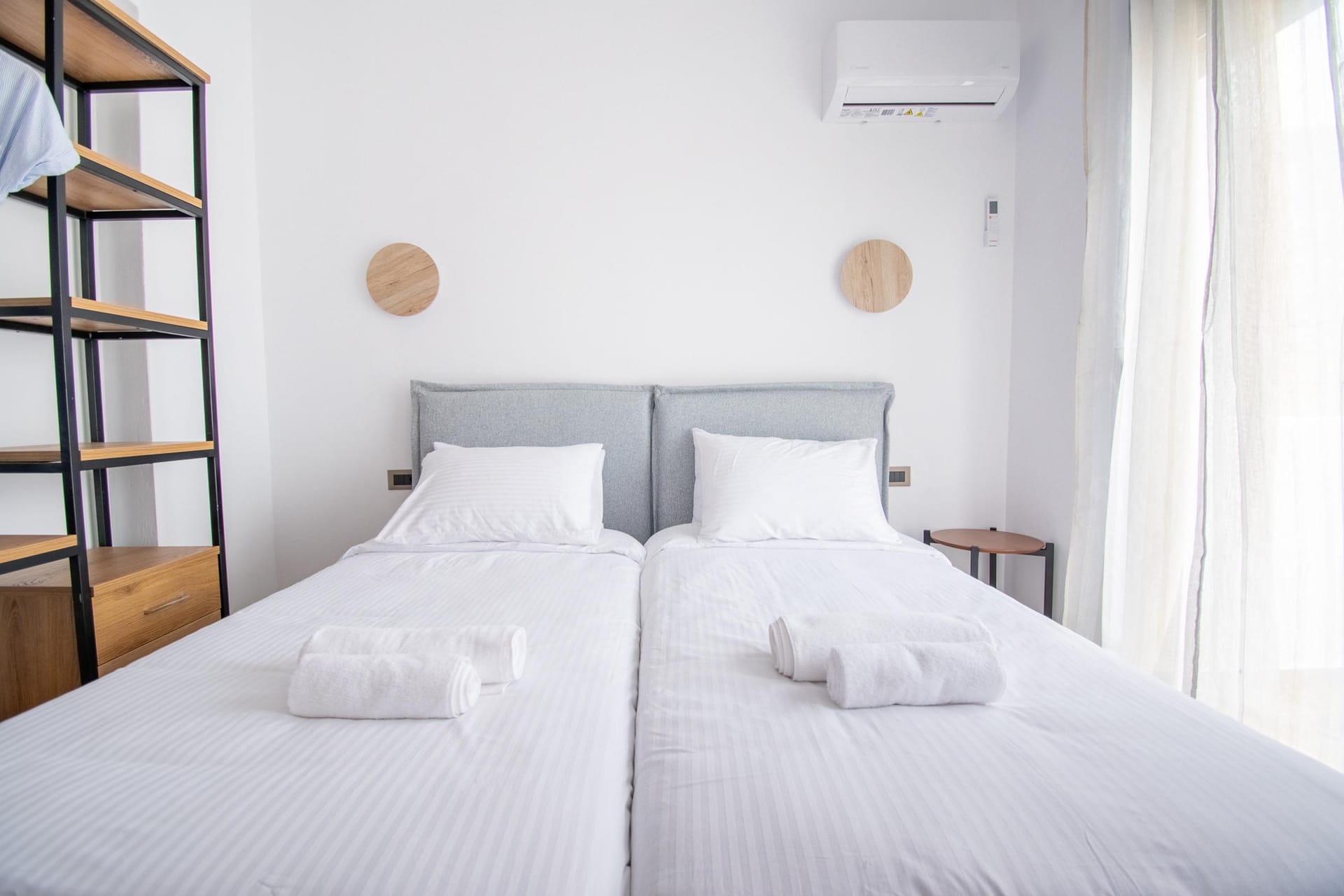 The villa has 3 lovely bedrooms. One bedroom has a double bed and a view of the road. The second bedroom also has a double bed, with a nice view of the hills. The third bedroom has two single beds, perfect for kids or friends. All rooms are bright and welcoming.