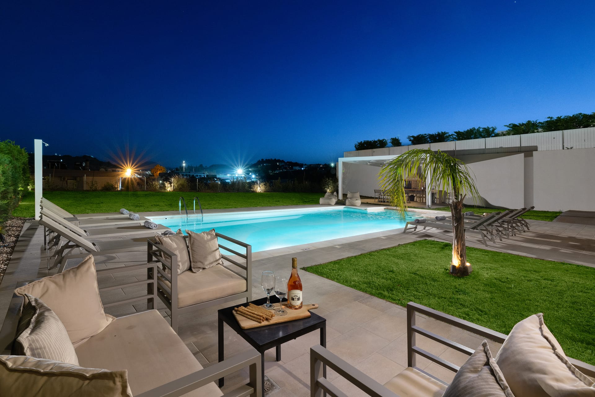 Outside, you’ll find a private garden and a lovely patio with outdoor furniture, where you can relax, eat, or enjoy the fresh air. The private pool and unheated jacuzzi make it easy to have fun or just unwind in the sun.