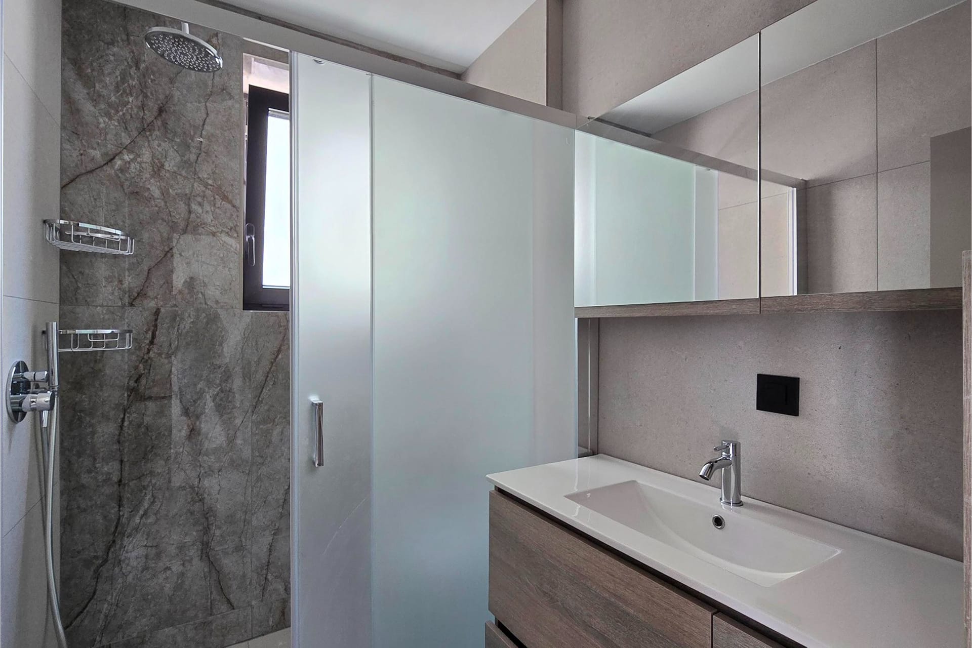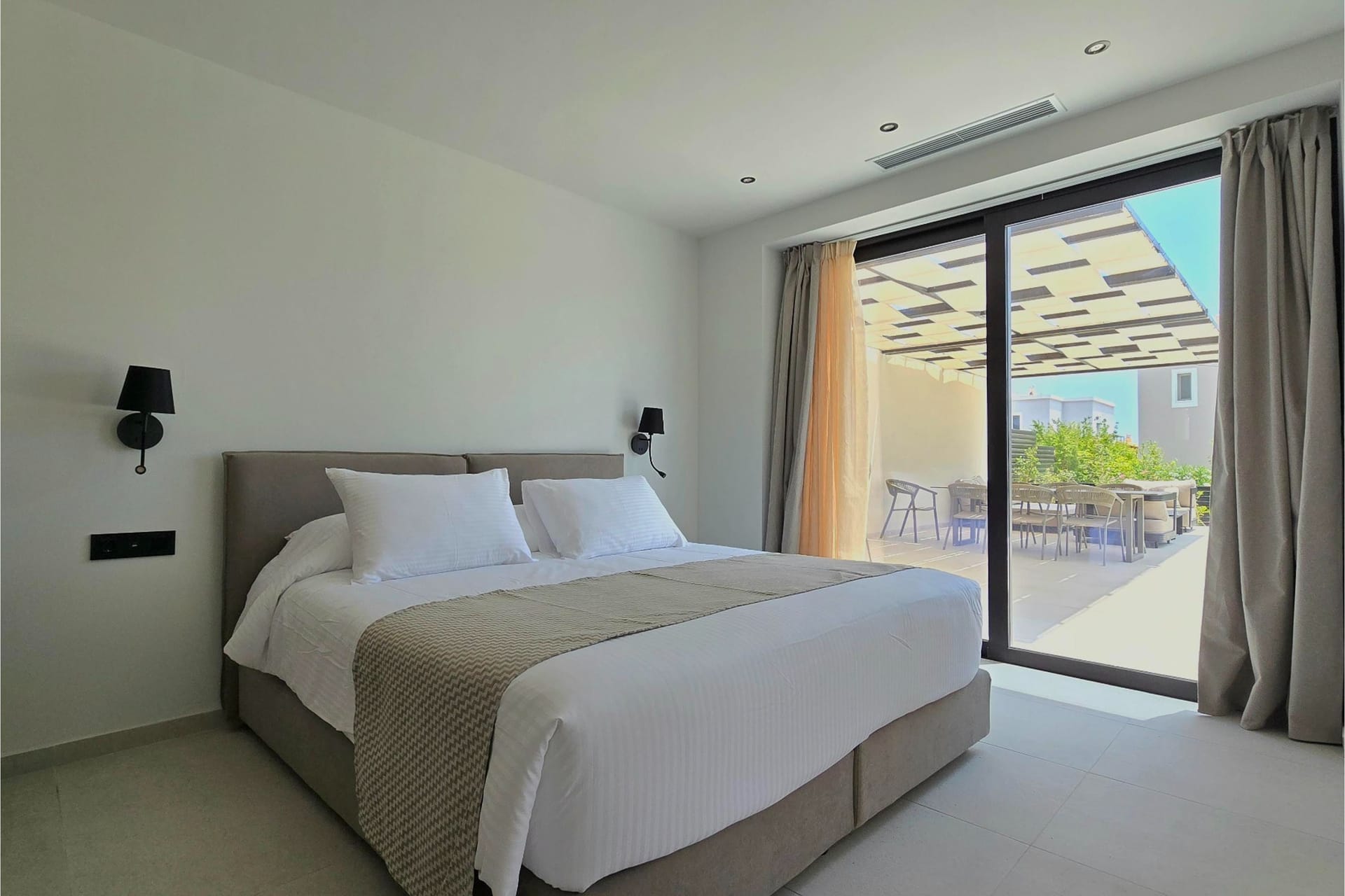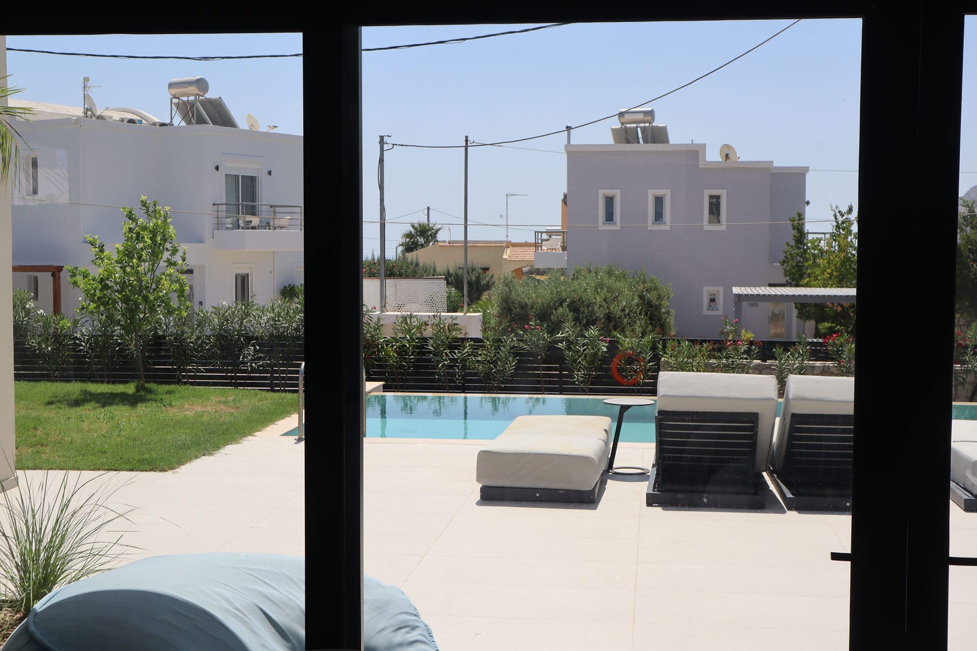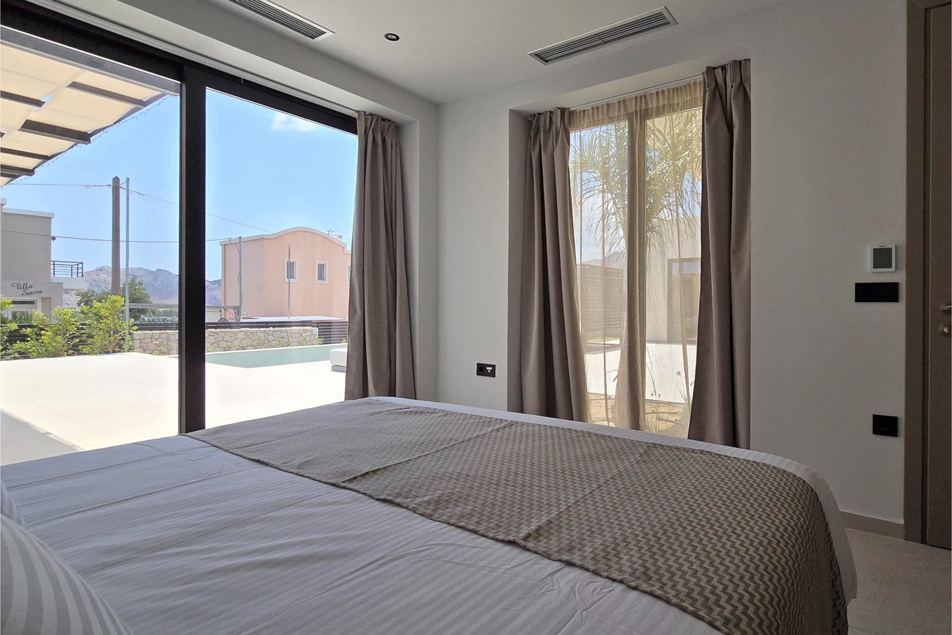 There’s a fully equipped kitchen in warm colors, suitable for any meal preparation accompanied by the seating area and the living room. There’s a smart TV and free WIFI access throughout the property. Outdoors, there’s a private swimming pool and jacuzzi with sunbeds and a seating area where you can relax under the rays of the Aegean sun. You can spend your time by your private swimming pool or enjoy a fresh meal prepared in the BBQ installation. Additionally, there is a shared outdoor gym, so you can stay fit throughout your holidays in Rhodes. For your entertainment, you will find a sharing ping pong table, mini golf, and pool table.