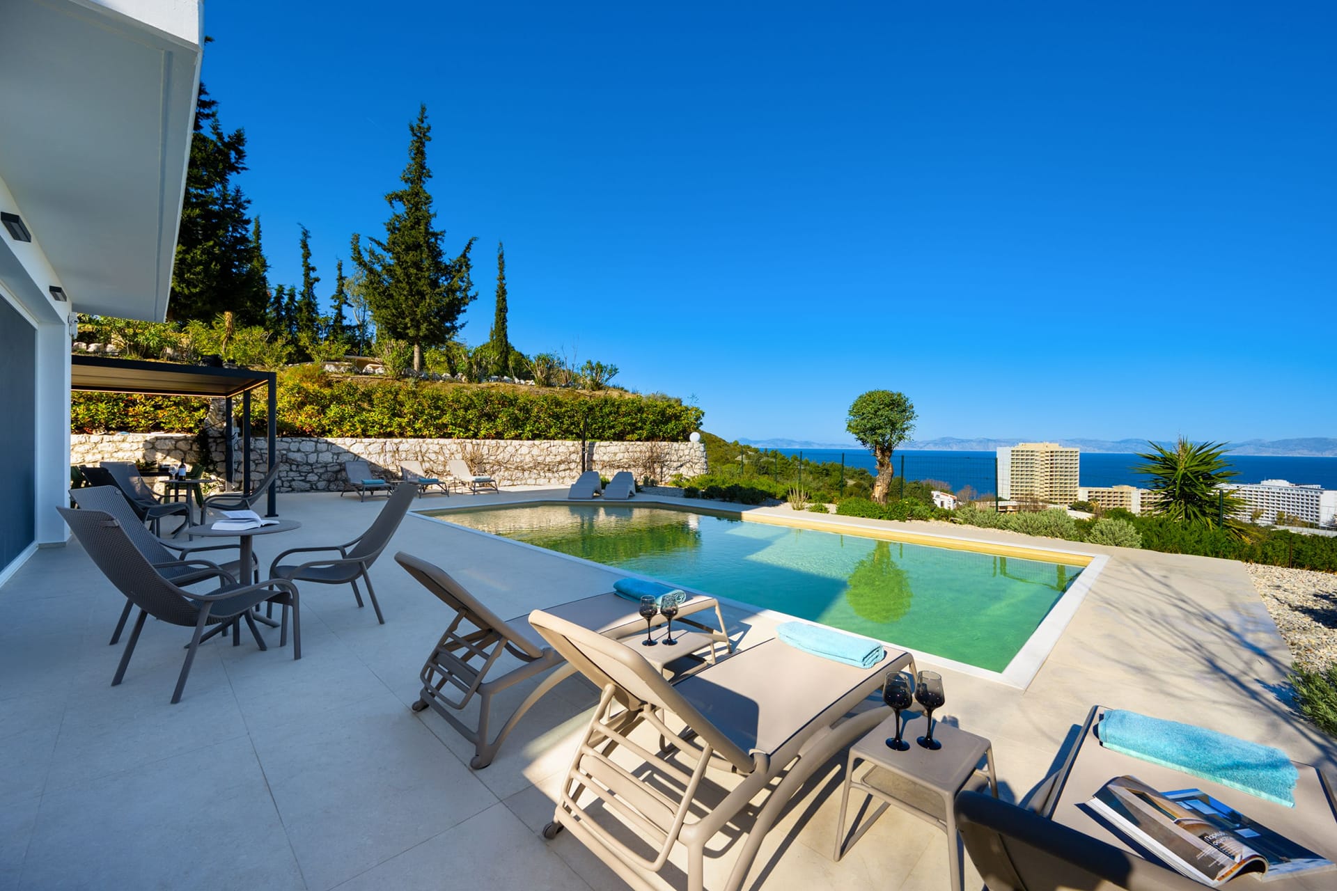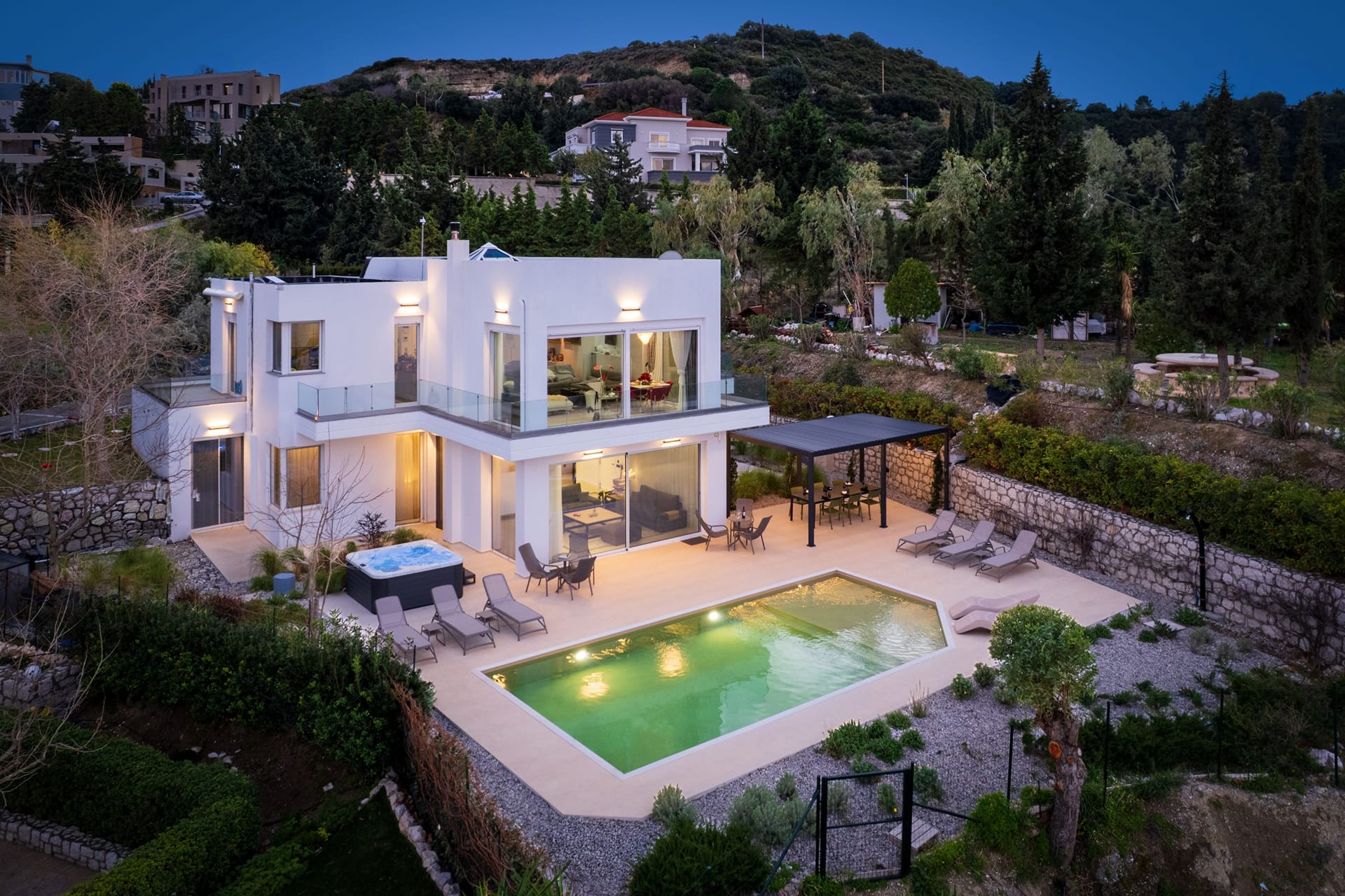 Vista by Del Sol Villa is a comfortable and modern home located in the peaceful Mydia area, close to Rhodes Town. Hosting up to six guests, the villa offers everything needed for a relaxing holiday. Indoors, guests will enjoy bright, welcoming rooms, while outside they can take advantage of a private pool, jacuzzi, and beautiful sea views. It’s the perfect hideaway for families or friends seeking privacy, comfort, and a convenient base for exploring Rhodes.