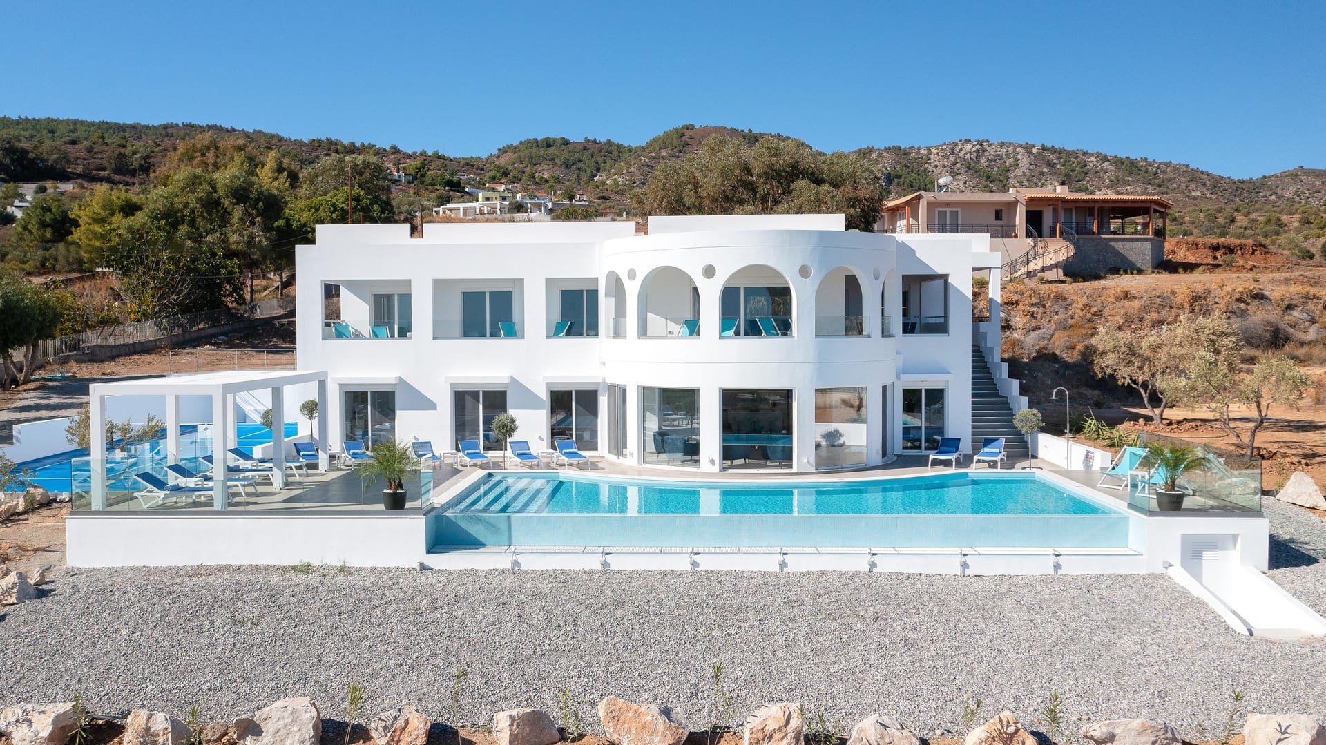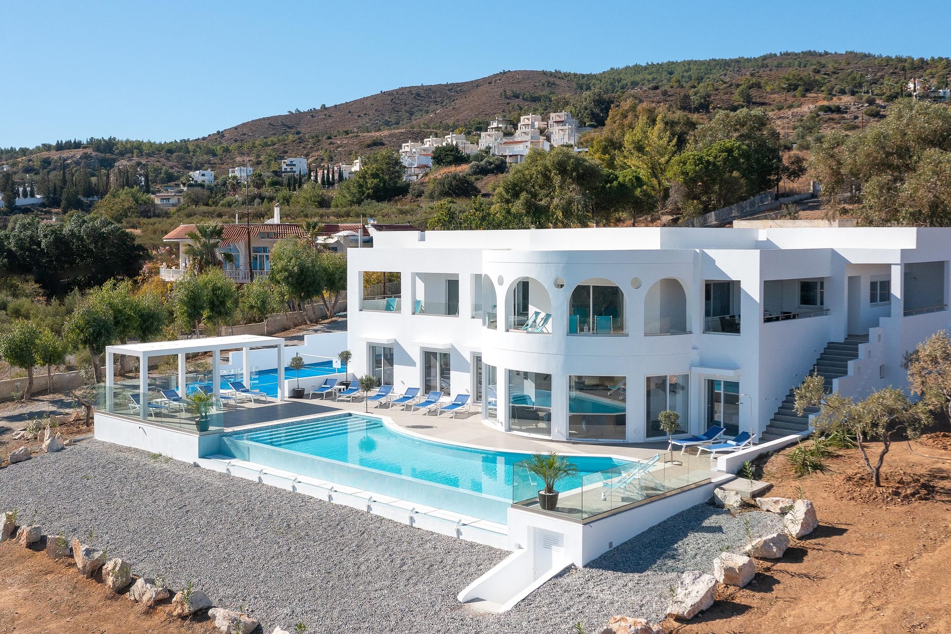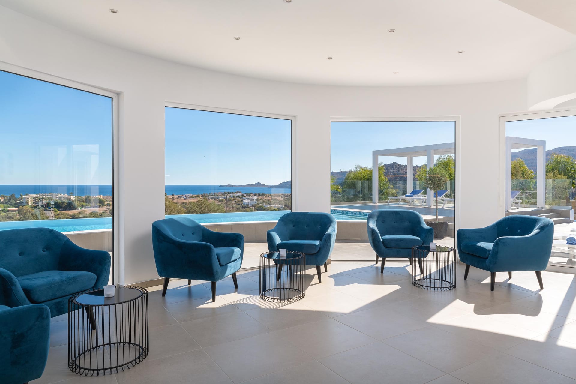 Outside, Villa Zoe Blu features a private infinity, heated pool and a spacious terrace, where guests can bask in the sun and take in the magnificent vista. This prime location offers easy access to the vibrant nightlife, charming shops, and exquisite restaurants of Lindos. Whether guests are seeking a peaceful escape or a vibrant holiday experience, Villa Zoe Blu offers the perfect blend of comfort, style, and convenience.