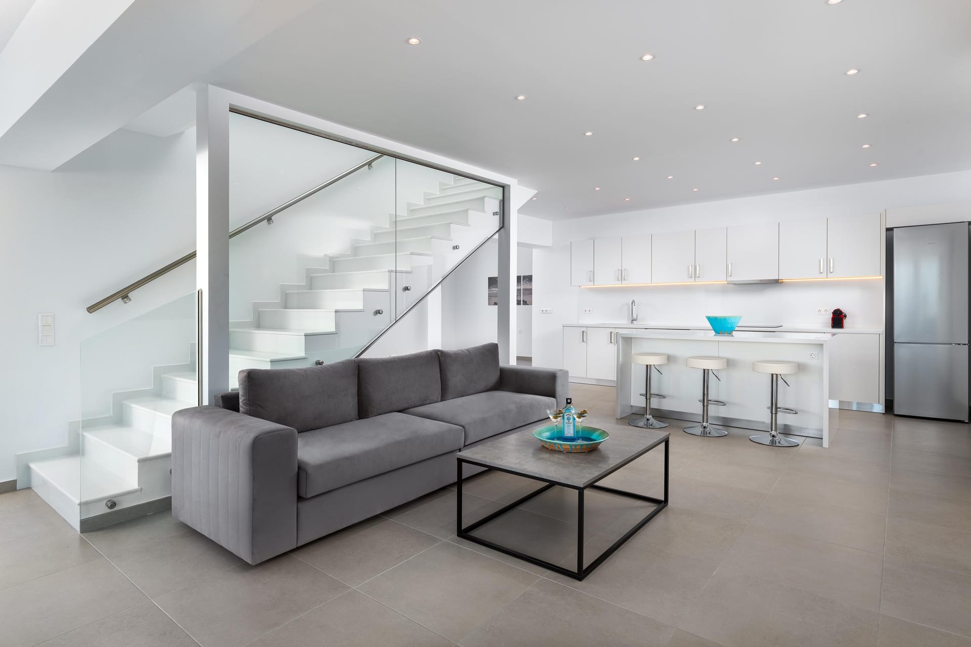 The expansive living areas provide ample space for socializing, entertaining, and relaxing. The two full kitchens, featuring modern Bosch appliances, allow for meal preparation, catering to large gatherings, and accommodating diverse culinary needs and beverage service.