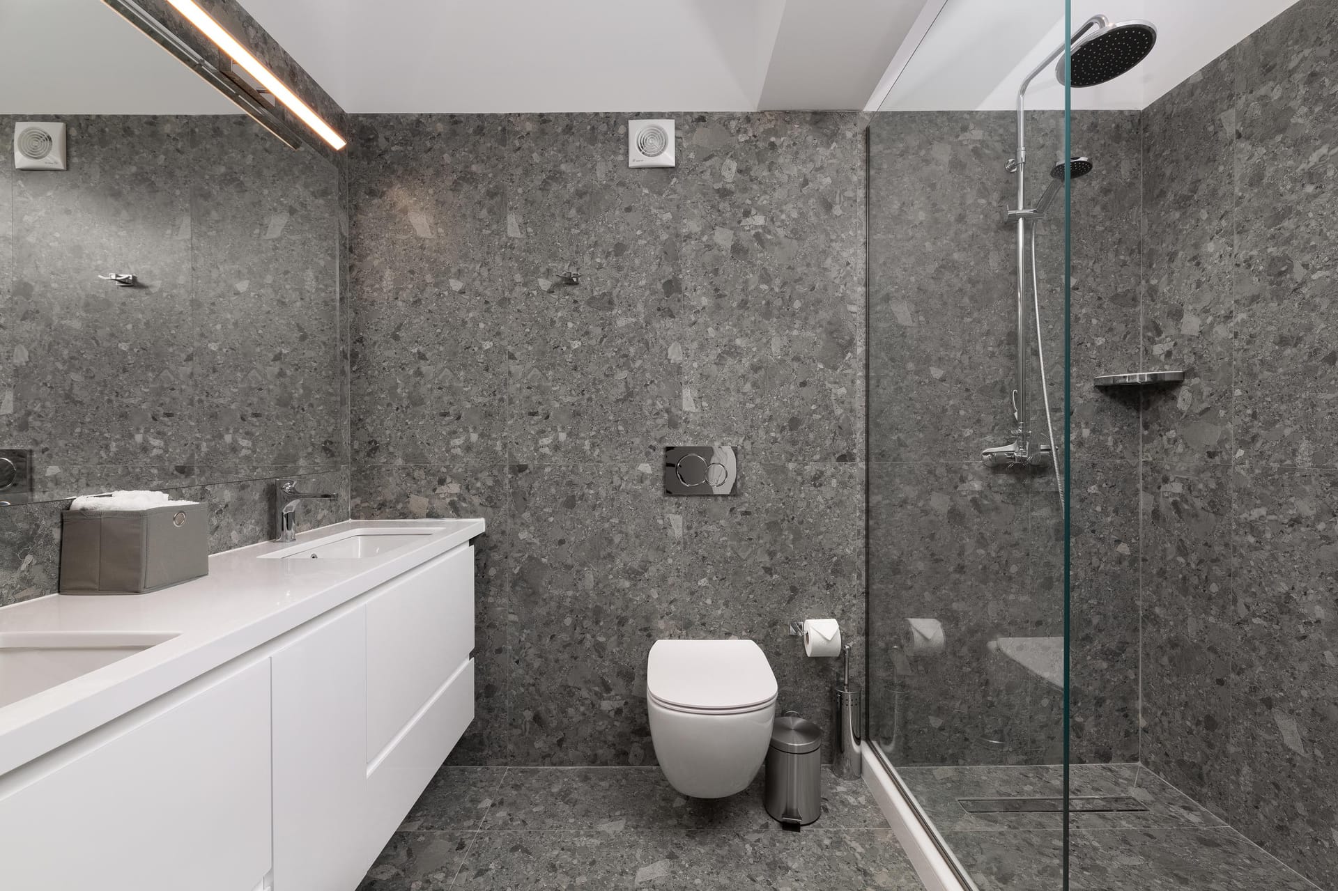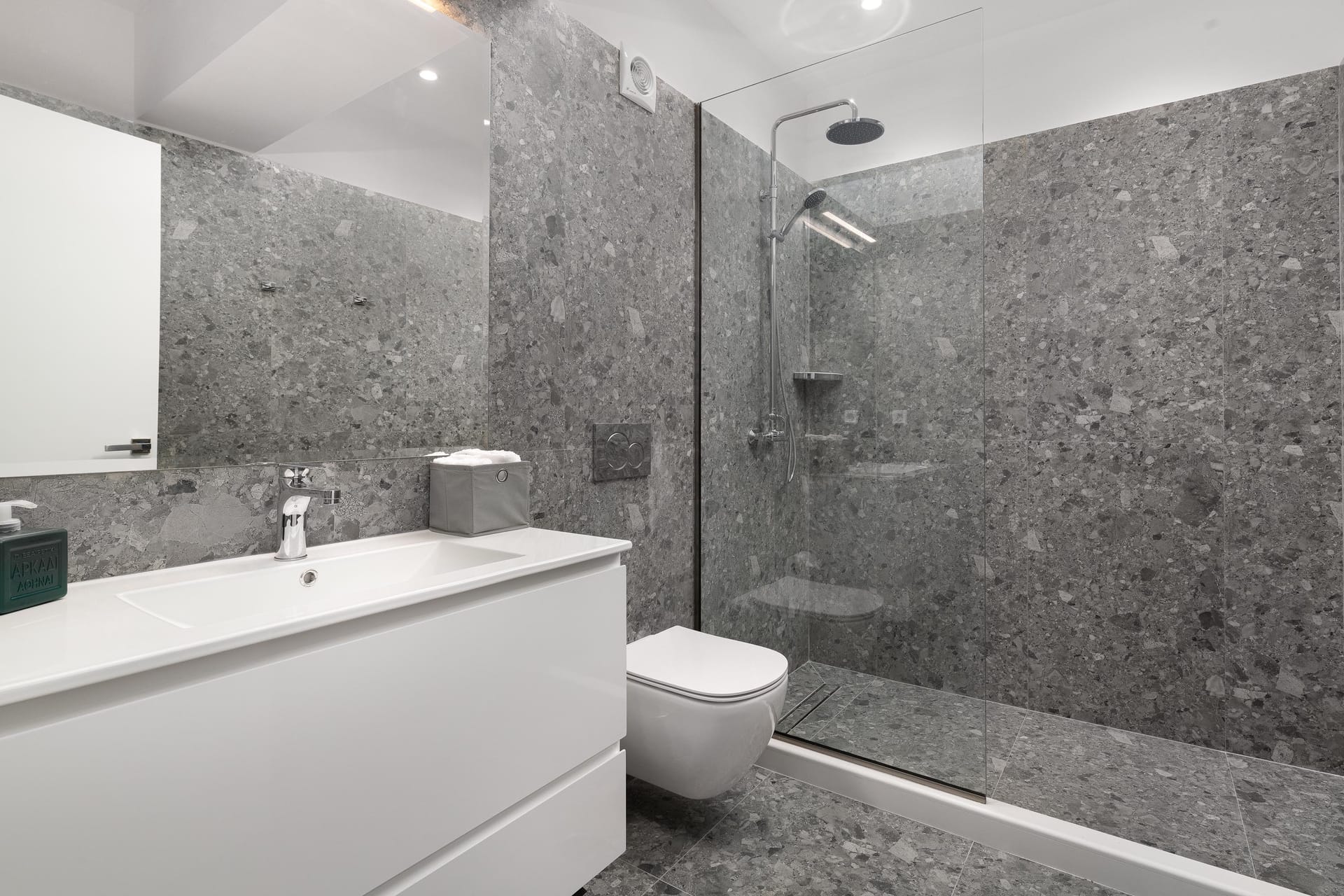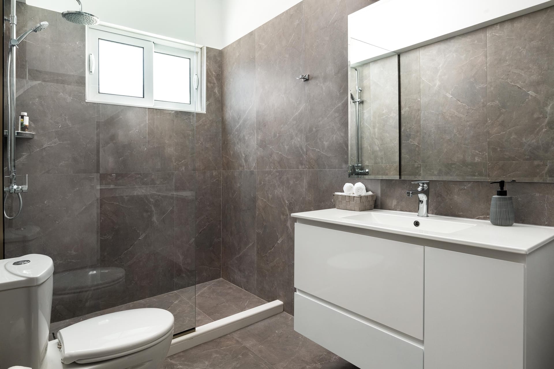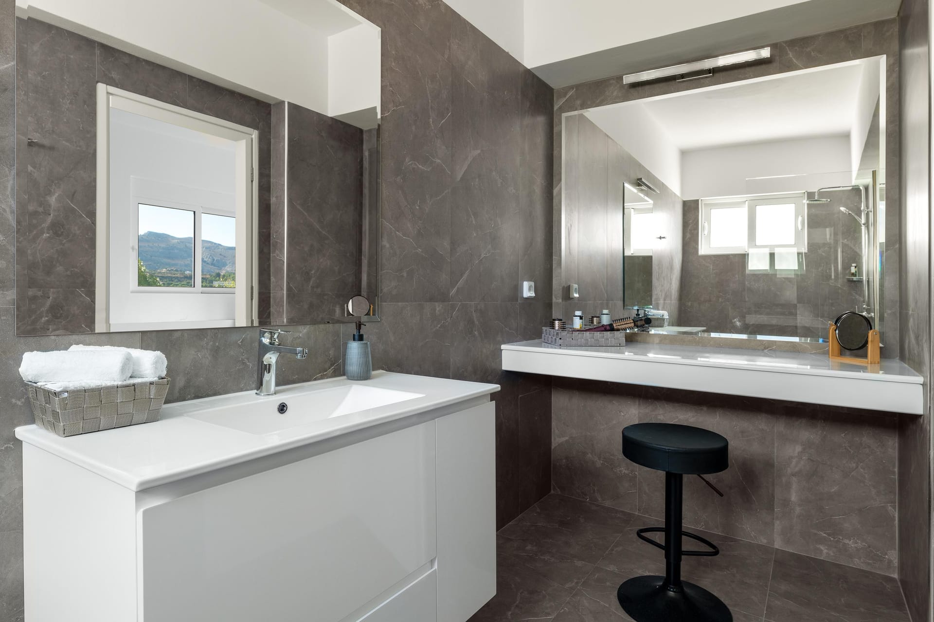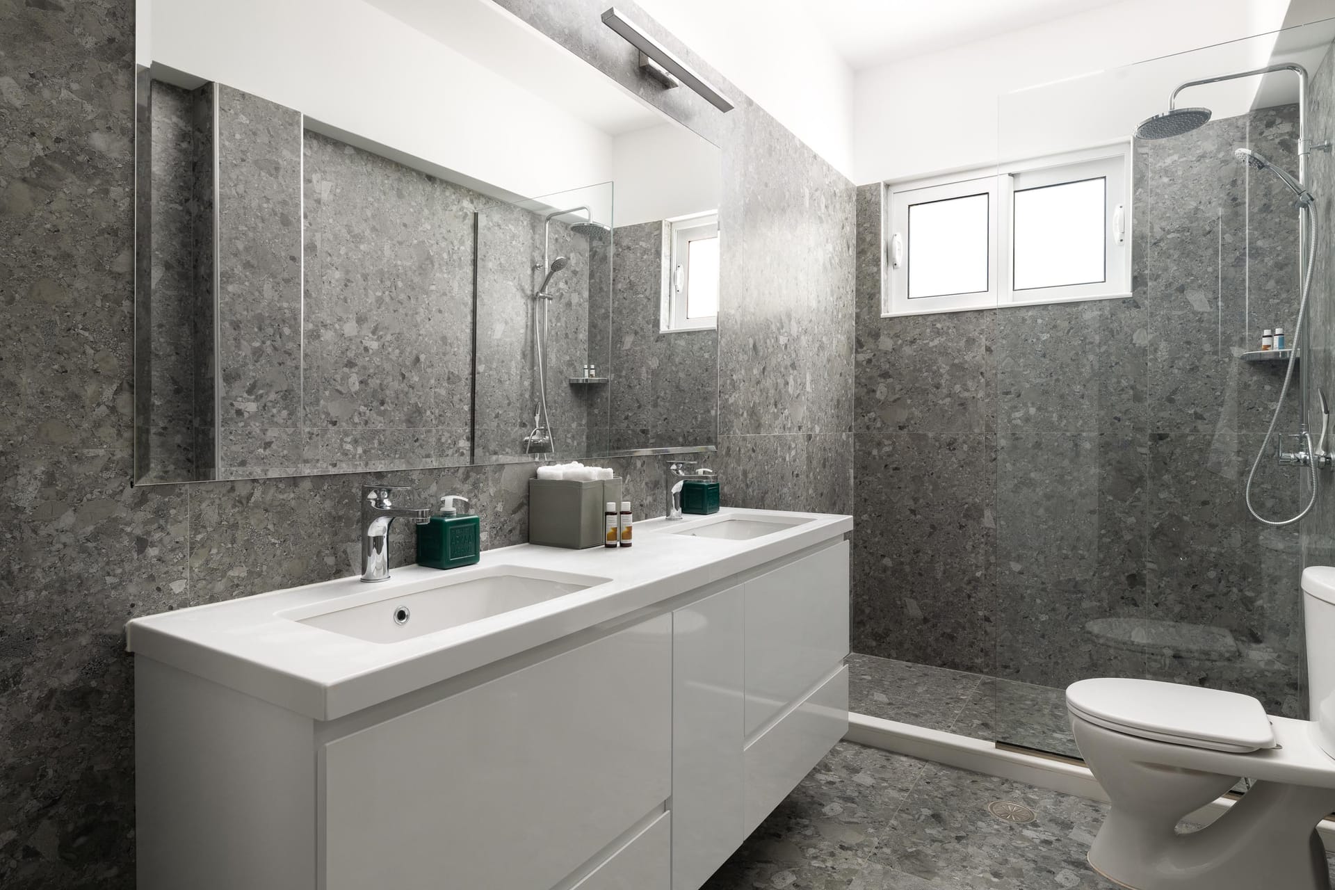 Villa Zoe Blu offers spacious living with luxurious comforts, making it feel like home. The villa has 9 bedrooms in total: 4 on the upper floor and 5 on the pool level. On the upper floor, there are 4 bedrooms with king-size beds, two of which have ensuite bathrooms. The pool level has two king-size bedrooms and three rooms with two single beds in each, all with ensuite bathrooms. In total, there are 7 bathrooms, all equipped with showers—5 of which are attached to the bedrooms.