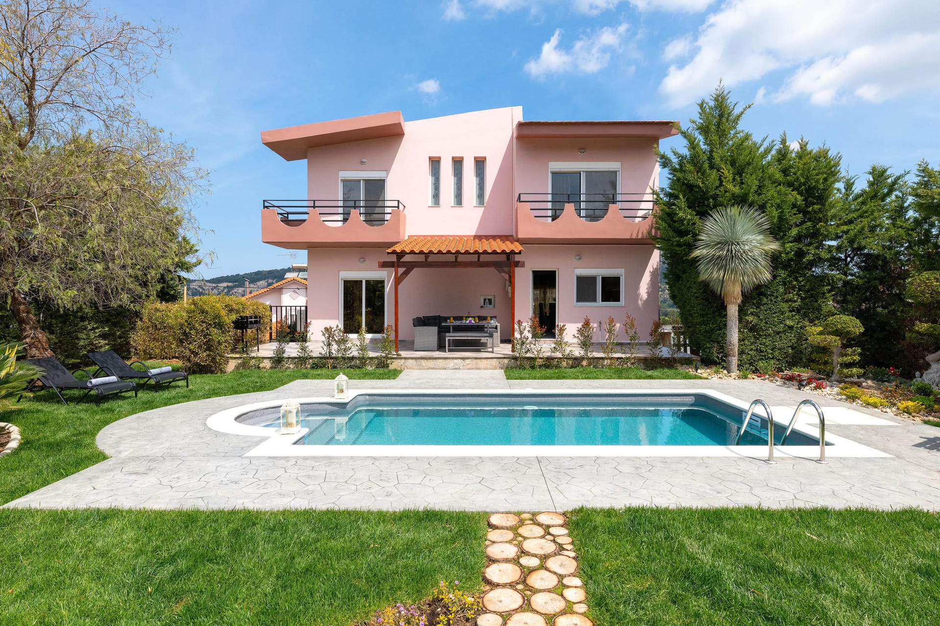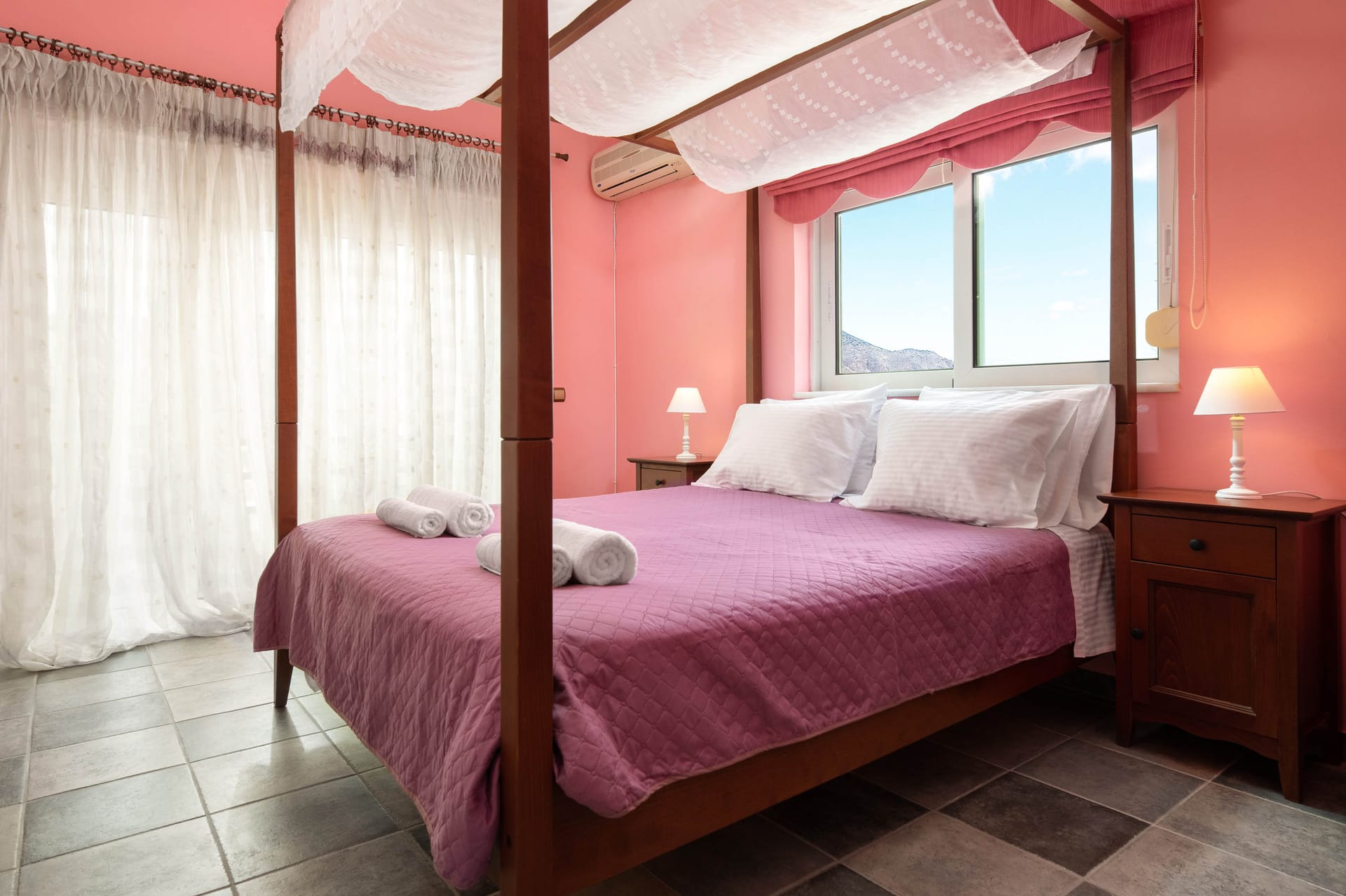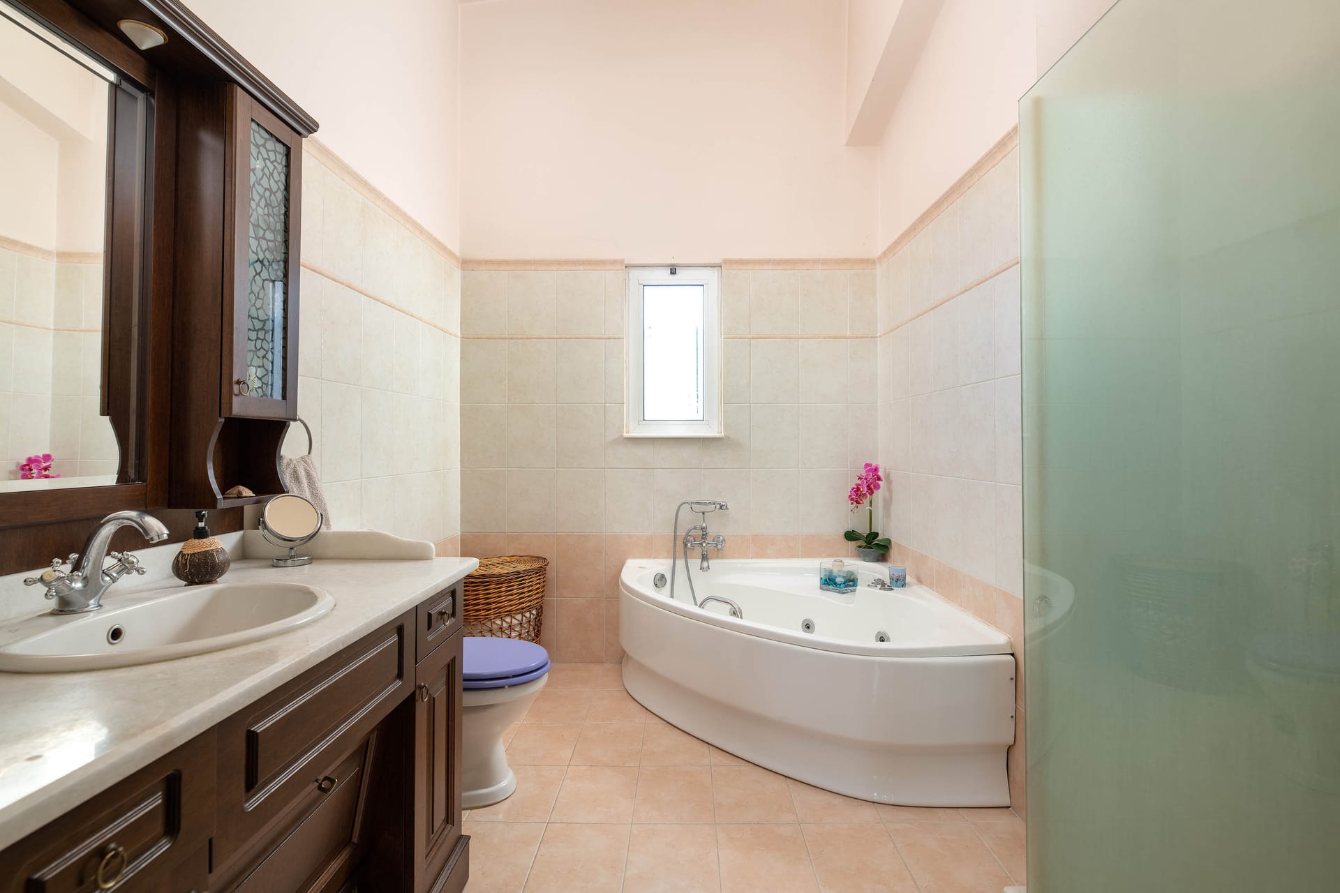 Villa Zenia has an incredible interior design with colorful details. It offers 3 fully air-conditioned bedrooms with double beds and balconies. Also, it has 2 bathrooms, one with a shower and another with a bathtub featuring Jacuzzi amenities for your ultimate relaxation.