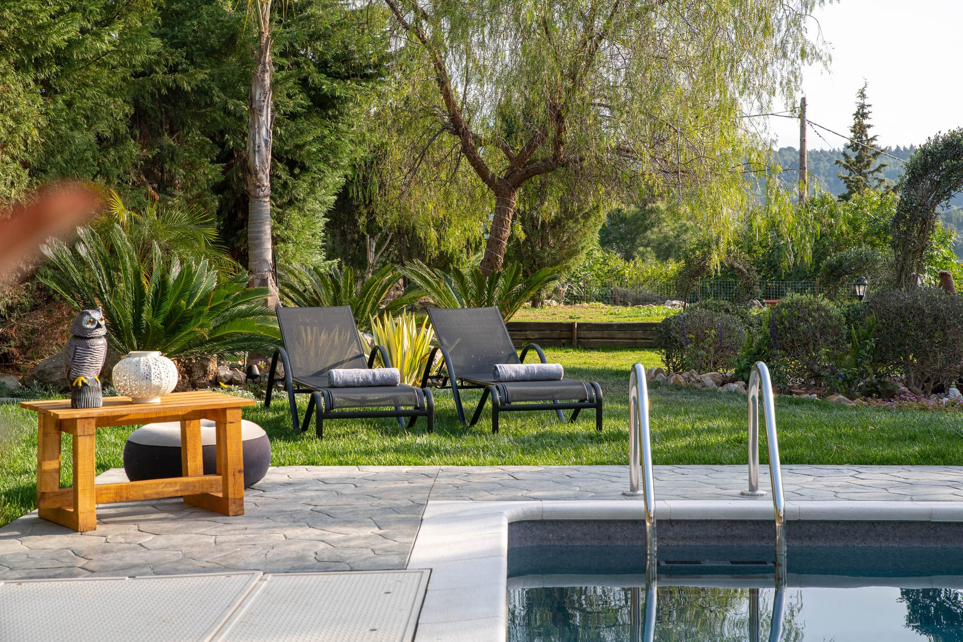 Outdoors, there’s a private swimming pool surrounded by sunbeds and an exotic atmosphere that will give you a carefree feeling. There’s a picturesque garden with a pond. You can always prepare a meal at the BBQ facilities and enjoy a gathering with your loved ones, especially recommended in the evening hours.