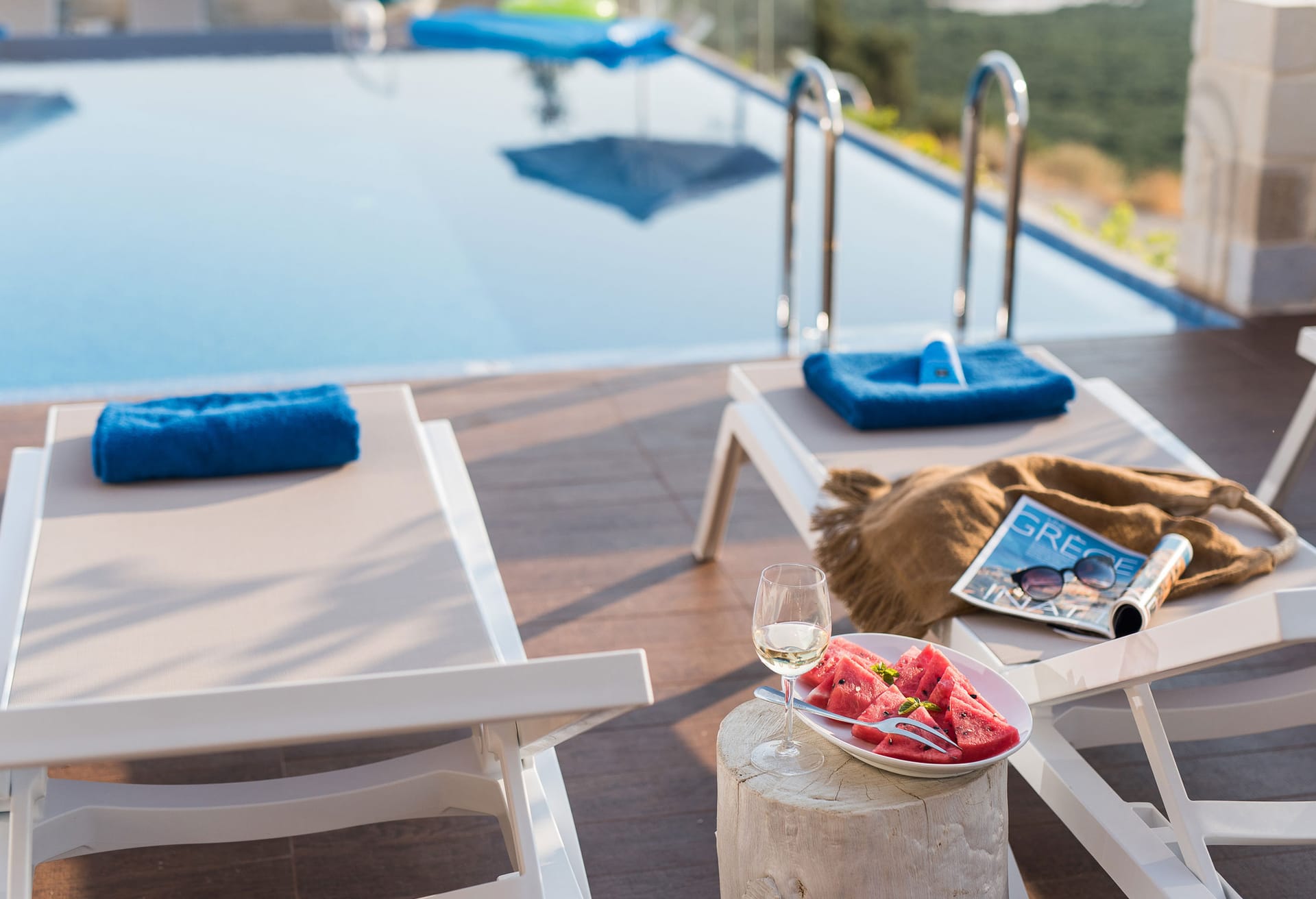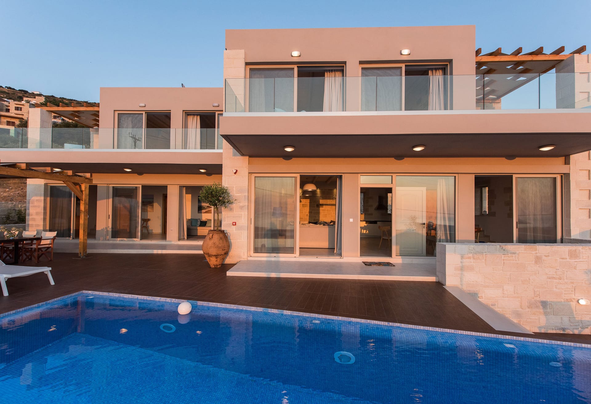 Set within it’s own feature stone walled grounds, Pessadiana Retreat comprises a large open plan living & dining area, complete with fully fitted Italian designed modern kitchen, all very tastefully finished in calming neutral tones and bathed in natural light throughout. The main area, features large sliding patio doors leading directly out to the pool & patio areas. There are 2 spacious double bedrooms, complete with ample wardrobe space and the master comes complete with luxurious en-suite facilities and direct access to the pool patios. The 2nd double bedroom features patio doors leading to the outside areas. There is a 2nd luxurious bathroom, complete with shower, WC and designer hand basin. Pessadiana Retreat is also fully air conditioned throughout.