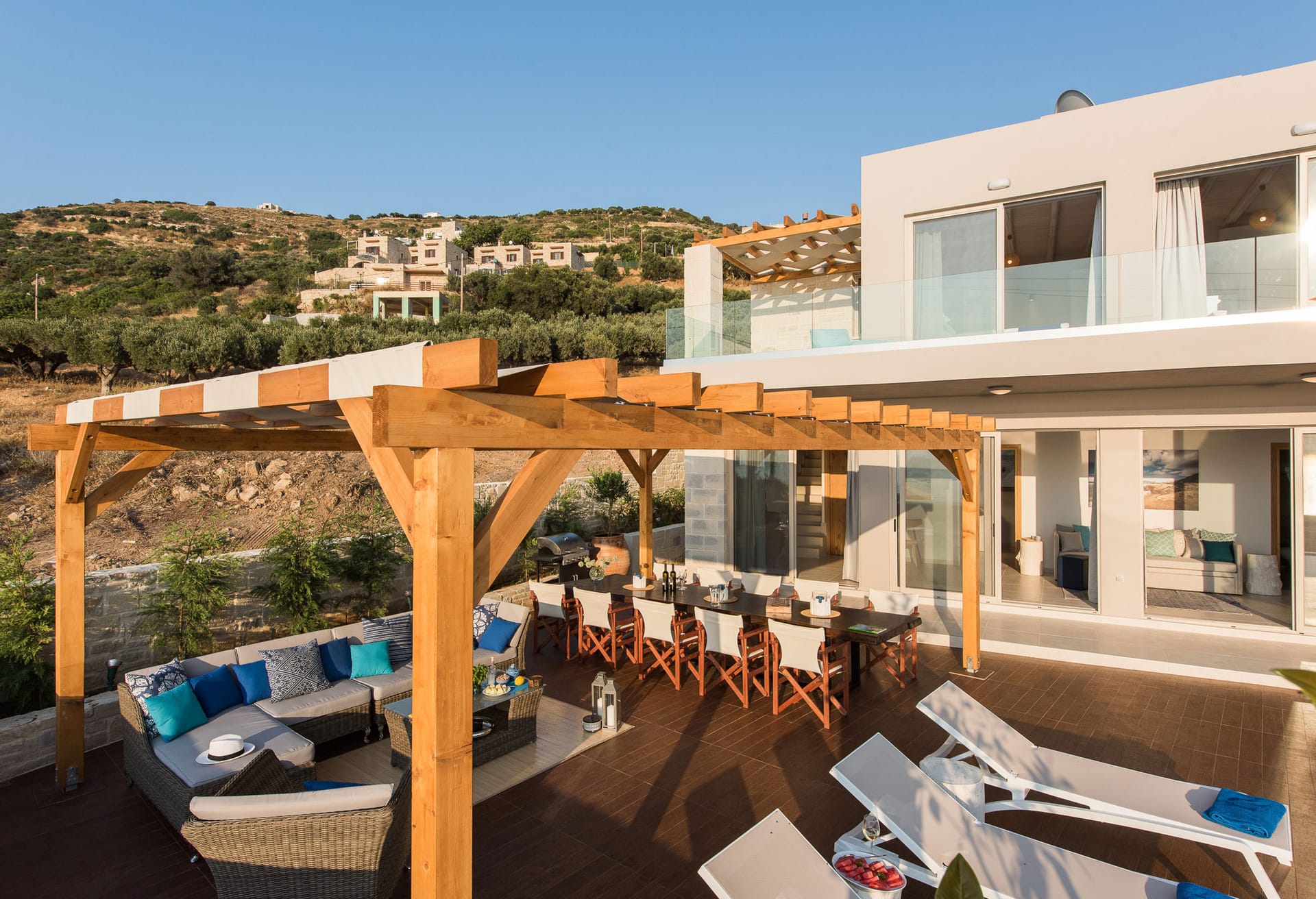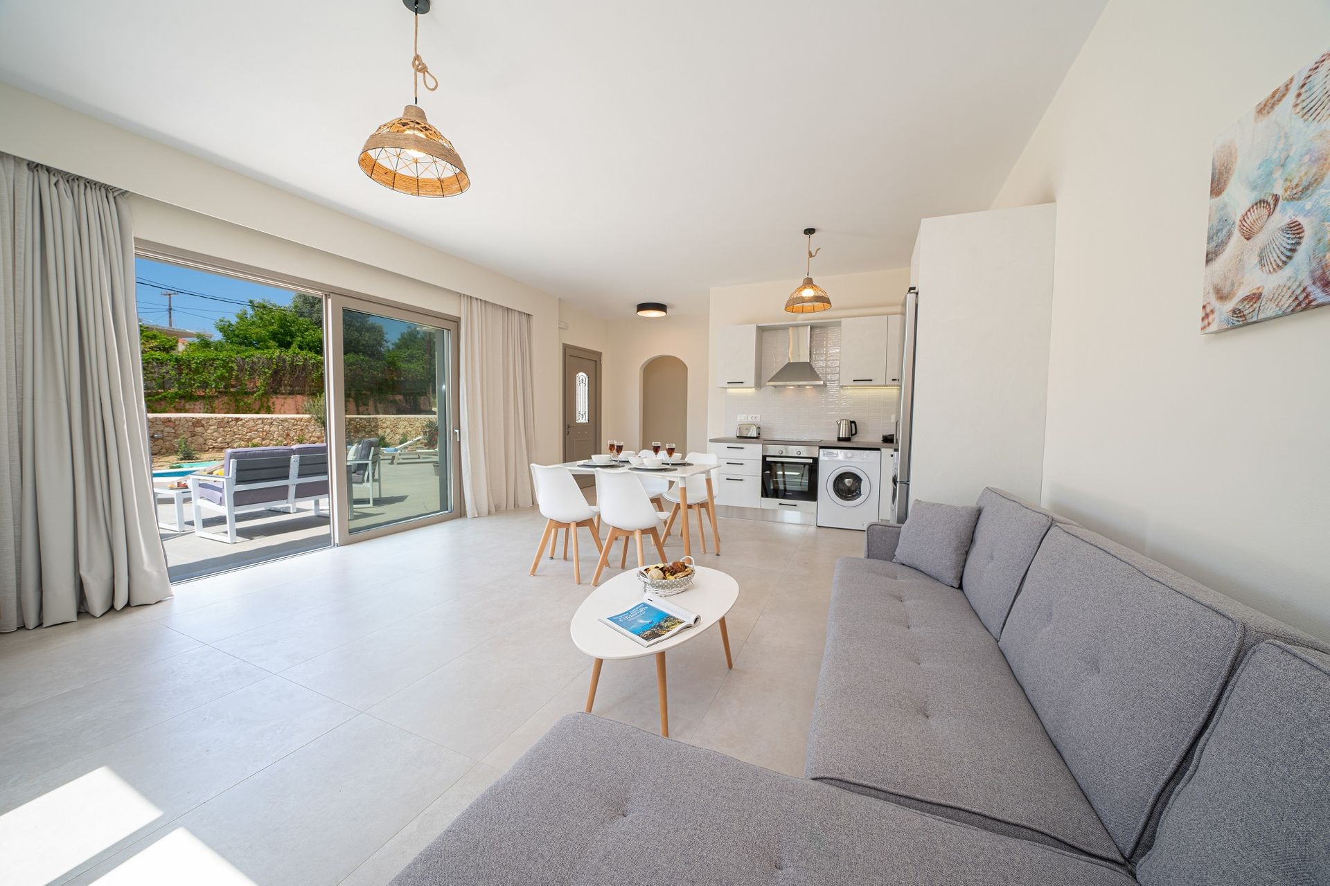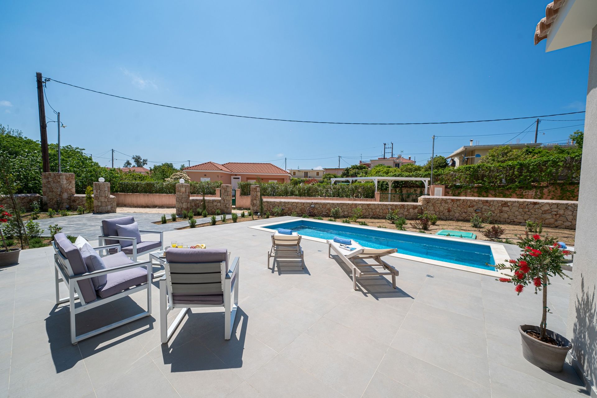 This very peaceful and idyllic holiday retreat is built to the very highest of standards & finishes throughout, in a modernistic fashion, whilst still managing to keep aspects of traditional styling, allowing the perfect blend of new & traditional Kefalonian architecture.
