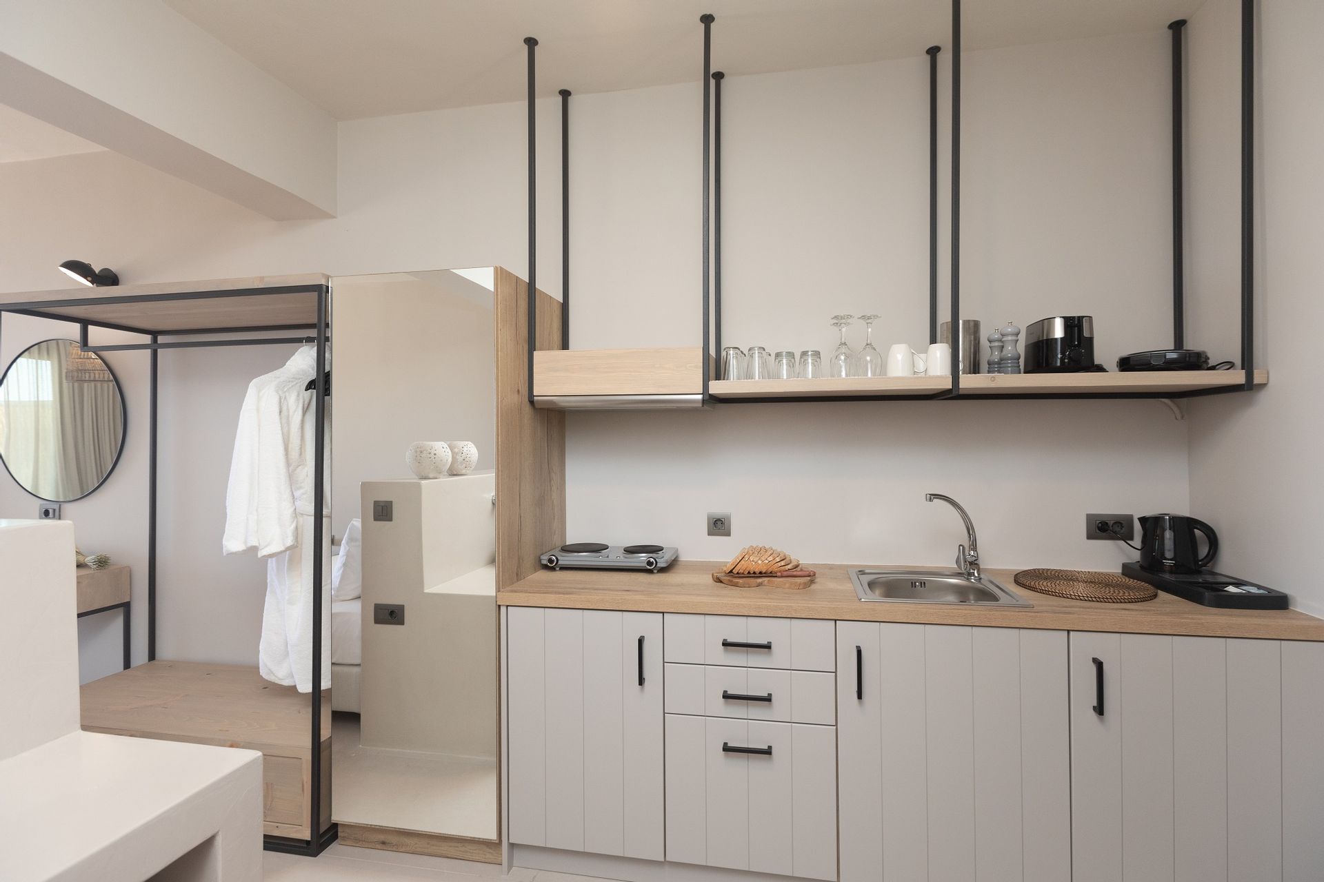 All 4 suites and the 2 bedroom house are impeccably finished in a modern style which perfectly compliments the external space which awaits you, bringing the incredible outside space directly into the suites via large glass French doors, flooding the interior with light and giving our guests the feeling of space and as you spend every waking minute outside in the open air, taking in this breathtaking location and listening to the sound of nature all around.