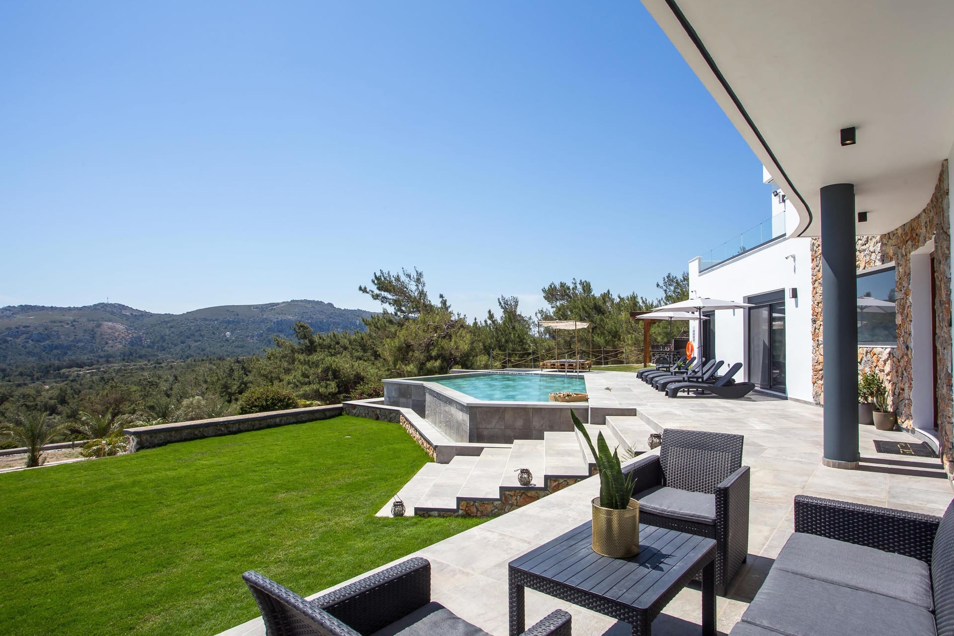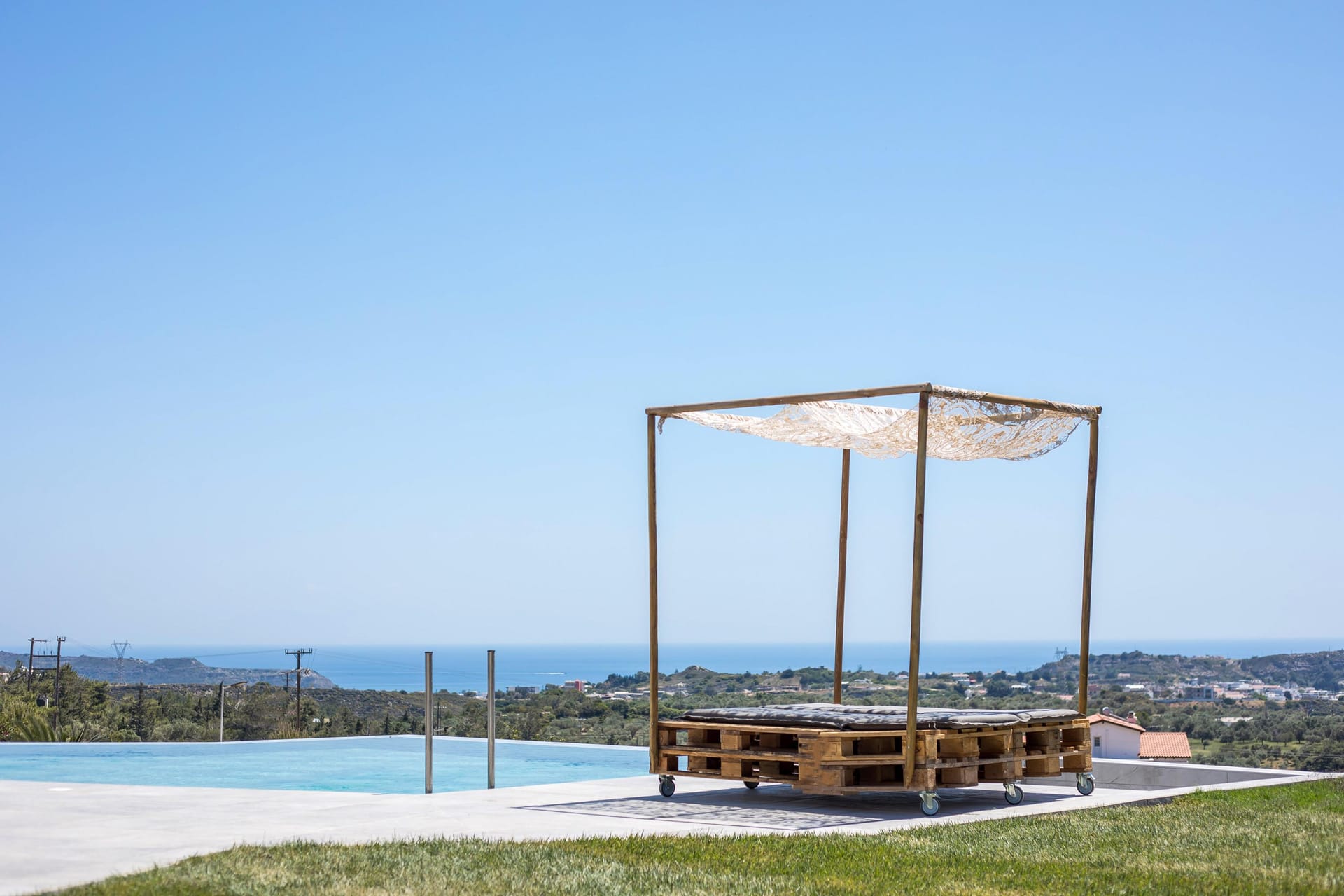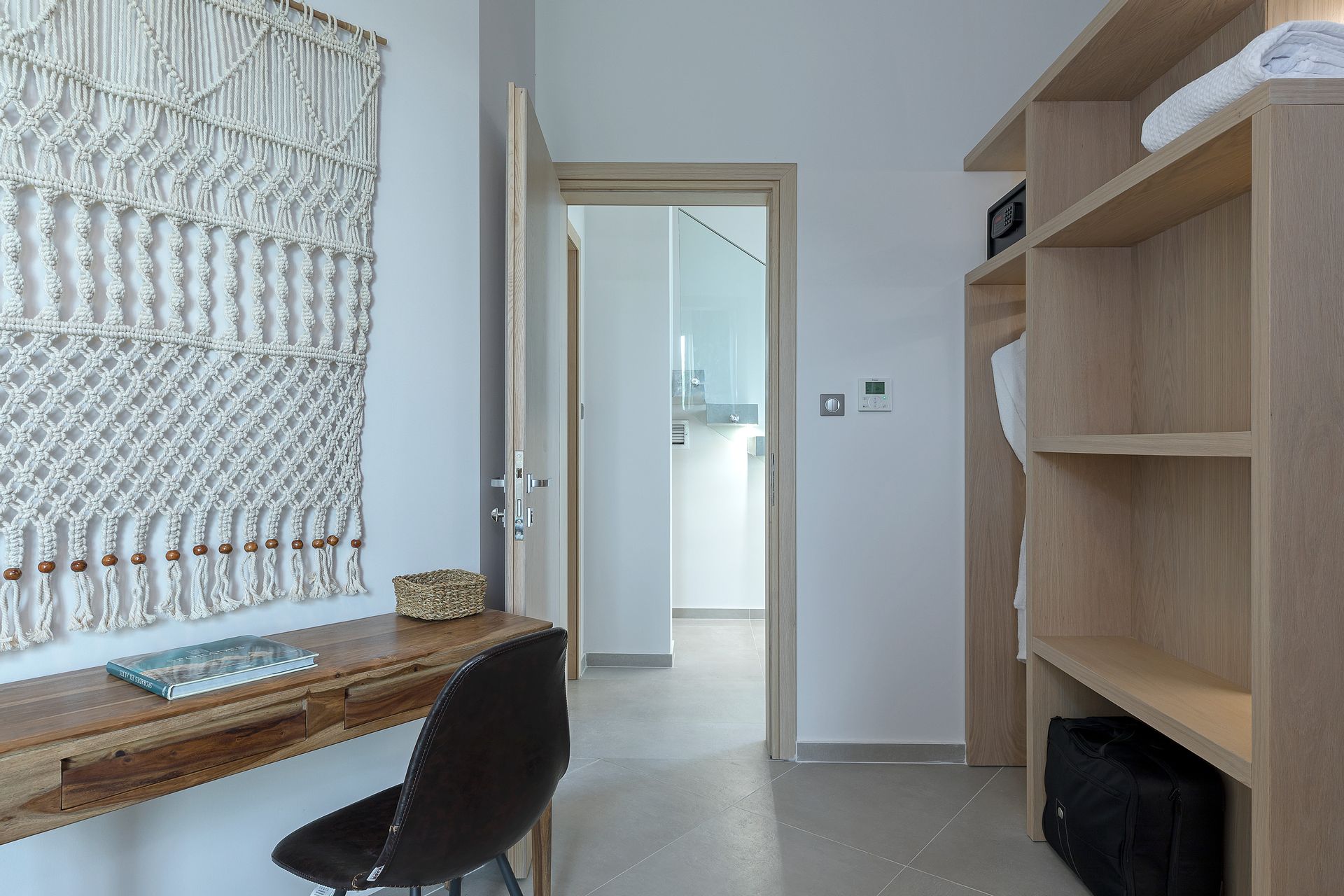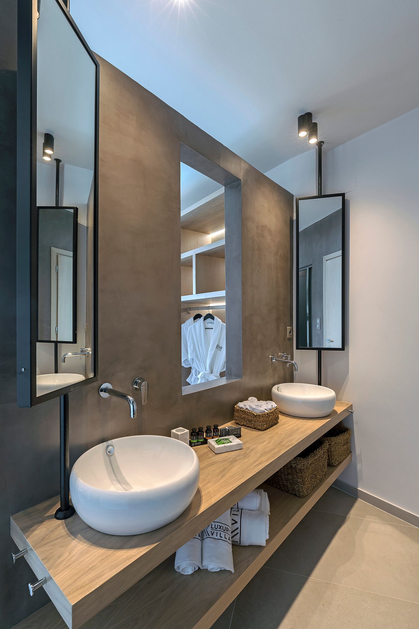 This open plan Suite is sophisticatedly decorated and it also features an open-air dining area, creating a unique setting to relax and soak the captivating views, while enjoying your breakfast or dinner. The in-door seating area is fitted with a satellite TV and a DVD player. Its bathroom and bathtub come with Korres toiletries, bathrobes and slippers.