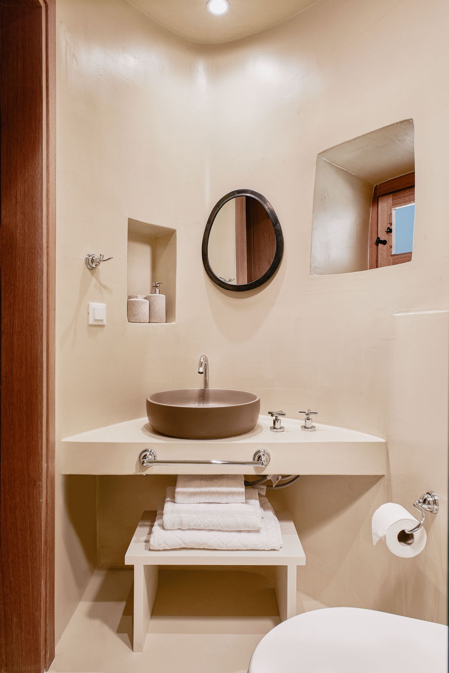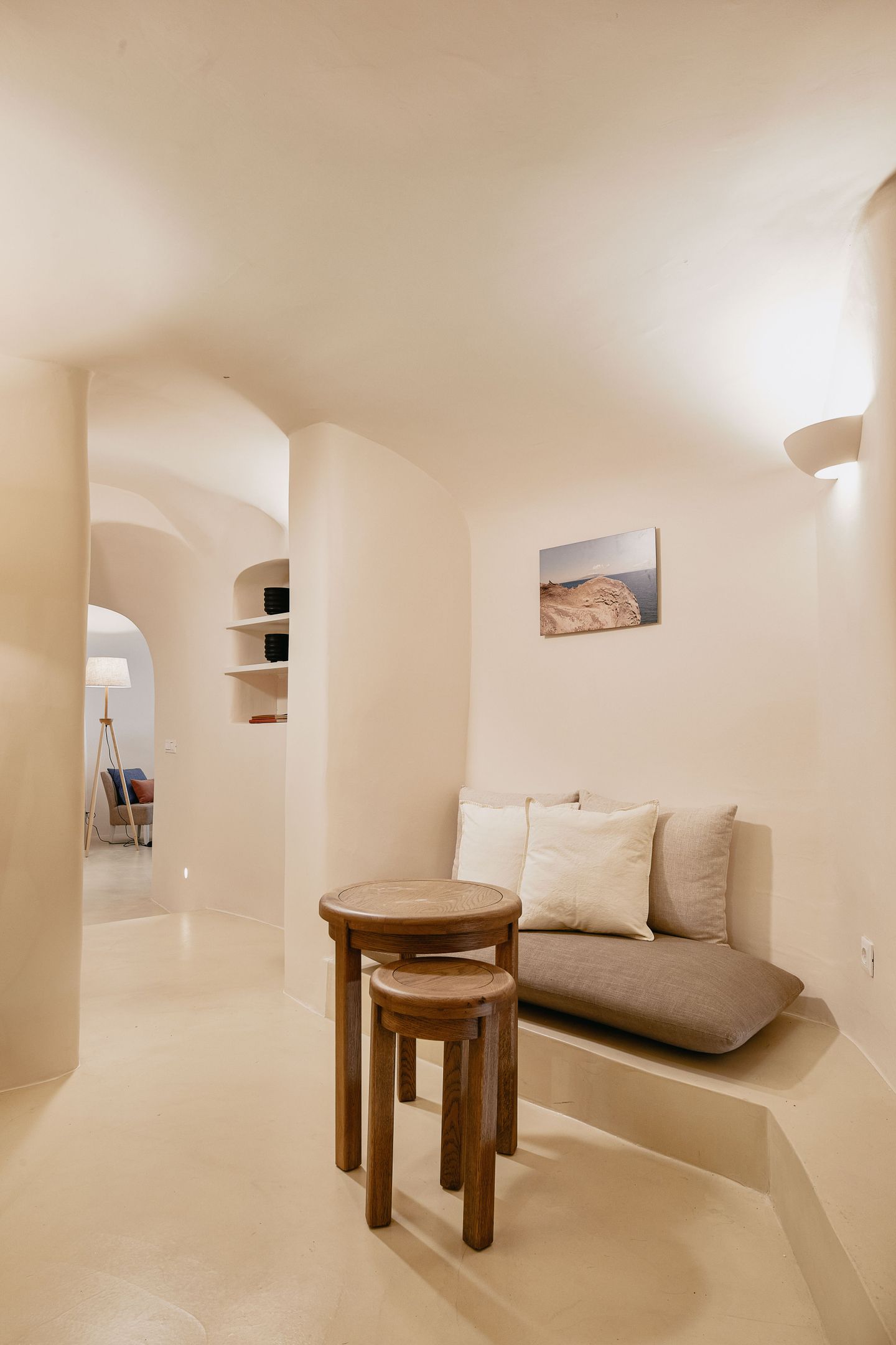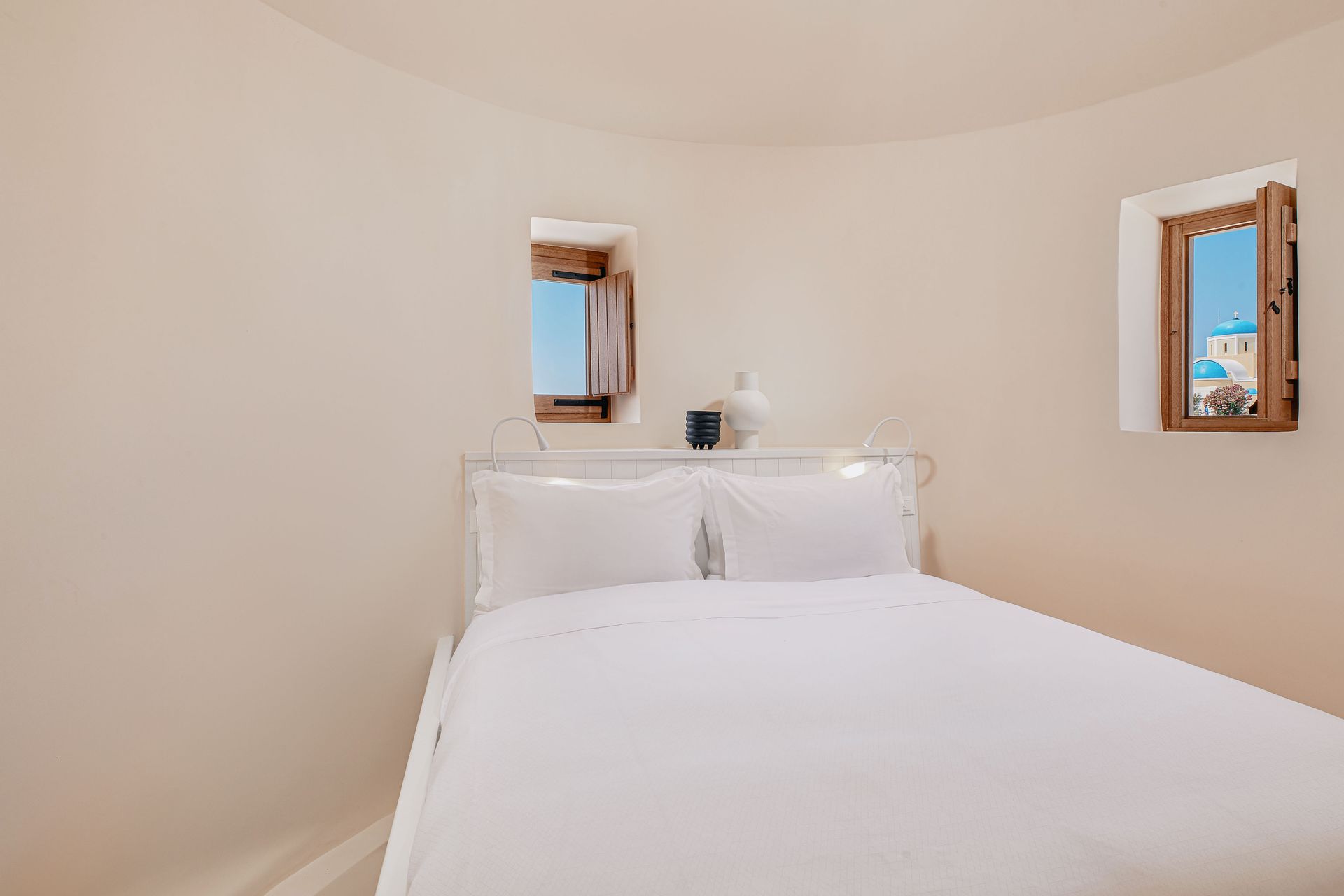 Housed in a traditional Cycladic windmill, The Mill Haven offers impressive views to Oia’s caldera cliffs, the beautiful sunset and the picturesque village with its blue-domed churches. It follows the classic island architecture and is designed with all the modern amenities. Spanning to two floors, the Mill Haven is comprised of two double bedrooms with en-suite bathrooms, that come with KORRES bath amenities, and is also equipped with a kitchen featuring an electric ceramic cooker and a microwave.