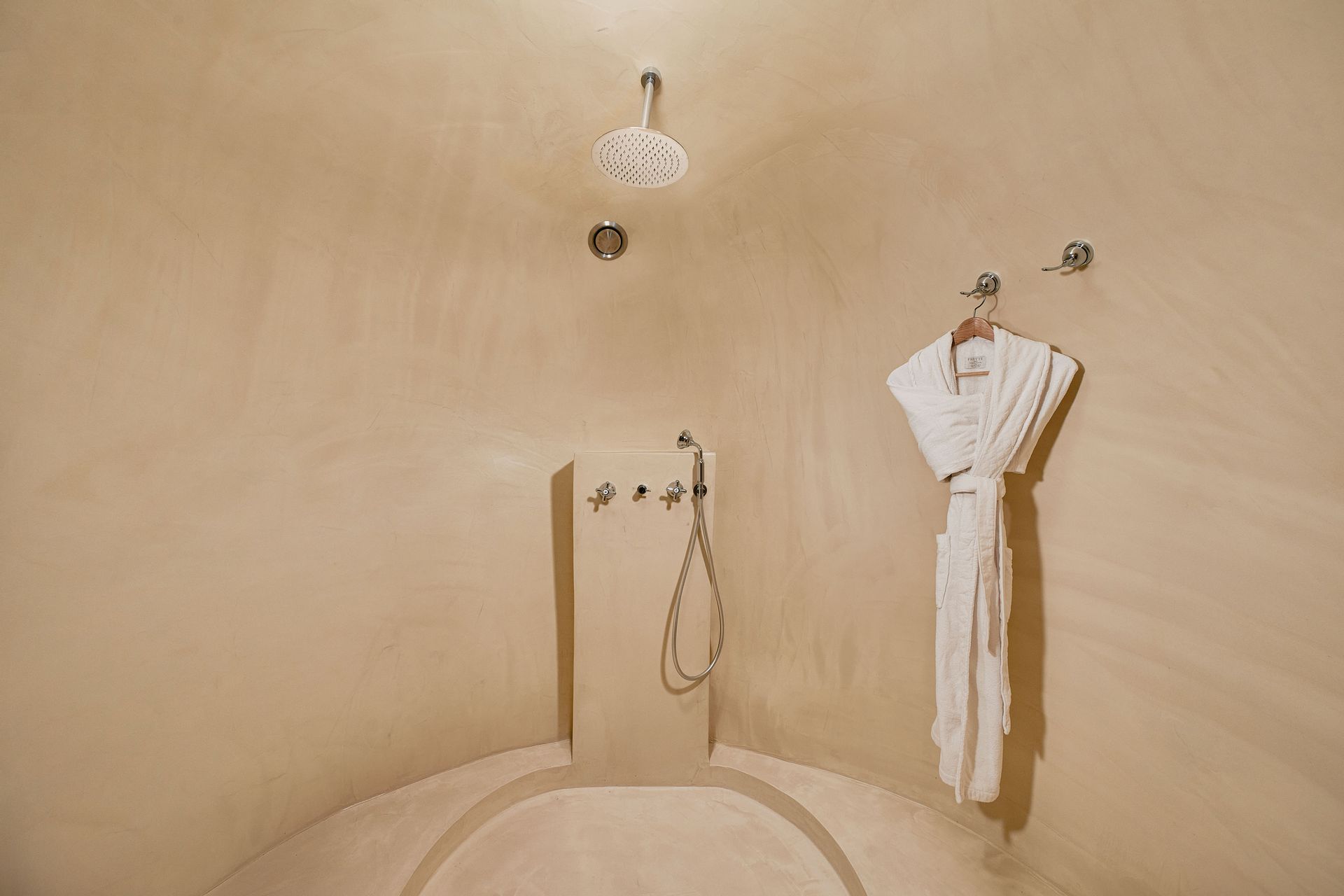 The outdoor terrace is endowed with a private jacuzzi and has a dining and lounging area. The spacious terrace offers views to the Santorini panorama and is the perfect spot to unwind and take in the scenery, while it lends itself for the utmost sunset experience.