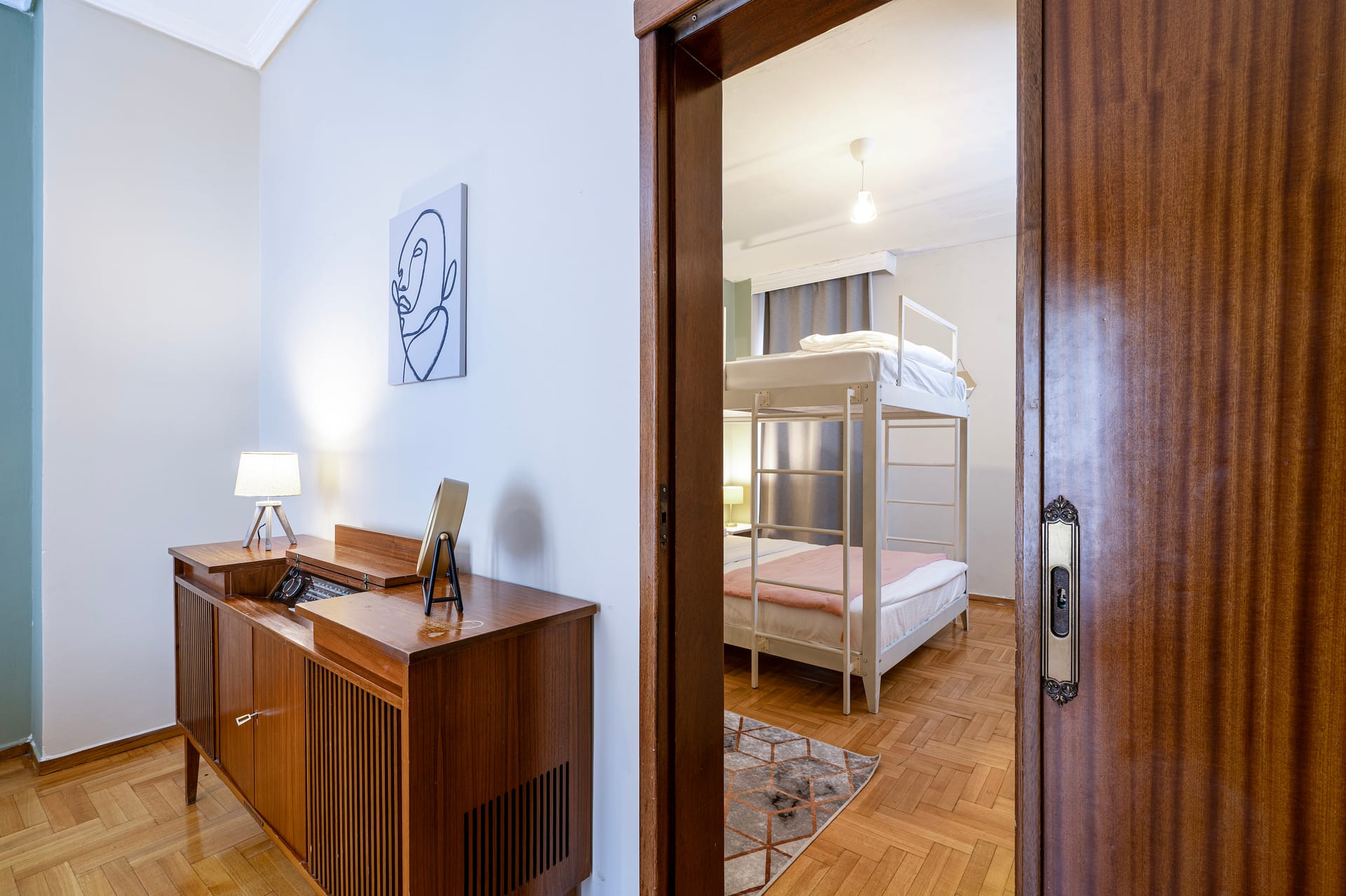 Experience the ultimate blend of comfort and versatility in our remarkable White Tower Casa. This stylish apartment offers a unique feature—a bedroom with a queen-sized bunk bed—allowing for a total accommodation of up to 10 persons. Step outside, and you'll find yourself surrounded by an array of landmarks and activities within walking distance. For those seeking retail therapy, the bustling Tsimiski Street, renowned for its luxury shops and trendy boutiques, is just a stone's throw away. And when it comes to dining, the vibrant Ladadika district beckons with its plethora of exquisite restaurants and lively nightlife!