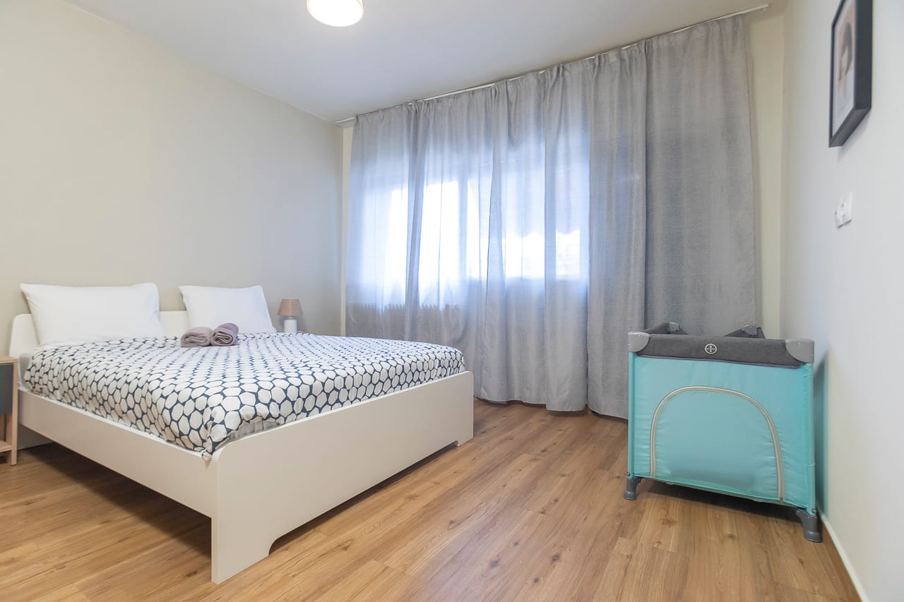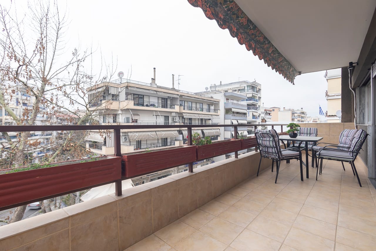 This modern 3rd floor apartment is located in the heart of Kalamaria, with a short and direct commute to Thessaloniki's historical center.
