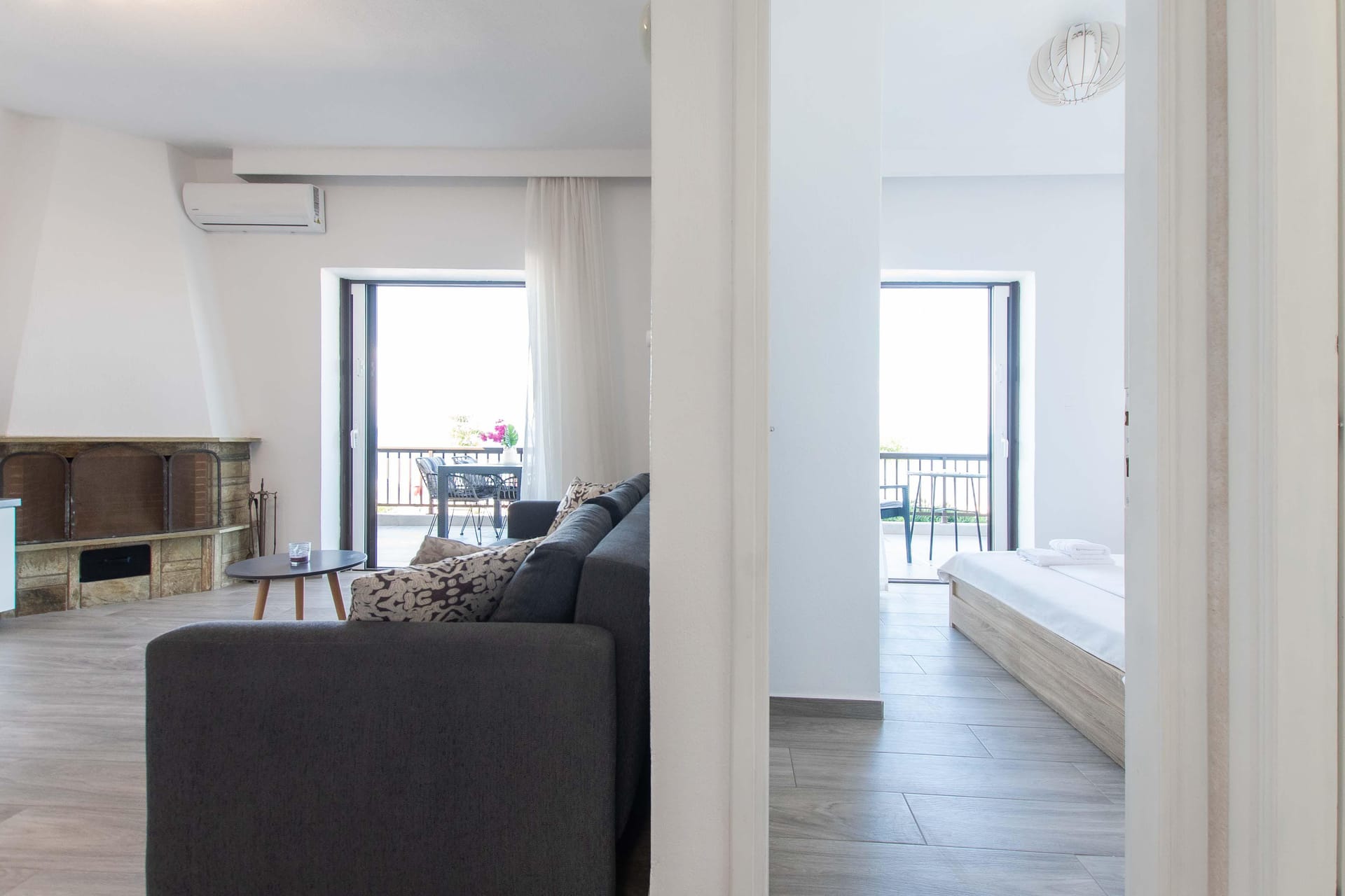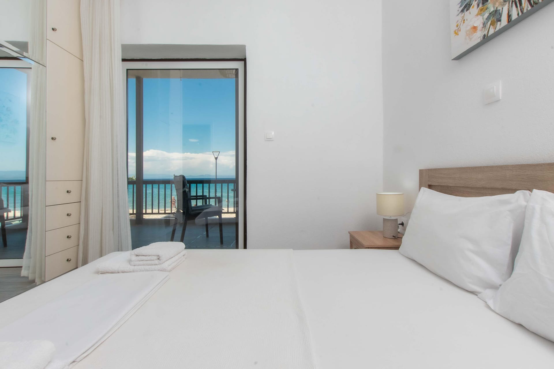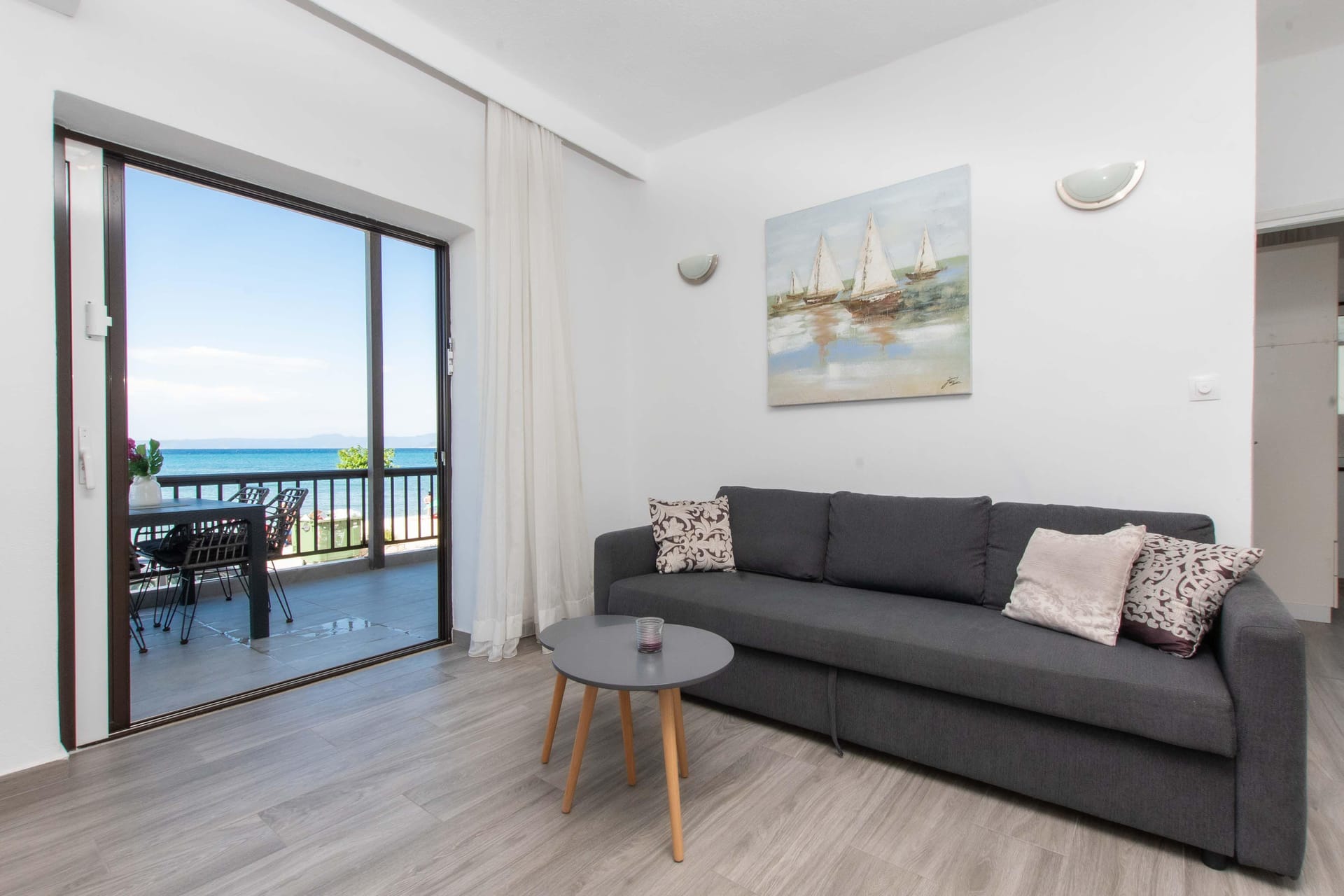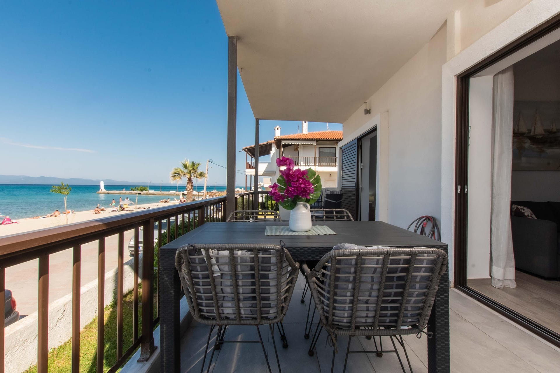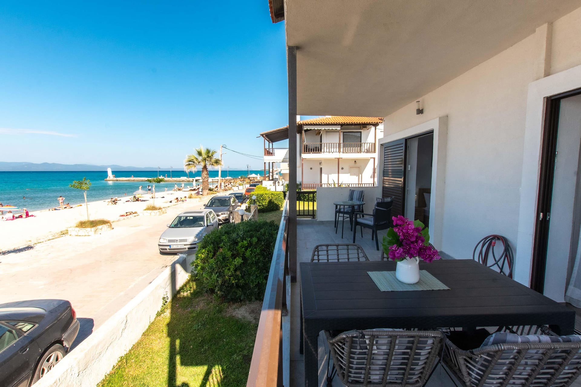 Horizon Seafront in Pefkochori beach is a two bedroom beach apartment with superb sea views. With stylish and modern interiors, our apartment provides a comfortable and inviting space to unwind after a day of beachside adventures. Indulge in leisurely strolls along the pristine coastline, bask in the sun on golden sands, or take a refreshing dip in the crystalline waters just steps away from your door!