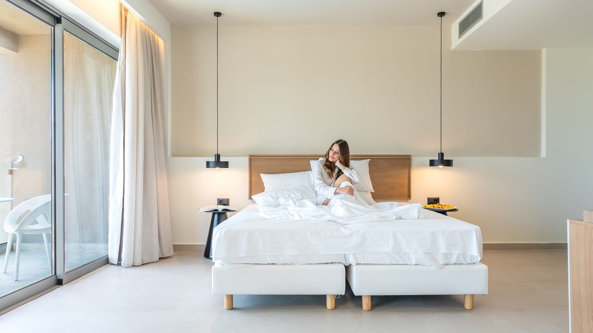 Experience comfort and elegance in our 38 sq. m. Premium Two-Bedroom Suite, offering a private balcony or terrace with stunning sea views. This stylish suite features two separate bedrooms, modern furnishings, individually controlled air conditioning, free Wi-Fi, a flat-screen TV, and a safe deposit box. The bathroom includes a walk-in shower, premium bath amenities, slippers, and a hairdryer for a refreshing stay. Enjoy a complimentary bottle of wine, daily maid service, and beach and pool towels for added convenience.