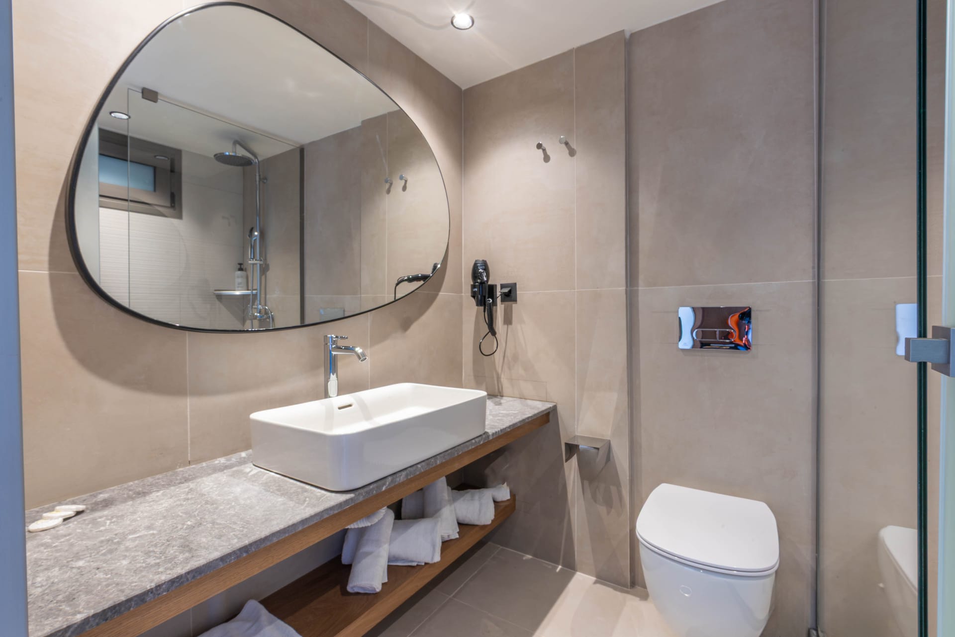 Enjoy an exclusive stay in our 22 sq. m. Premium Junior Suite, featuring a private pool and a spacious veranda with stunning sea views. Designed for relaxation, this elegant suite includes modern furnishings, a flat-screen TV, free Wi-Fi, a safe deposit box, and individually controlled air conditioning. The bathroom offers a walk-in shower, bath amenities, a bathrobe, slippers, and a hairdryer for added comfort. Guests also enjoy an espresso machine, a complimentary bottle of wine, daily maid service, turn-down service, and beach and pool towels for a luxurious stay.