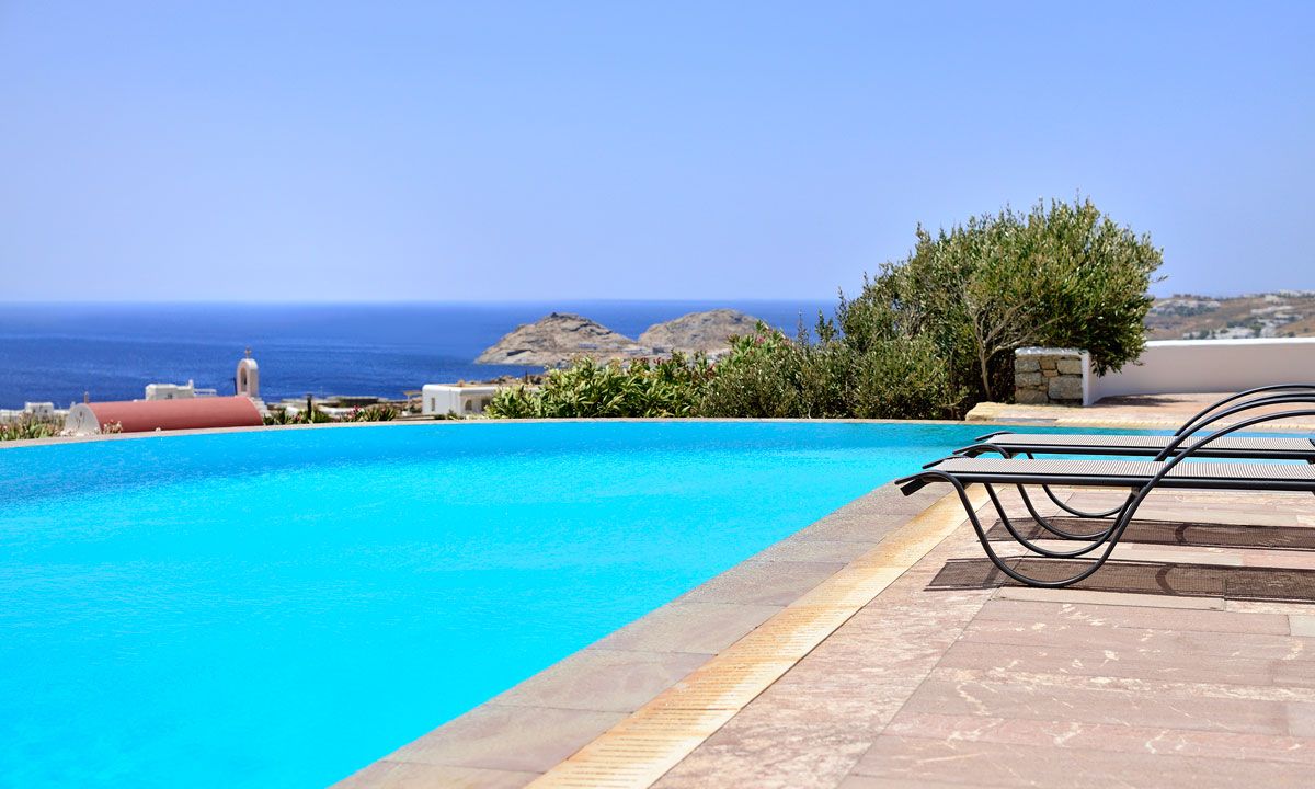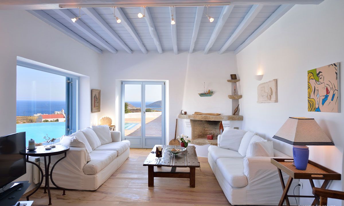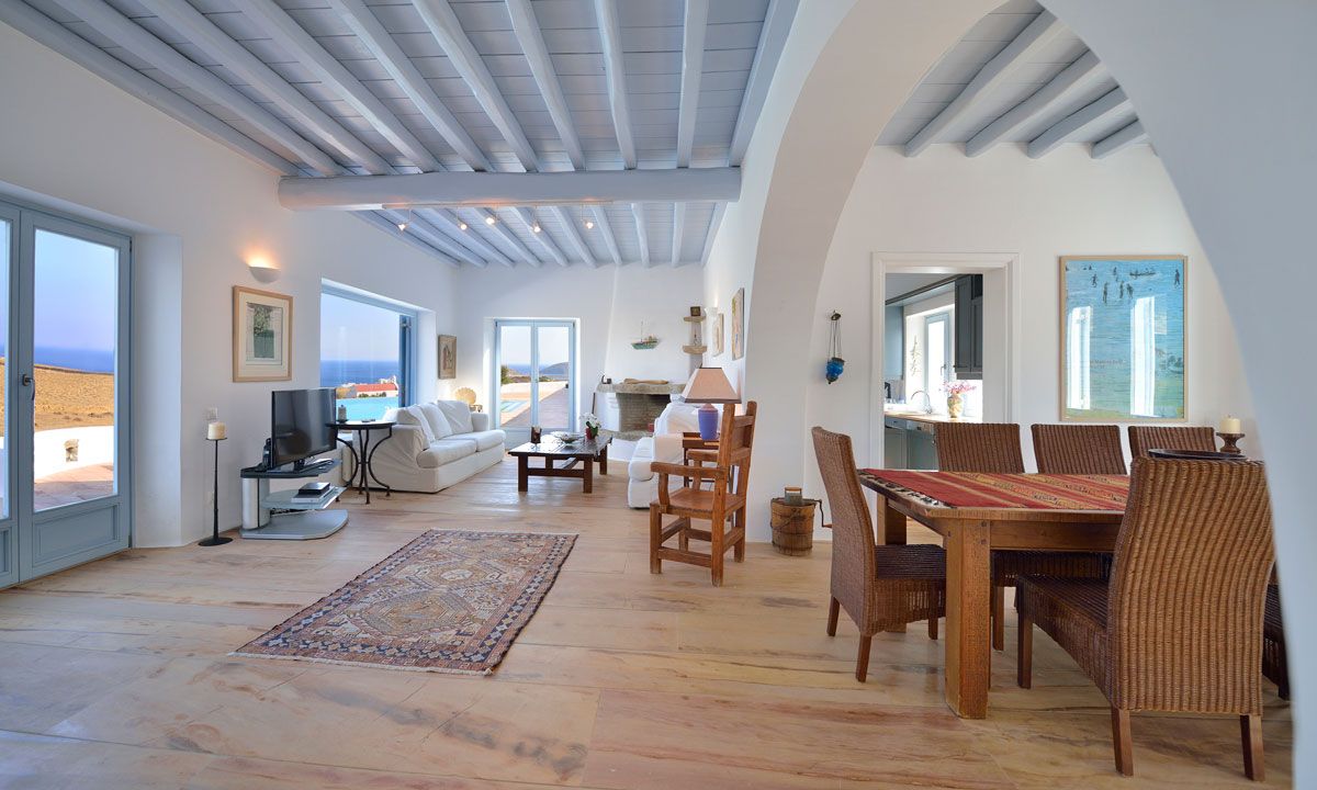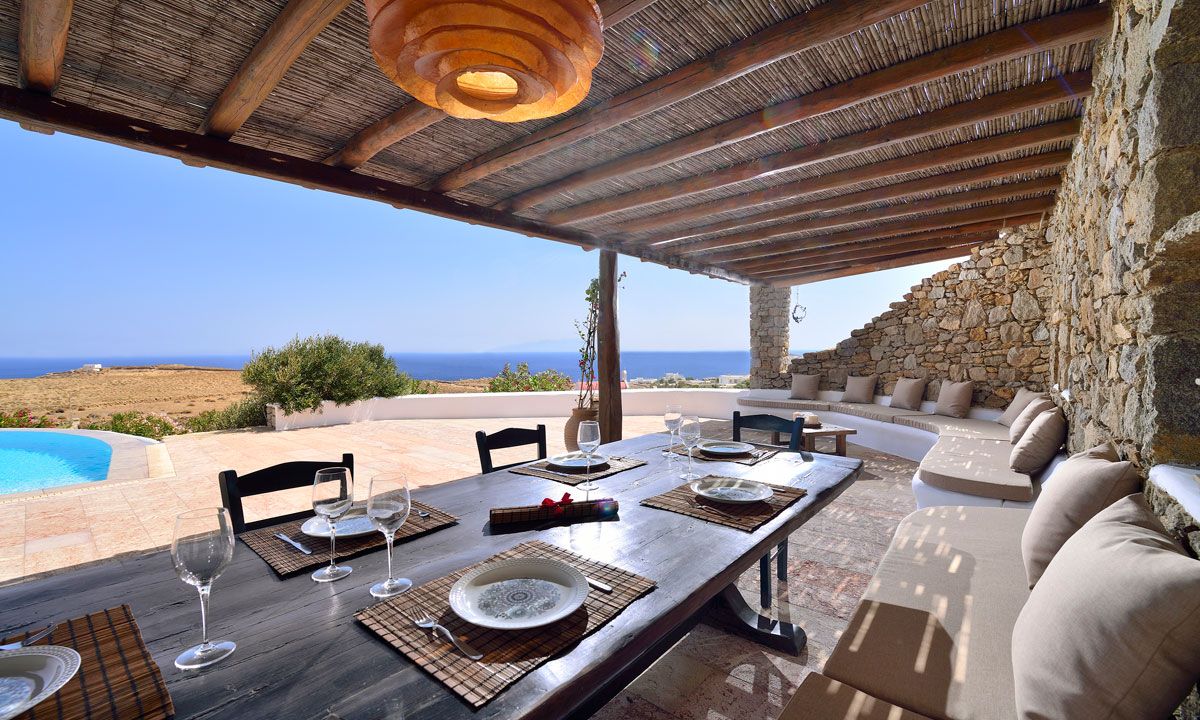 Outside, a covered veranda offers al-fresco dining and shaded seating, while the pool deck with sunbeds overlooks the valley and sea. The inviting swimming pool is perfect for cooling off, and a large communal pool is also available.