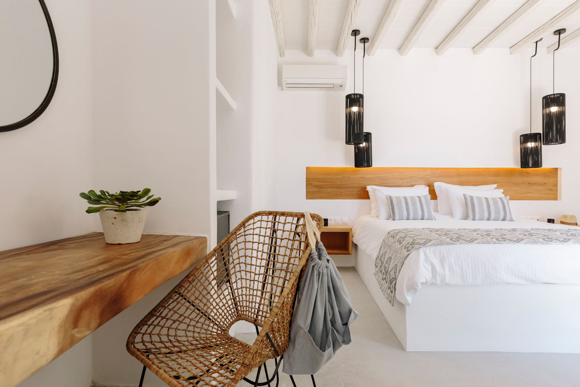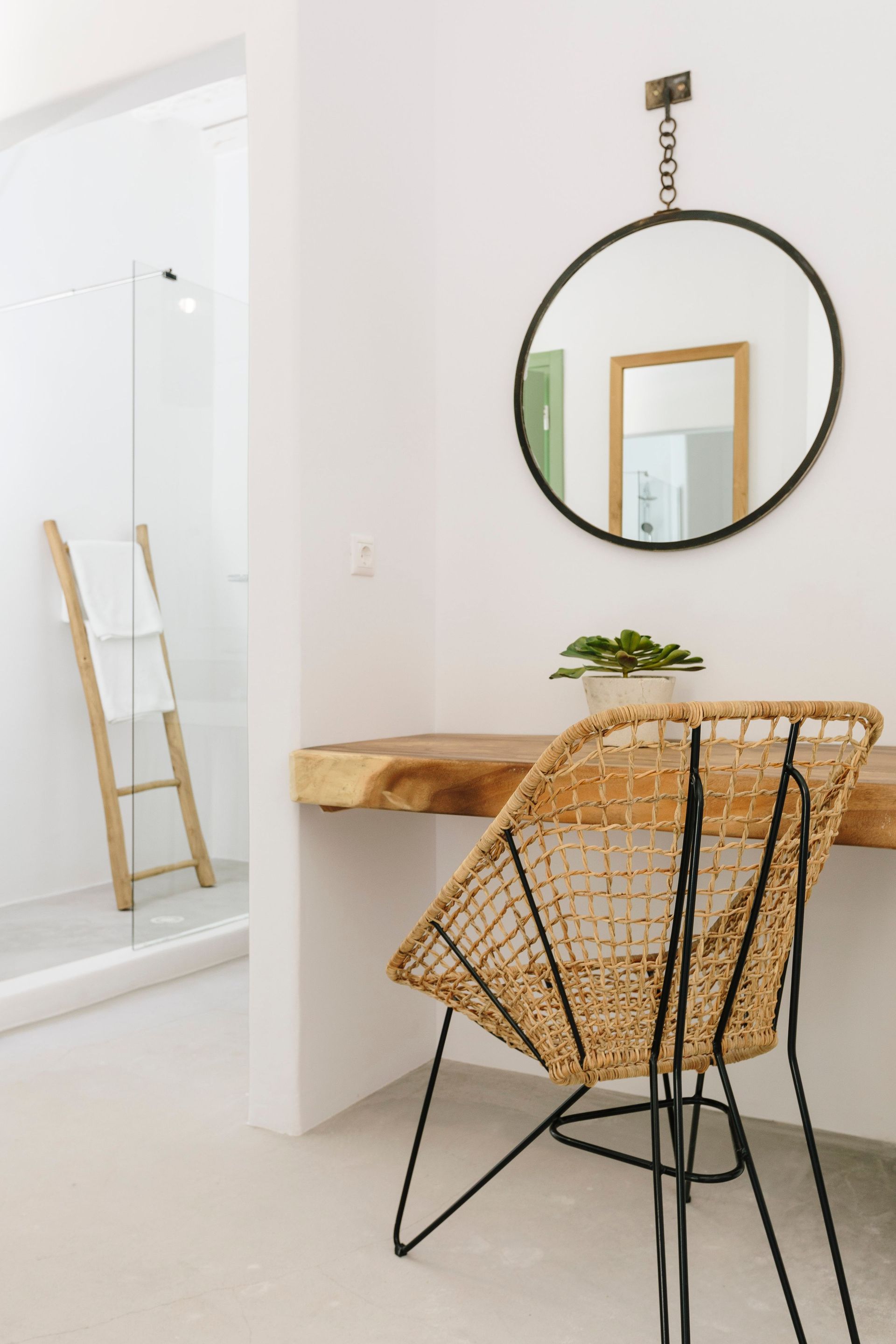 This luxurious Junior Villa is beautifully furnished and enjoys a superb position with unobstructed valley and sea views. The open-plan living and dining area is decorated in tasteful muted tones, featuring comfortable sofas, a flat-screen TV, and French doors that let in a cool breeze. The dining area has a large solid wood table and is separated from the fully equipped cherry wood kitchen by a granite-topped sideboard.