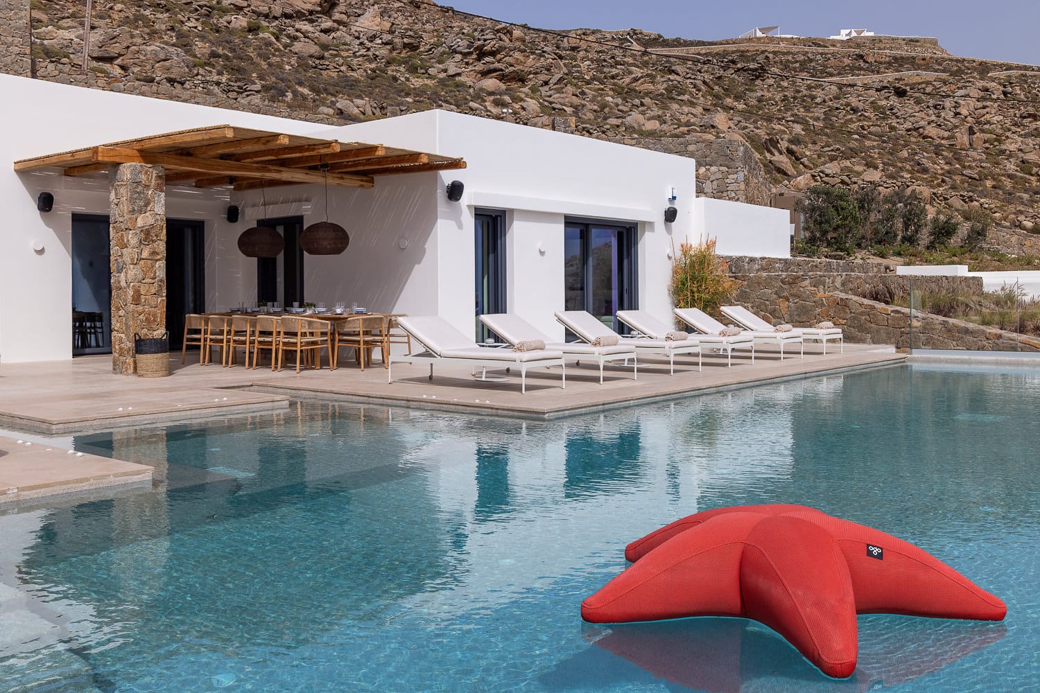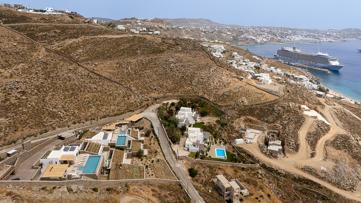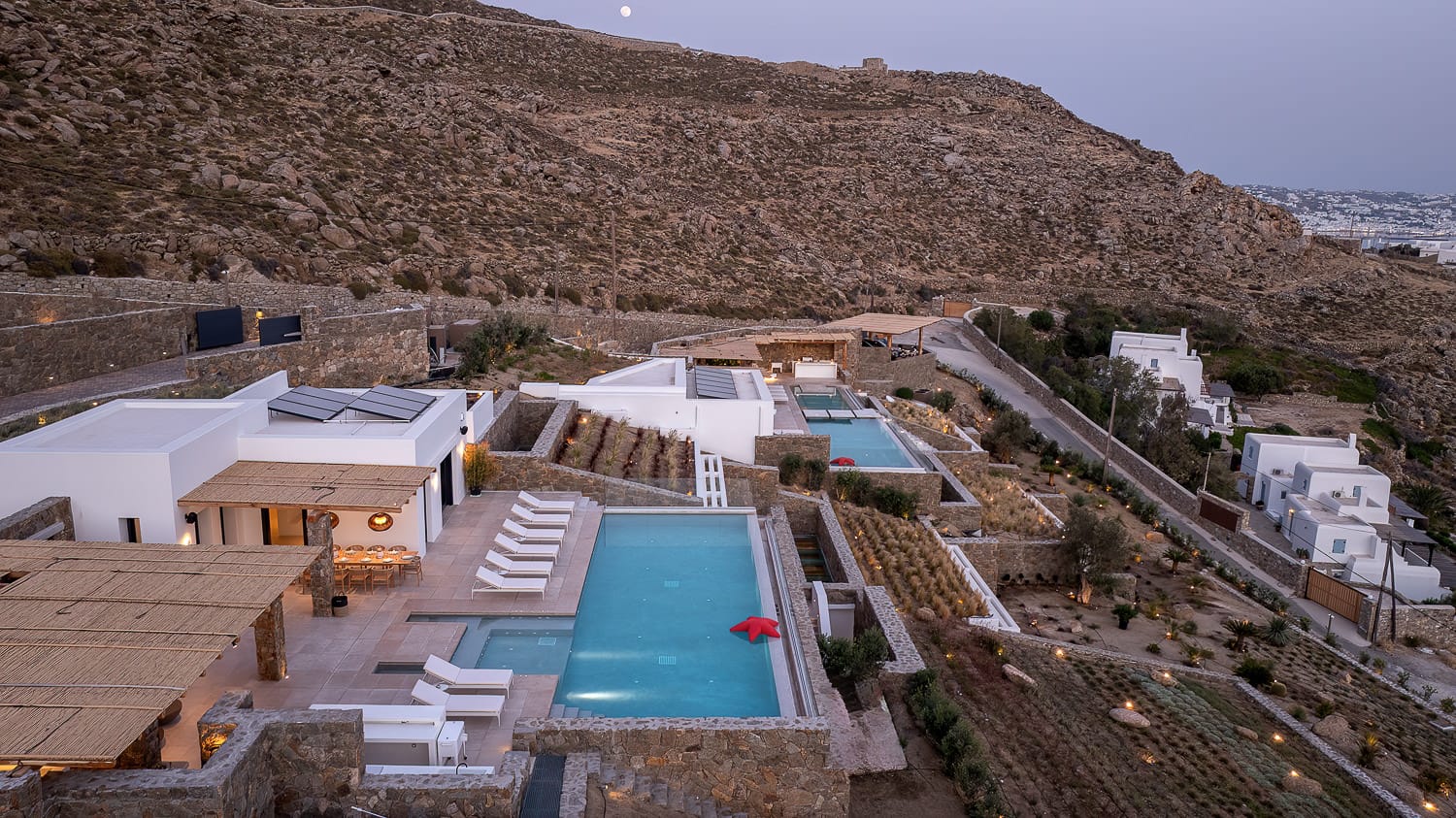Both villas are ideally situated in Houlakia, offering serene privacy while being just a short drive from Mykonos Town. Guests can explore world-renowned beaches, vibrant nightlife, and cultural landmarks while retreating to the peace and luxury of their villa.